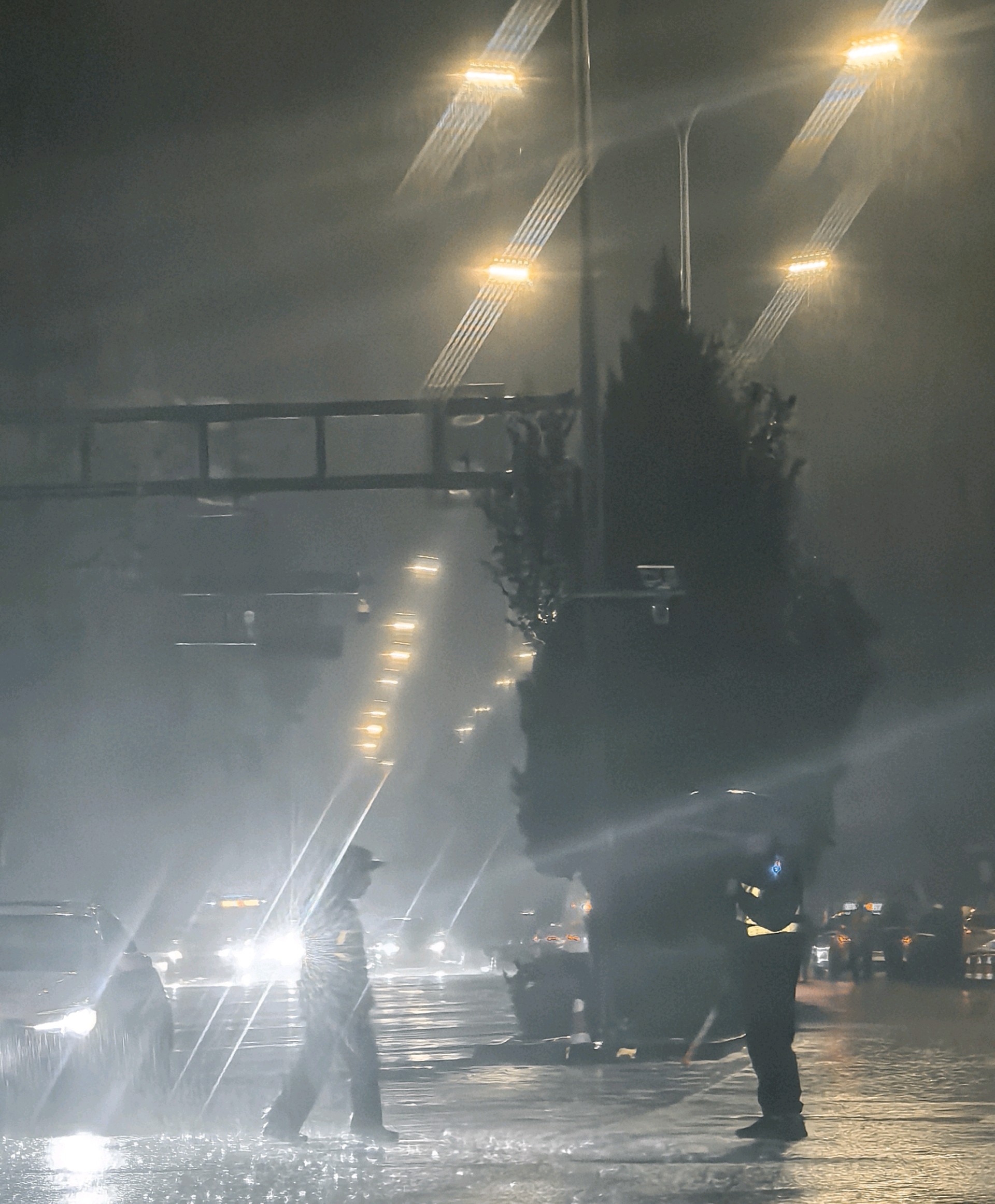 雨夜中,他们坚守岗位,守护着城市的安宁。荧光马甲在雨夜中闪耀,照亮了他们的身影。他们是这个城市最美的风景线。