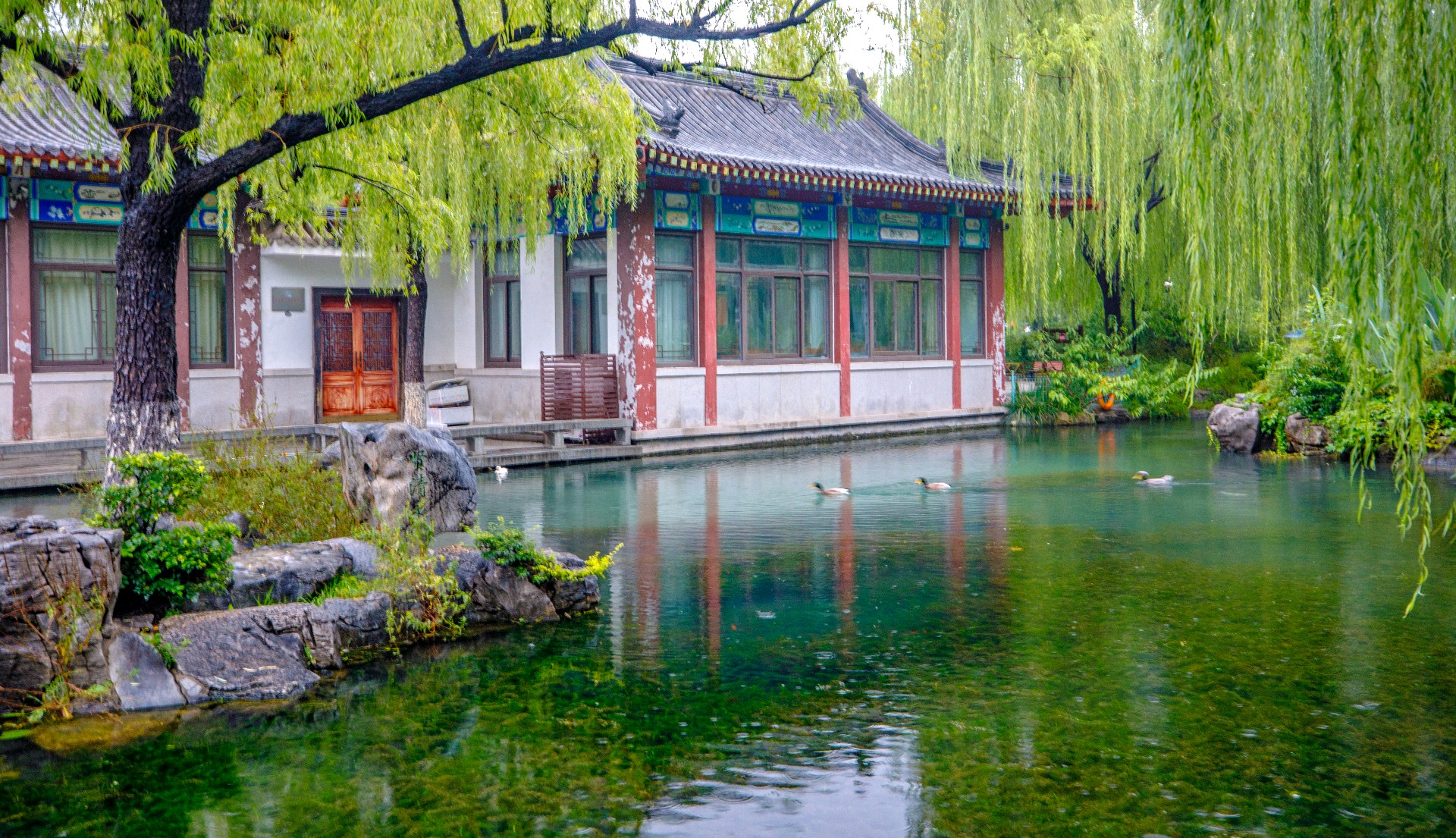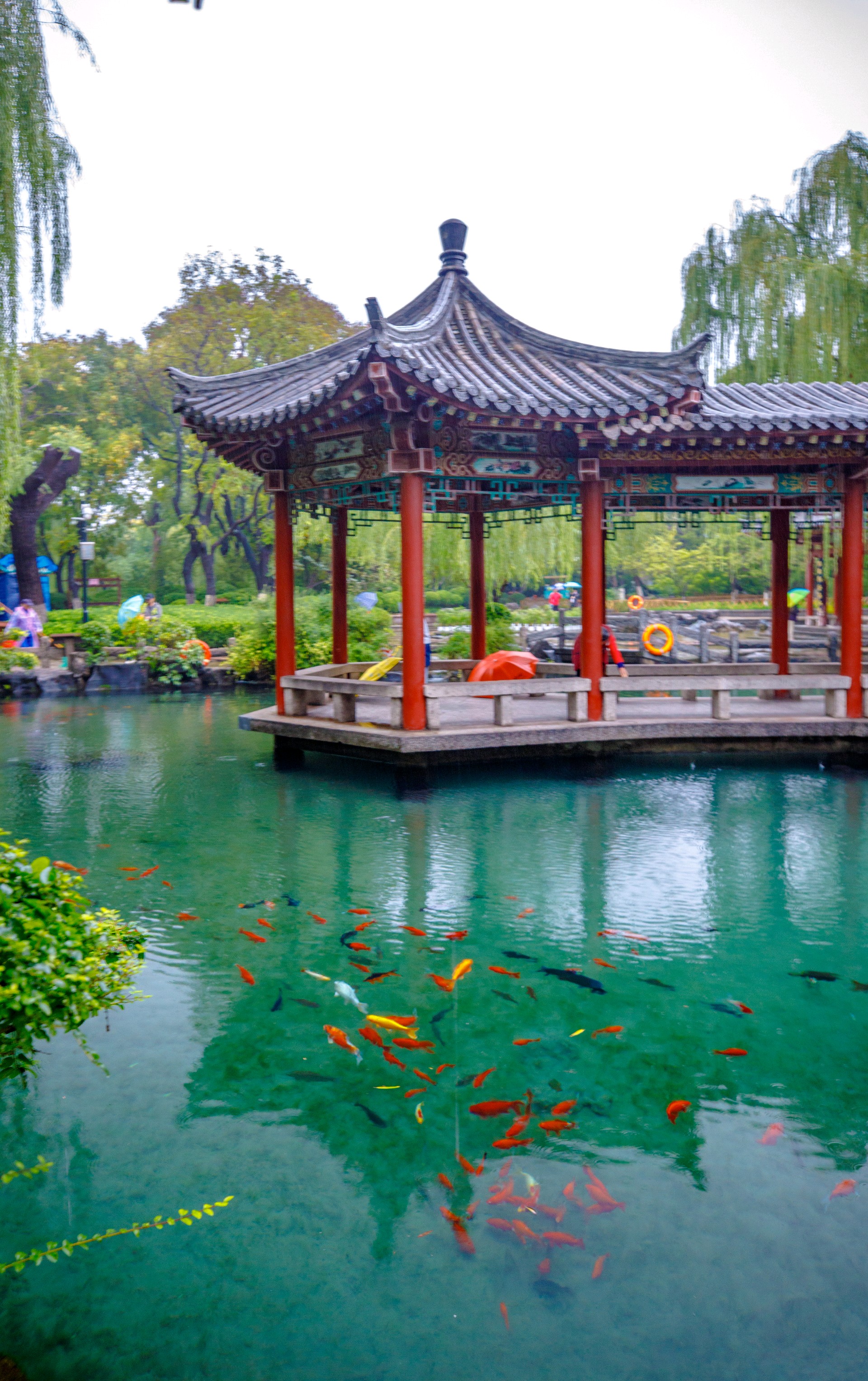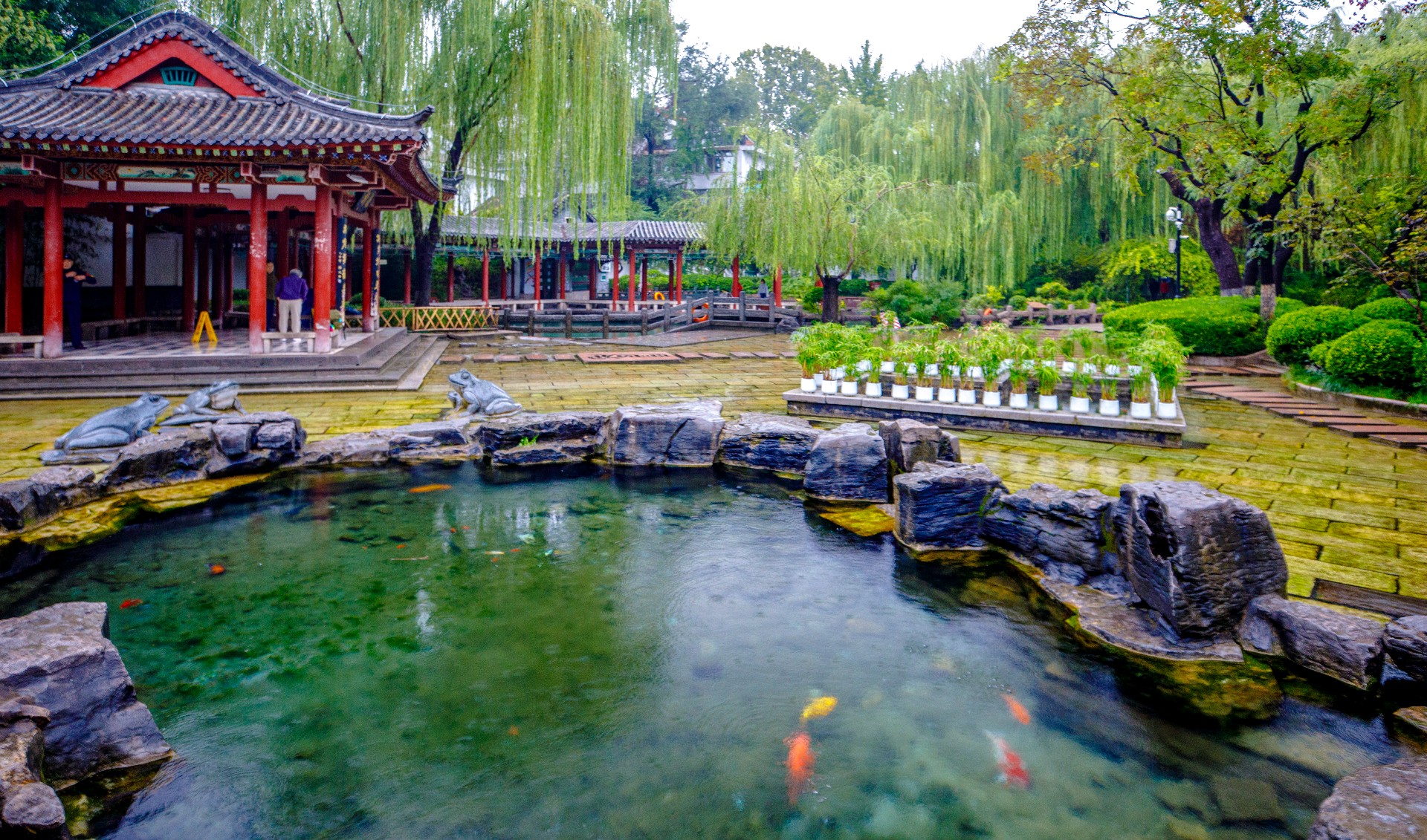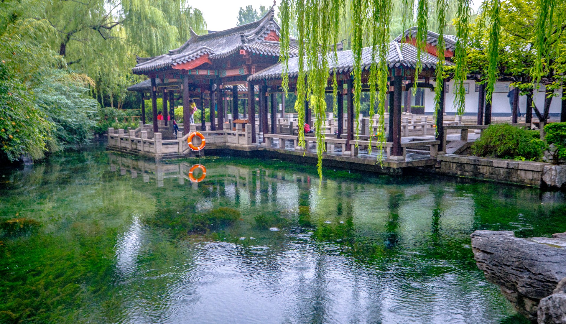 秋雨连绵,持续补给让地下水位逐步攀升,五龙潭泉群喷涌更劲,月牙泉“月牙飞瀑”盛景再现。雨中潭水澄澈如碧绿宝石,周边植被经雨水浸润,愈发葱郁鲜亮。许多游人雨中漫步园中,沉醉于这份独特的泉雨景致。