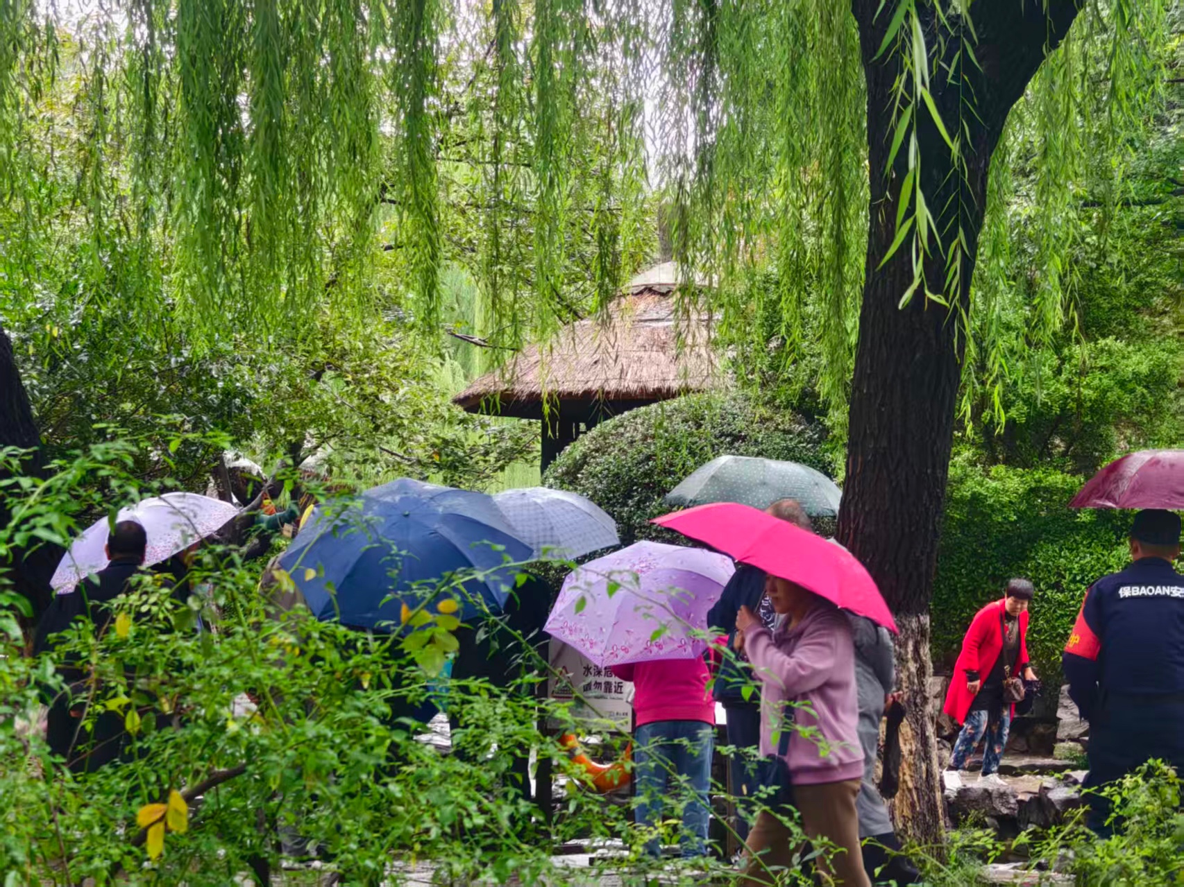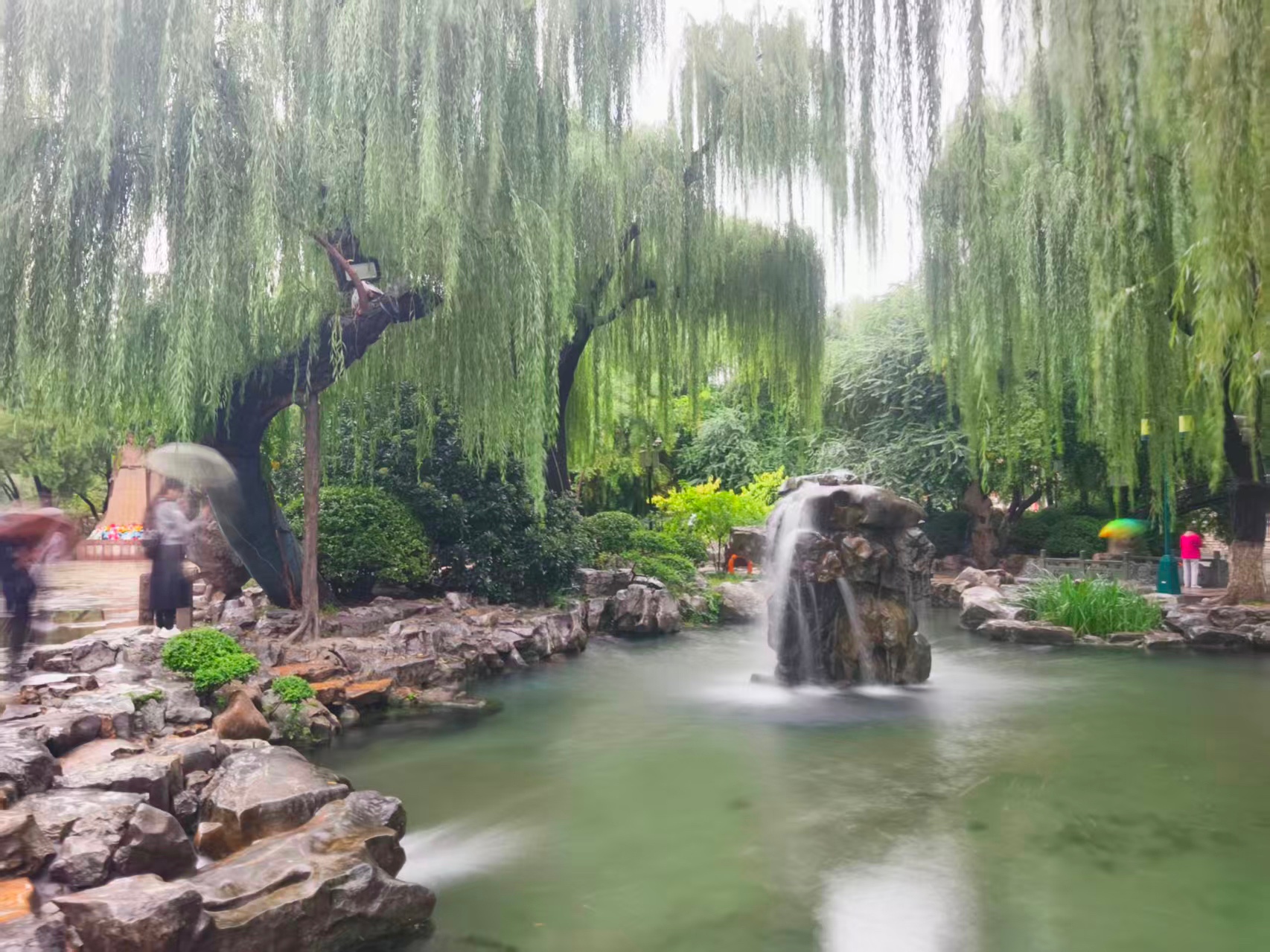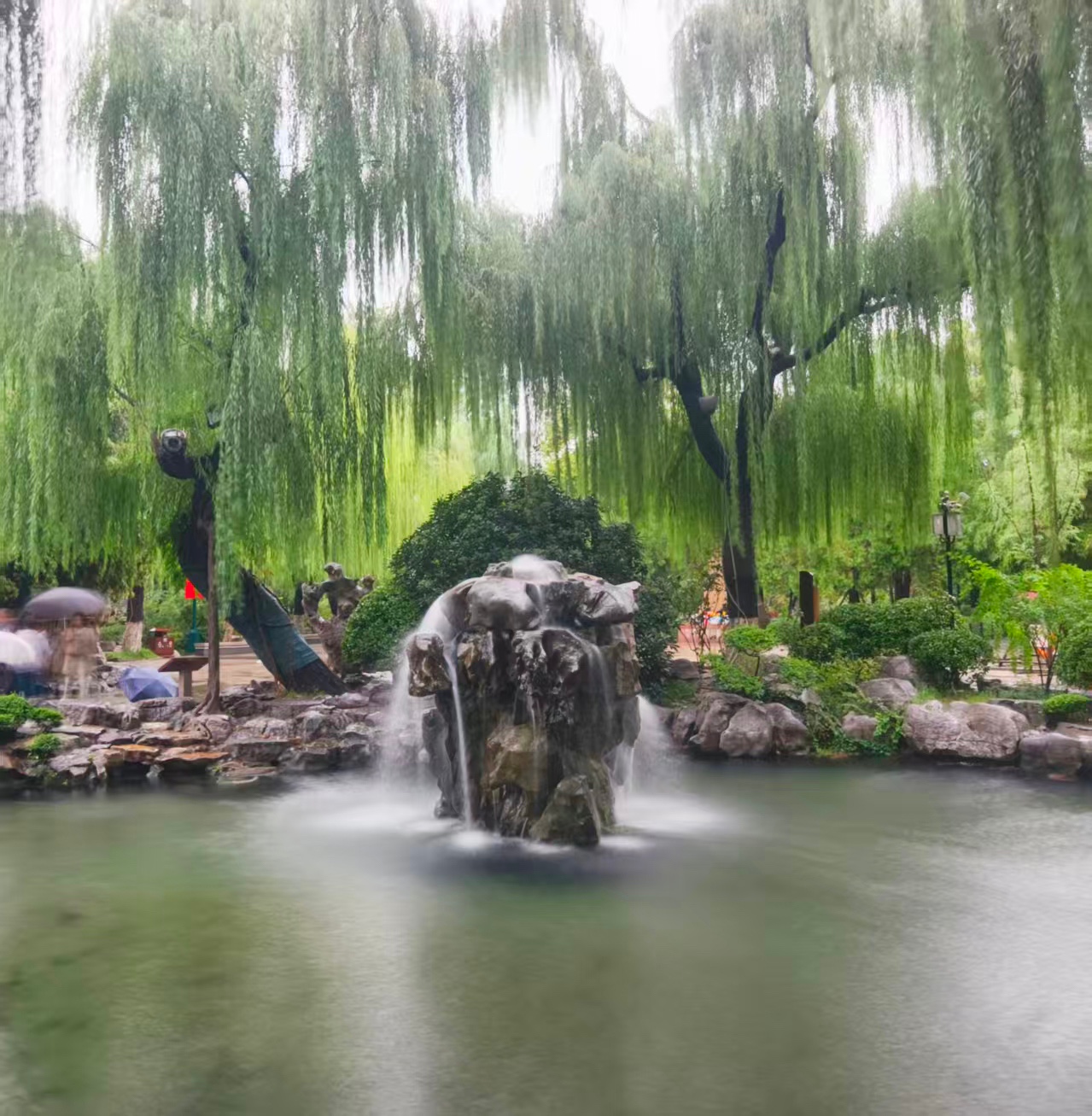 济南五龙潭公园的月牙泉飞瀑、太美了,吸引了众多的游客纷纷前来参观、拍照留念!虽然一直都下着雨,但丝毫也挡不住游客的热情,直呼济南的泉水太棒了!2025.10.11手机拍摄