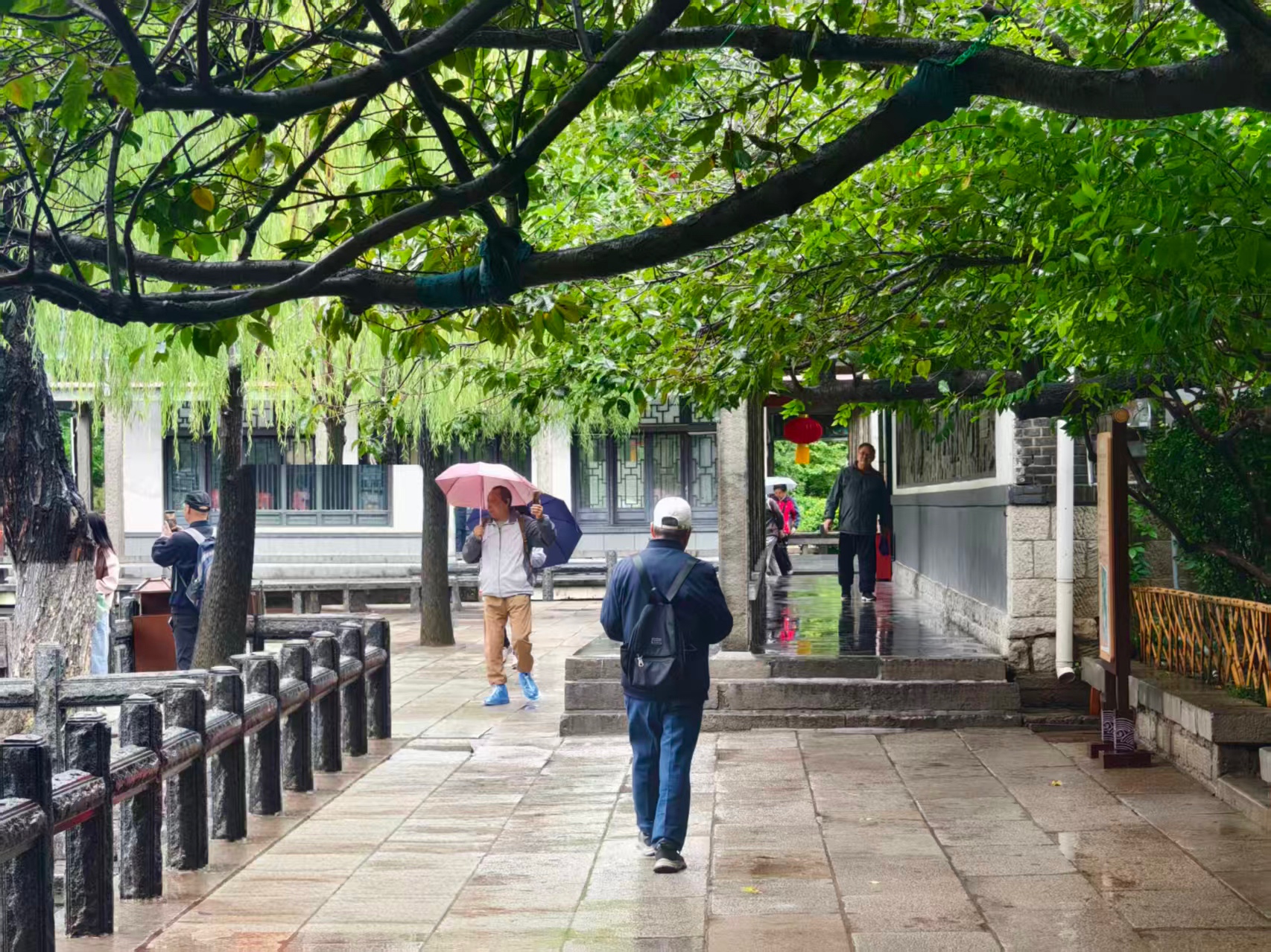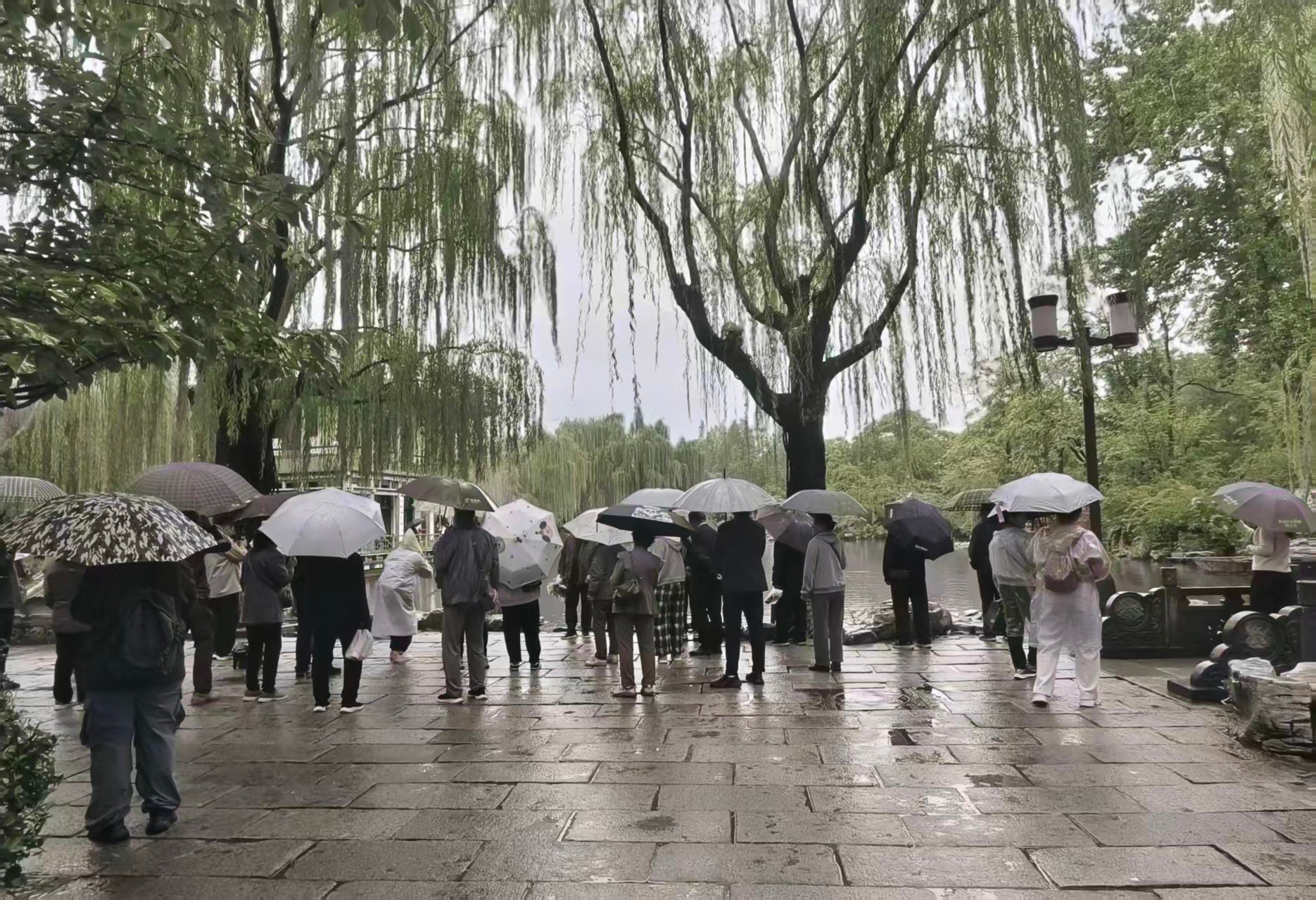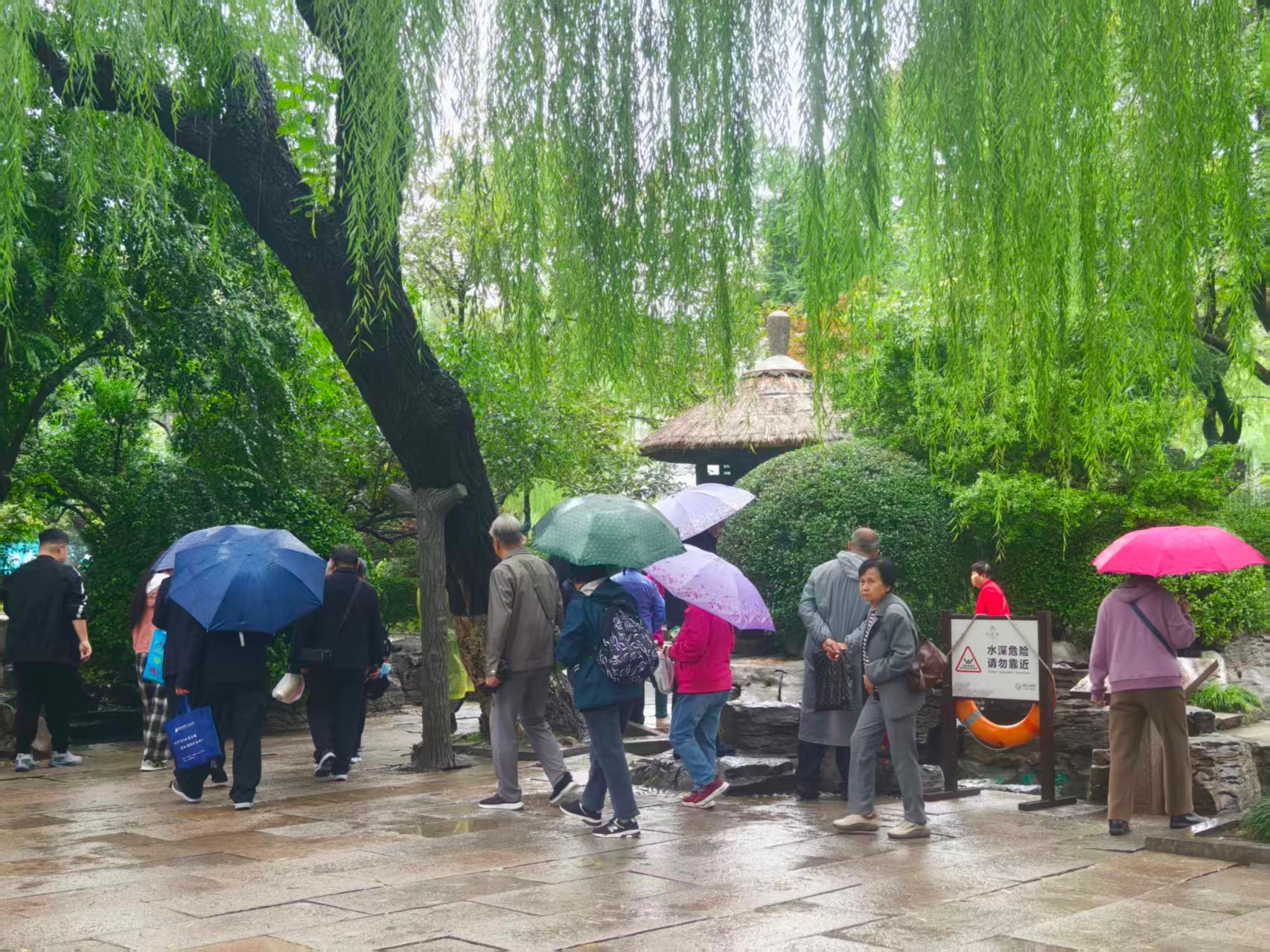 济南五龙潭公园的月牙泉飞瀑、太美了,吸引了众多的游客纷纷前来参观、拍照留念!虽然一直都下着雨,但丝毫也挡不住游客的热情,直呼济南的泉水太棒了!2025.10.11手机拍摄