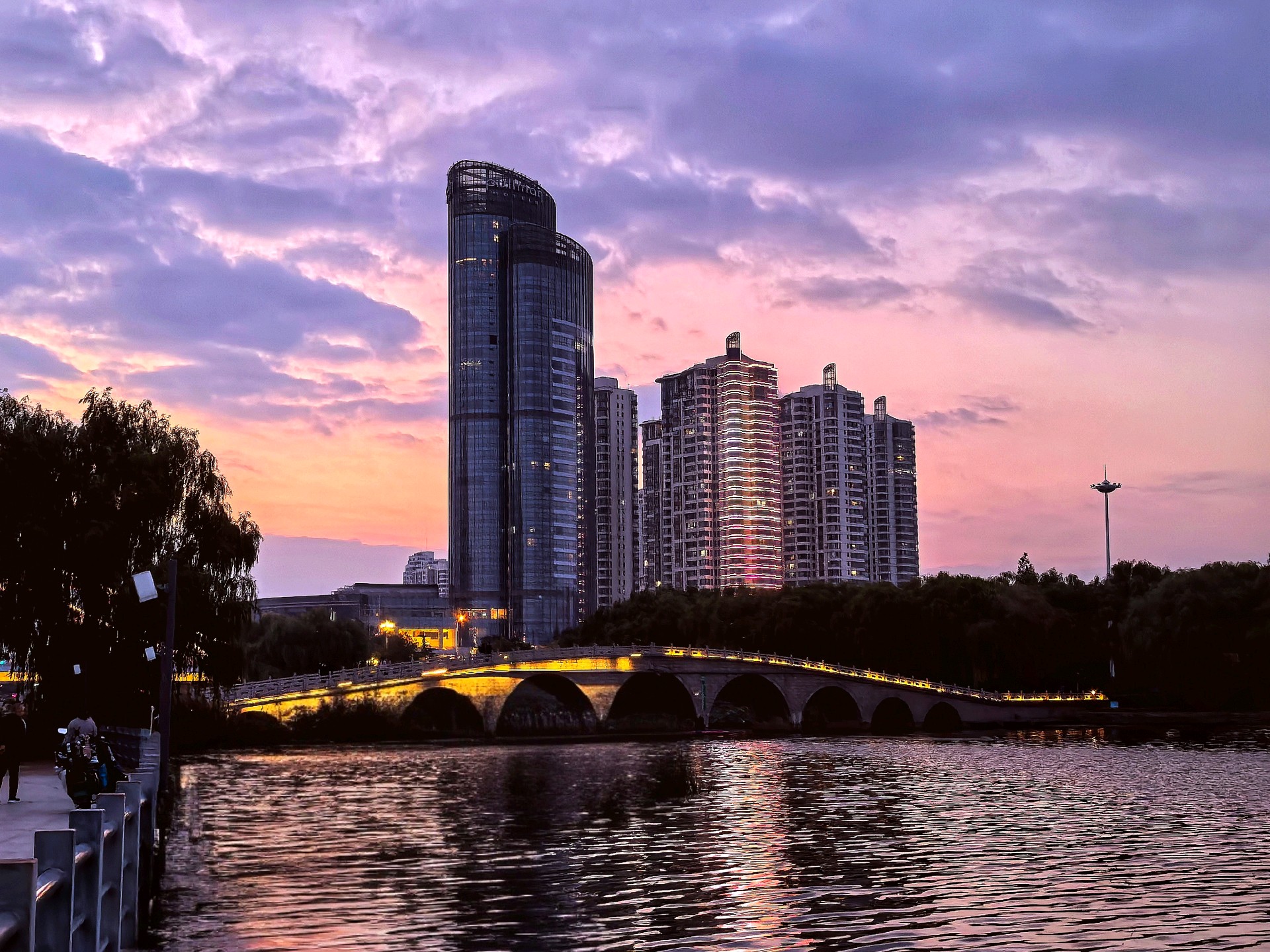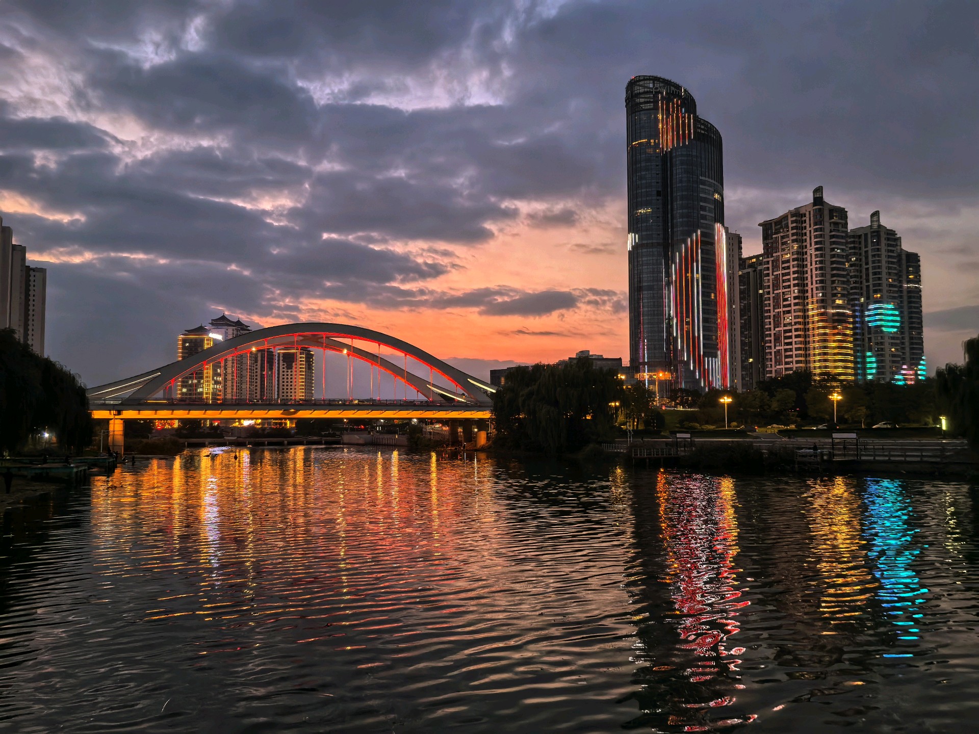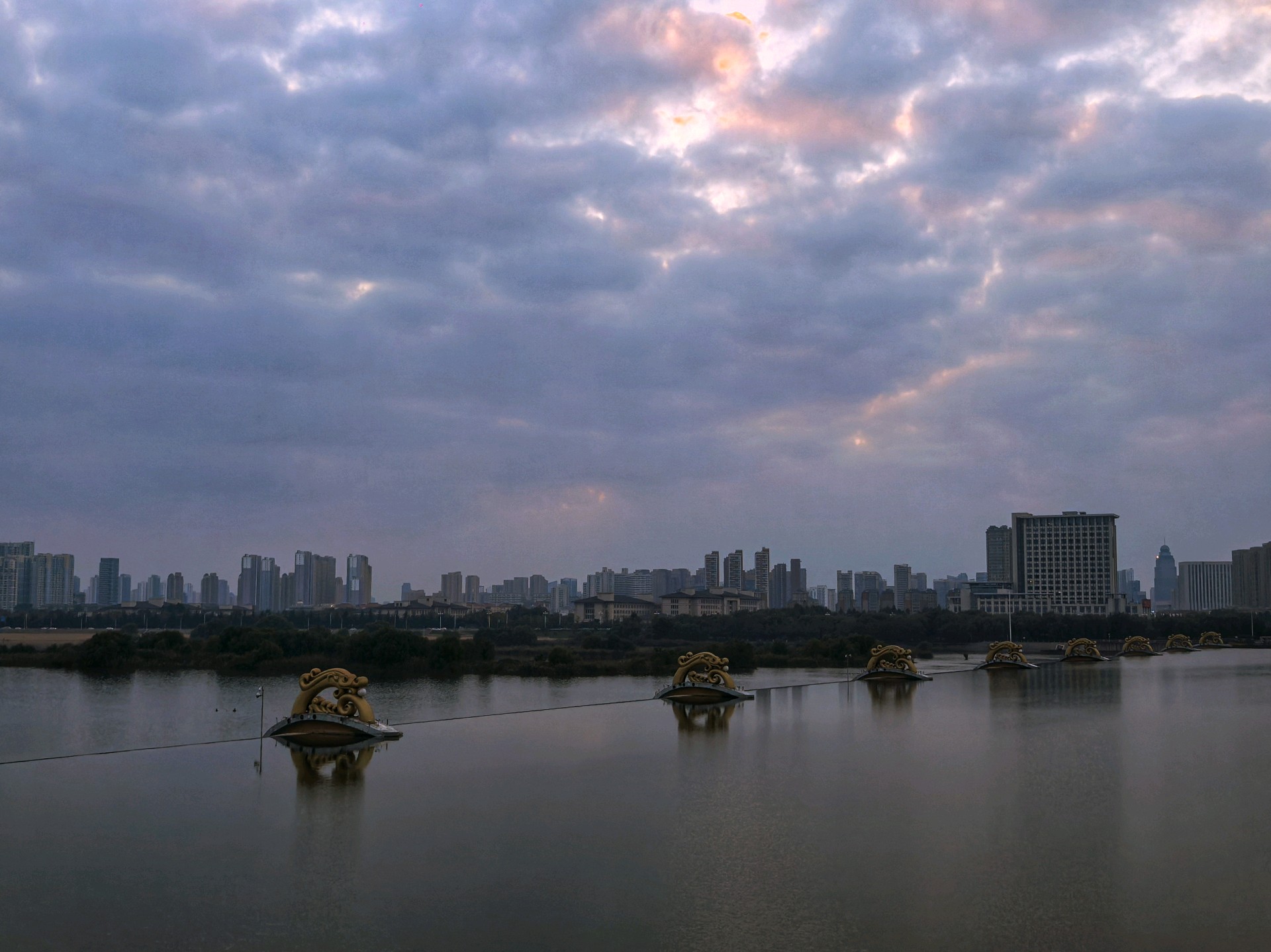 连场的秋雨总带着股磨人的韧劲,淅淅沥沥缠了史上少见的这么长时间,把天空泡成一片灰蒙蒙的纱,连风都裹着化不开的湿凉,傍晚时刻总算又停了下来,沂河的上空也露出了少许橙红色的晚霞,希望明天拨云见日,是的阳光明媚的天气。