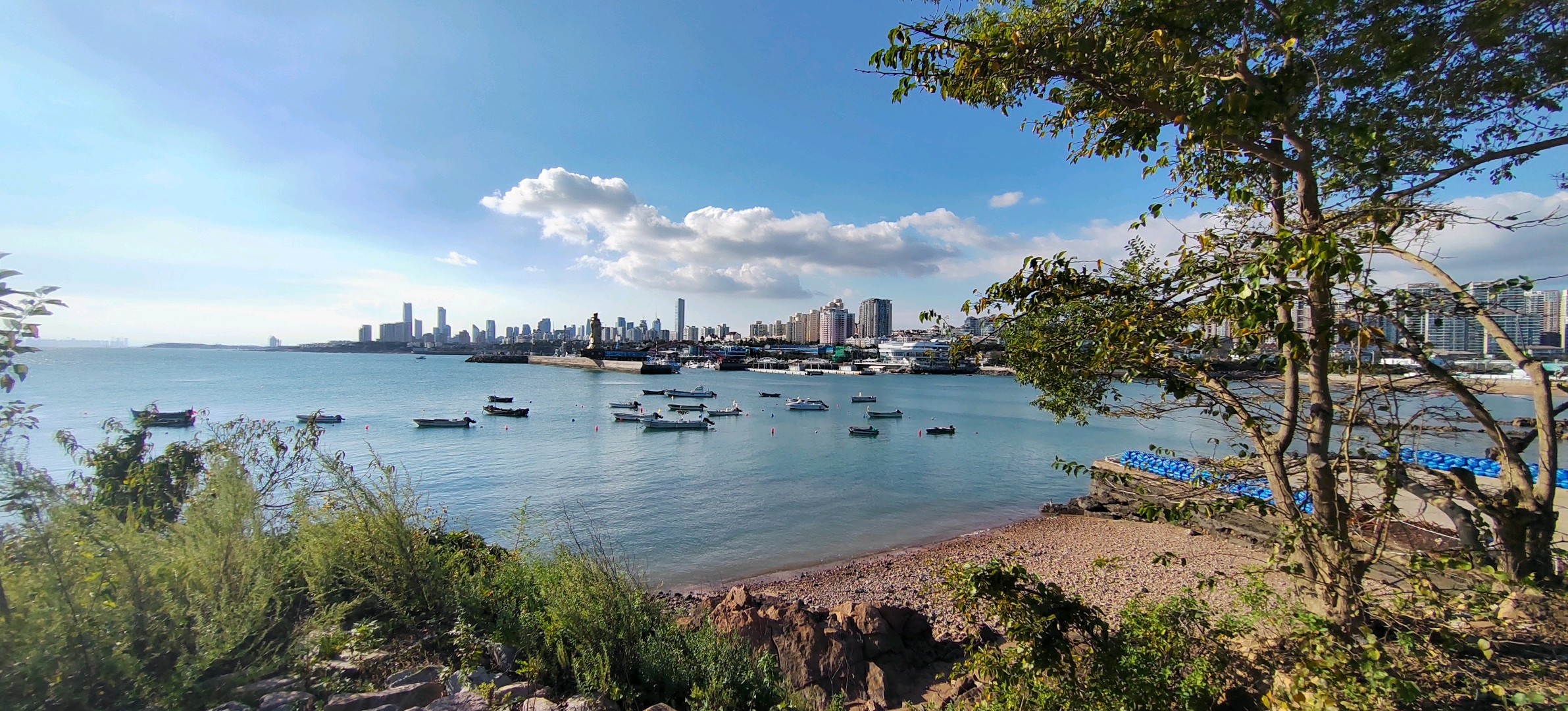 #天气情报站#小麦岛位于崂山区浮山所麦岛路西侧,距陆地仅150米,属环形岛屿,最高点海拔30.7米。其名称源于方言“墨岛”音变,历史上曾为渔村,2018年经生态修复后转型为公共景区。秋雨过后,景区展现出迷人的魅力。
