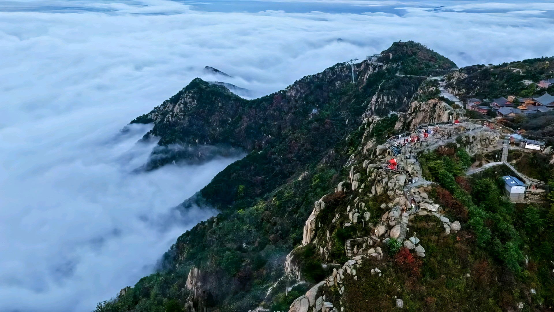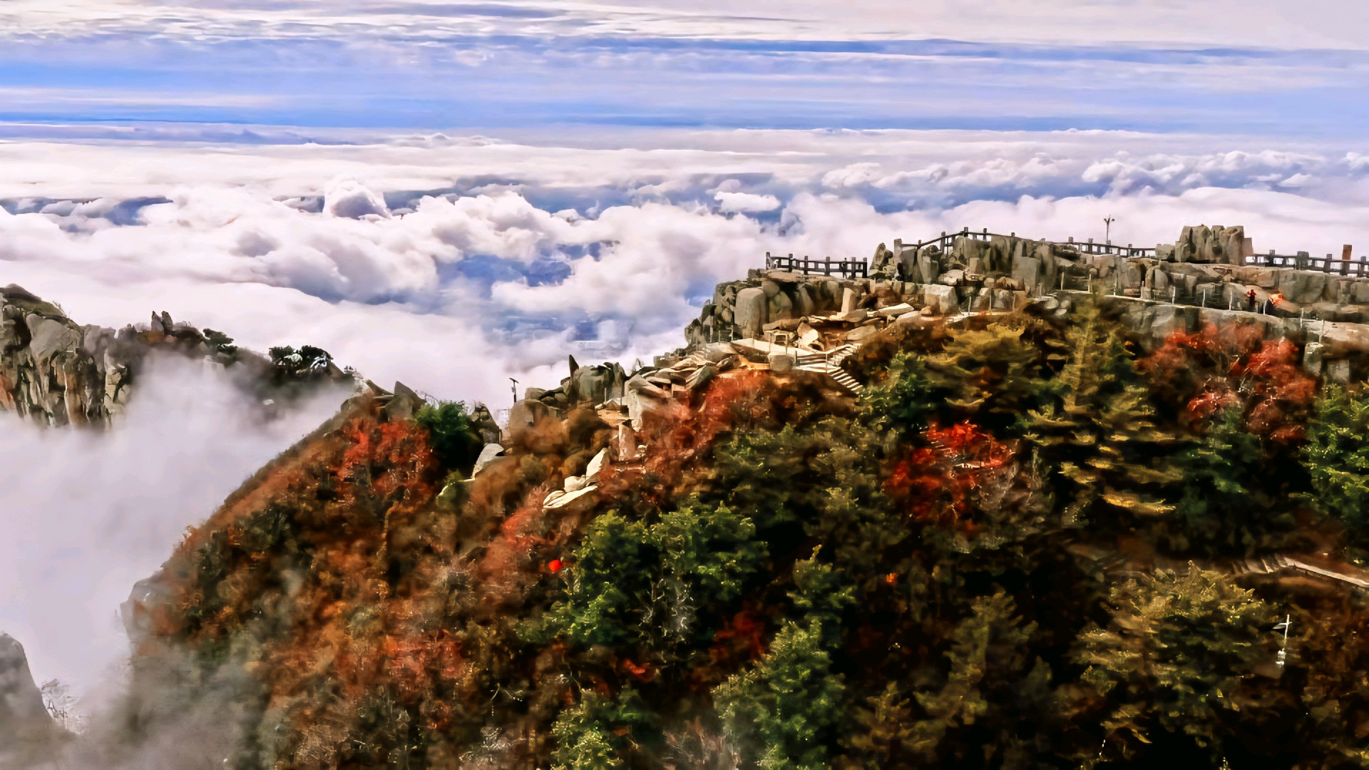 泰山绝美泰山秋色正在加载……泰山的秋,是泼墨重彩的画卷。山巅的枫与黄栌率先点燃火焰,赤红与鎏金顺着山脊倾泻而下,与苍翠的松柏交织成斑斓的锦缎。待到夕阳西沉,晚霞将七十二峰染作绛紫,归鸟的翅尖掠过云层,投下瞬息万变的剪影。此刻立于玉皇顶,方知杜甫“一览众山小”非虚,而秋日的泰山,更以万千气象,将寂寥化作慷慨,令红尘过客皆成诗中客。摄影/庄延华 文字/杜希毓