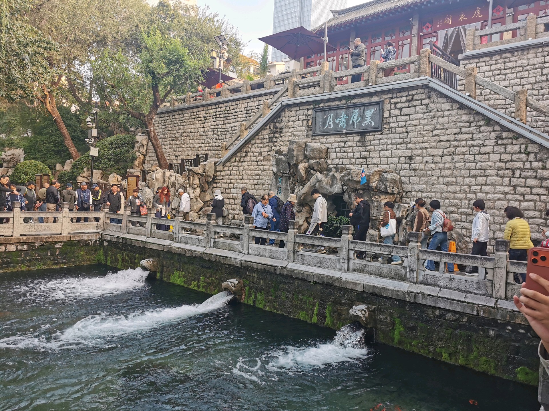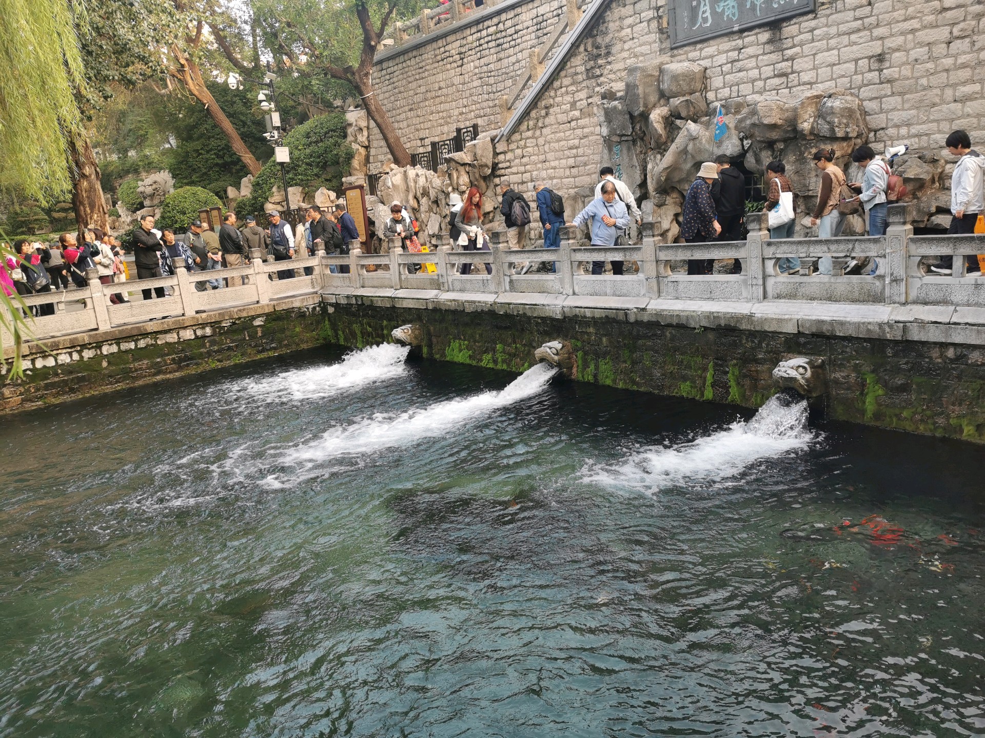 秋天的济南,连续不断的雨天,让济南的地下泉水喷涌,特别是黑虎泉的三只老虎头,口吐狂飙,泉水喷涌而出,吸引着外地游客,驻足观望,脚踩在泉水四溢的青石板上,流连忘返,连连称赞济南泉水甲天下。