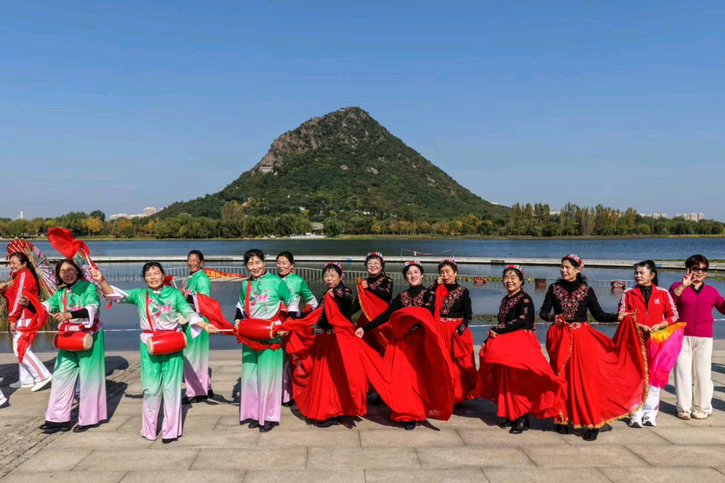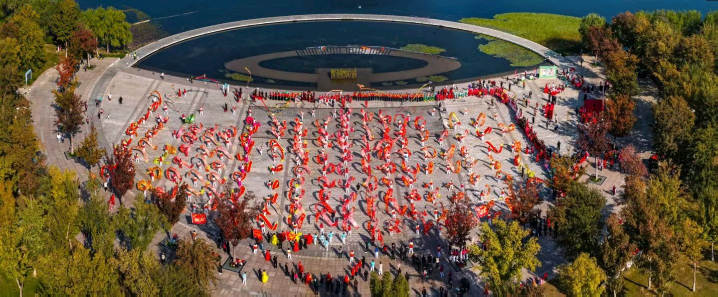 10月29日是重阳节,也是近一个月来的头一个大晴天。华山湖畔群龙飞舞,锣鼓喧天,好不热闹;百姓大舞台组织了几百人的不同团队,在映华广场上庆祝九九重阳~~老年人的节日。图文/石花