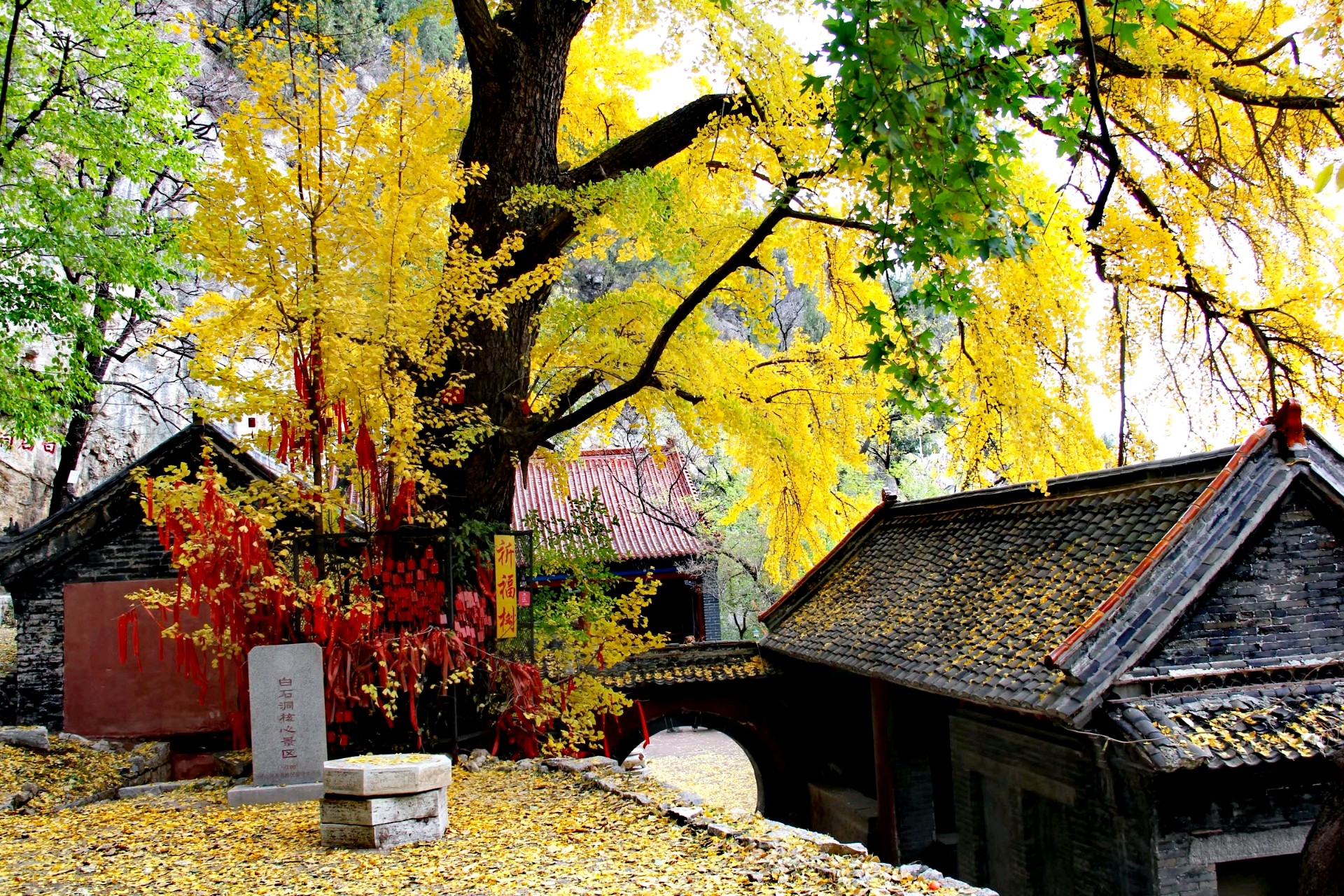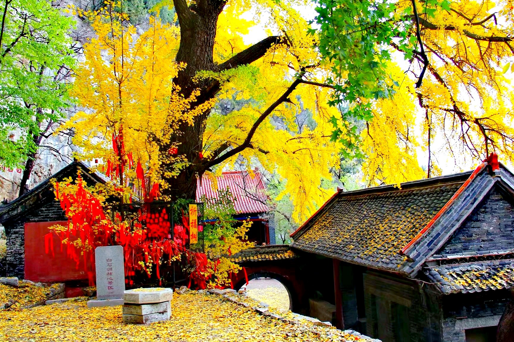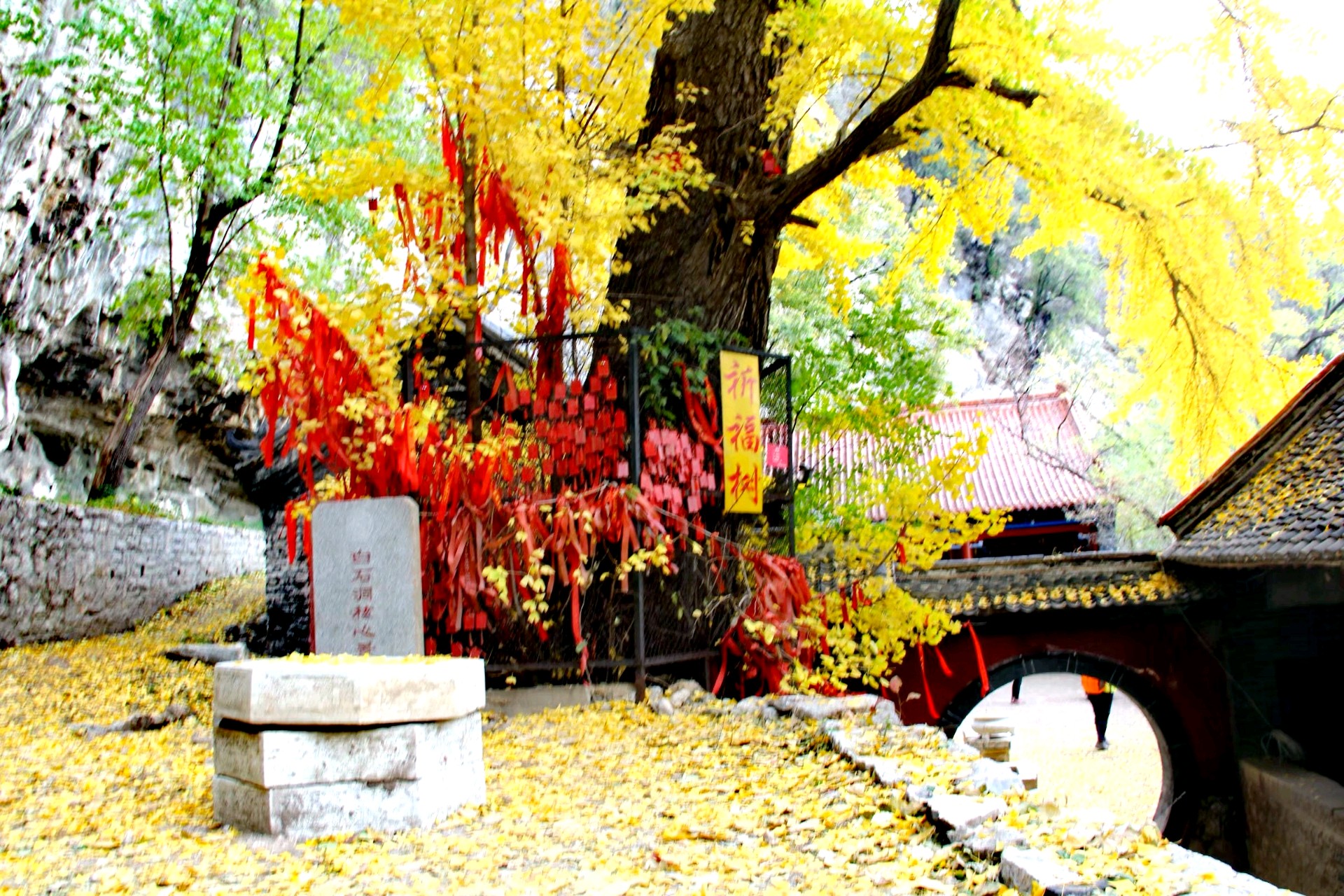 #好景山东醉美金秋!来晒秋天里的齐鲁美景#在淄博博山的群山深处,藏着一处如诗如画的秘境——白石洞,而那里的银杏,无疑是这秘境中最璀璨的明珠。当秋意渐浓,白石洞仿佛被大自然这位神奇的画师打翻了调色盘,迎来了一年中最绚烂的时刻。那棵有着八百多年历史的银杏树,宛如一位饱经沧桑的老者,静静地伫立在山谷之中,见证着岁月的变迁。