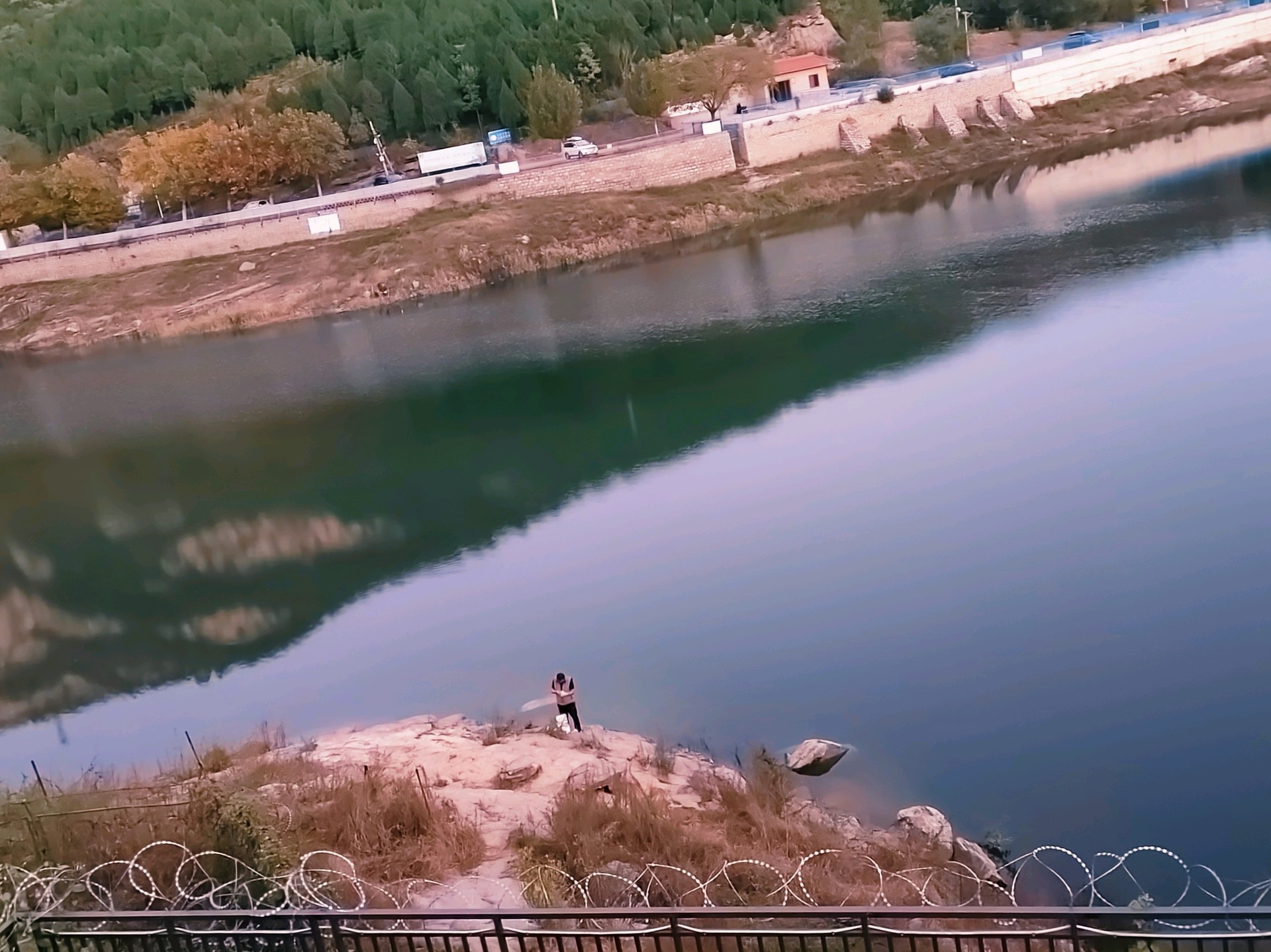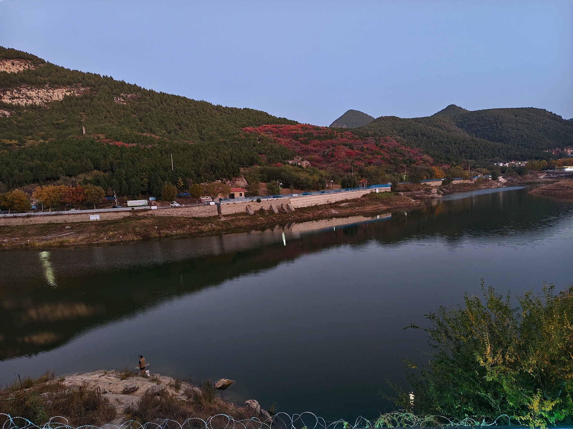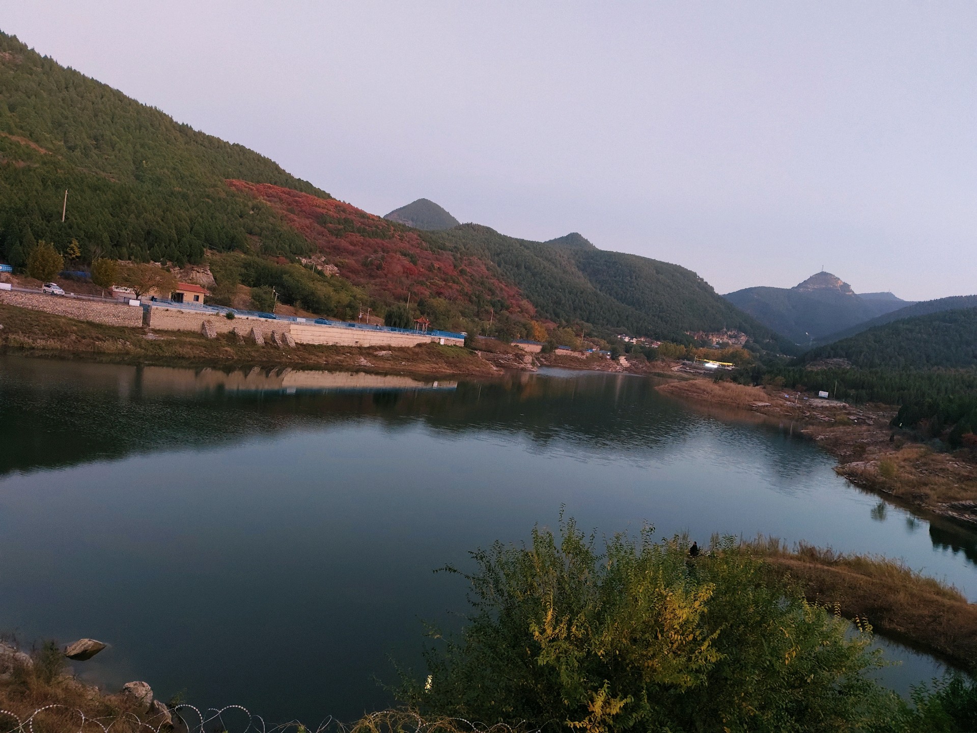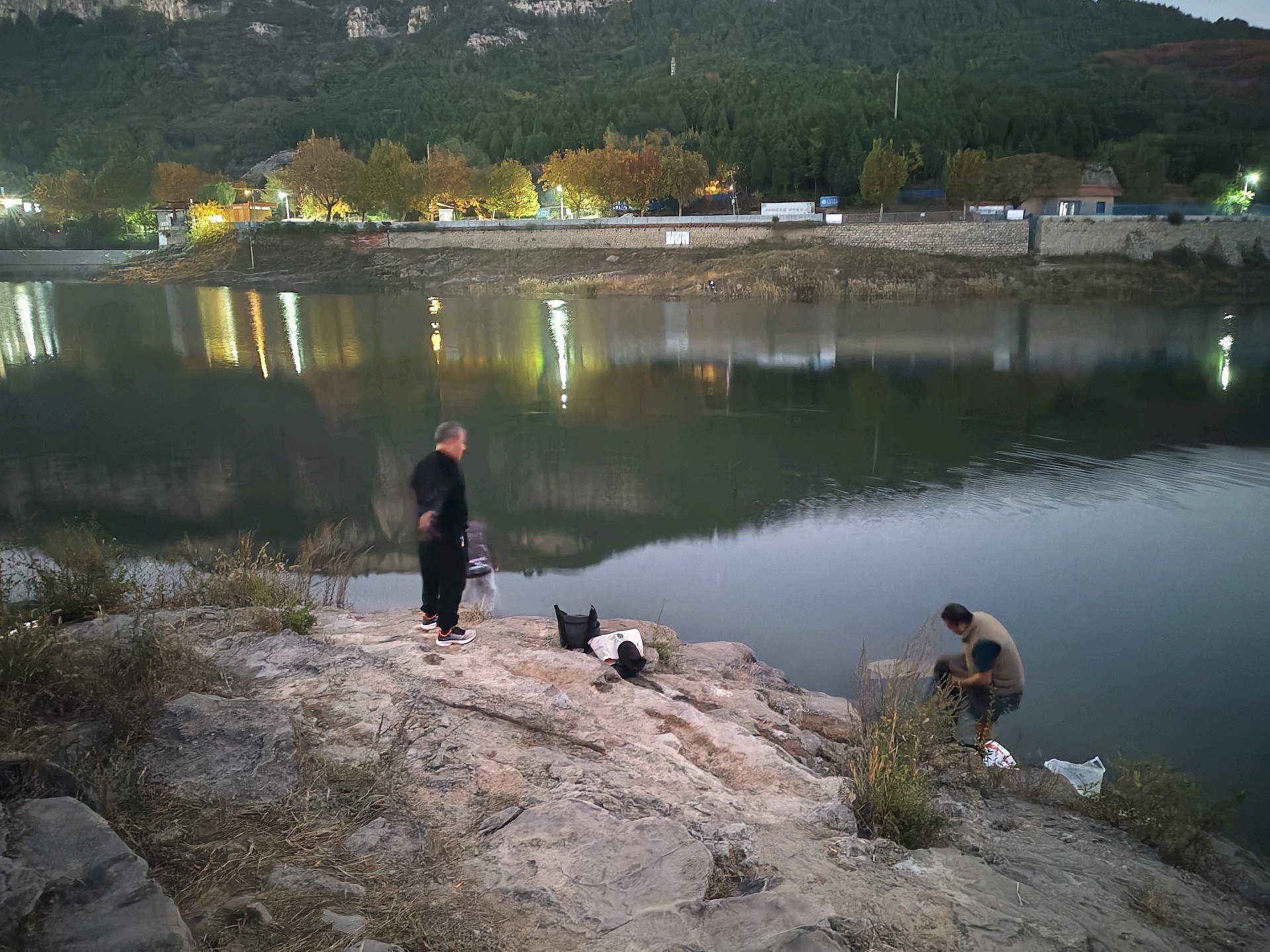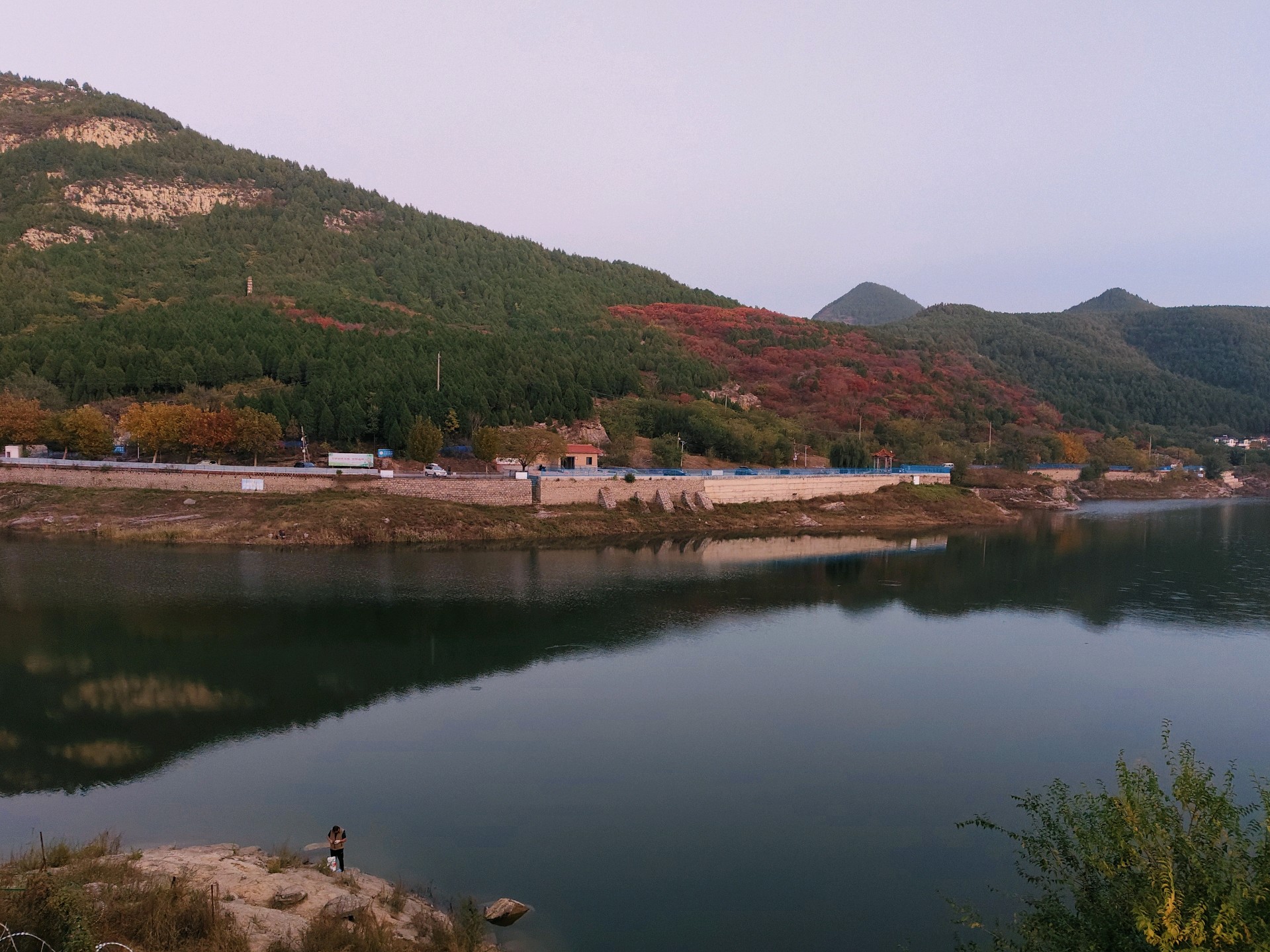 黄昏的浆水泉,泉水如碧,静谧如画。人在湖边享受着宁静的时光,感受大自然的气息。