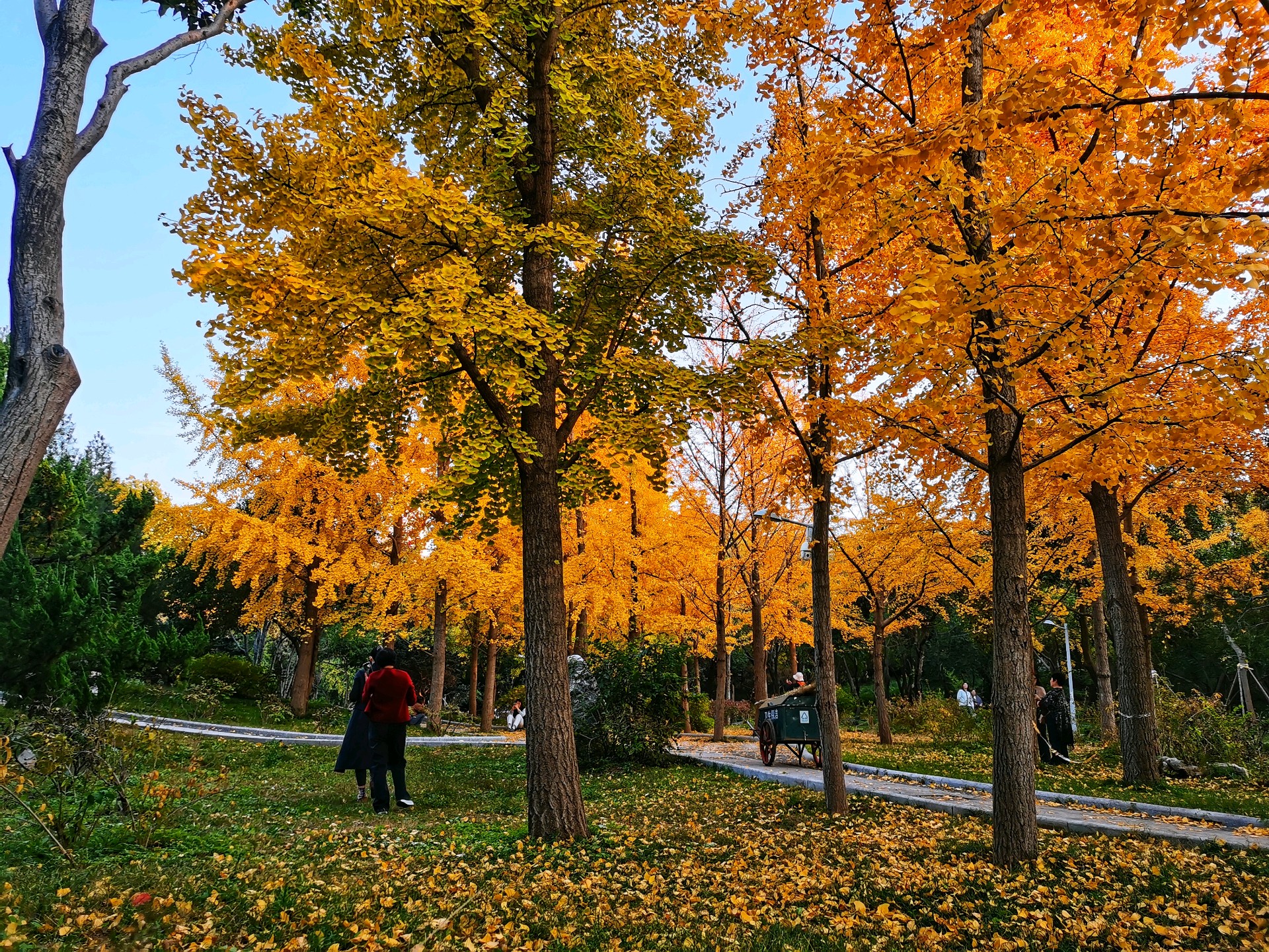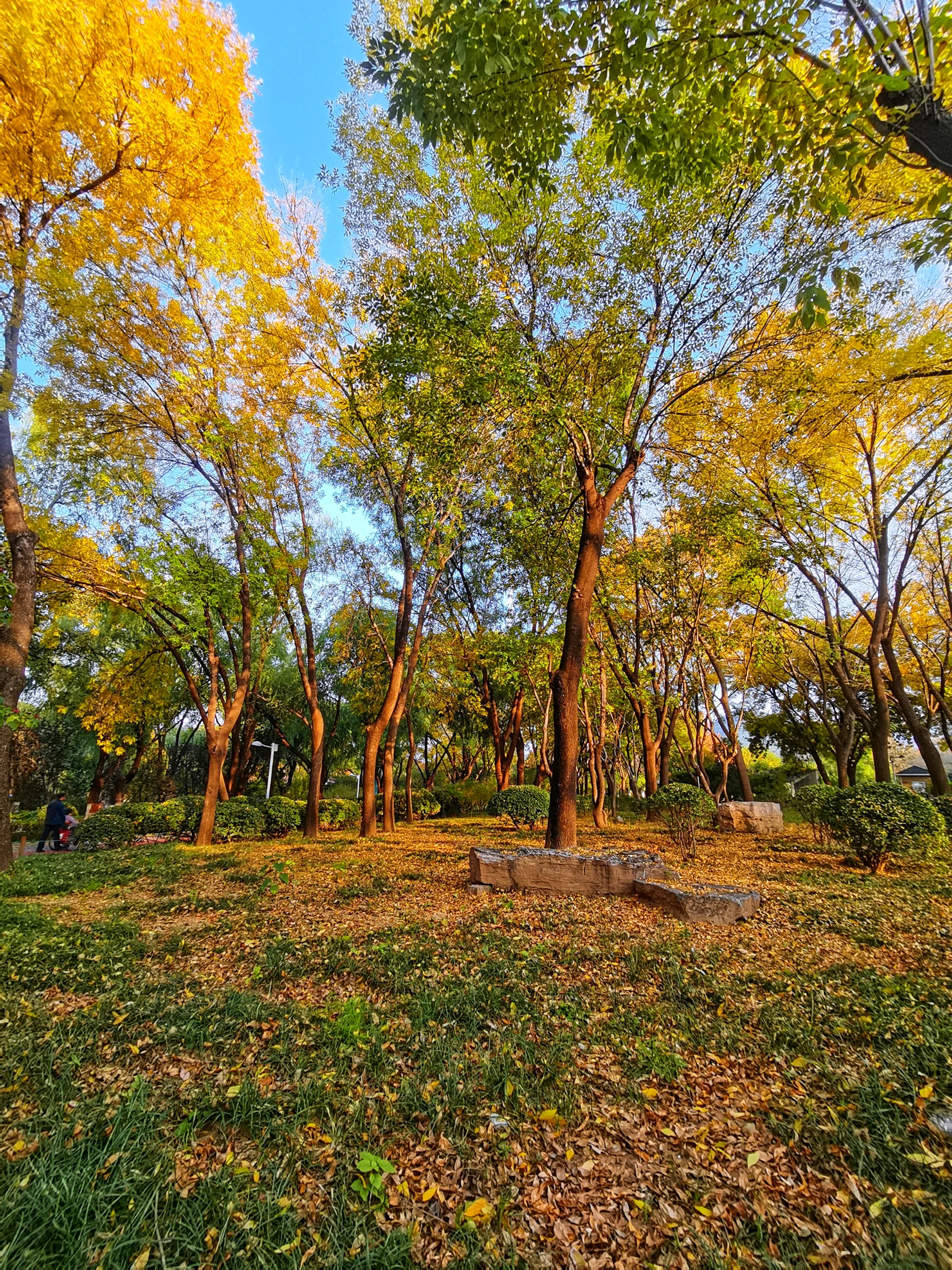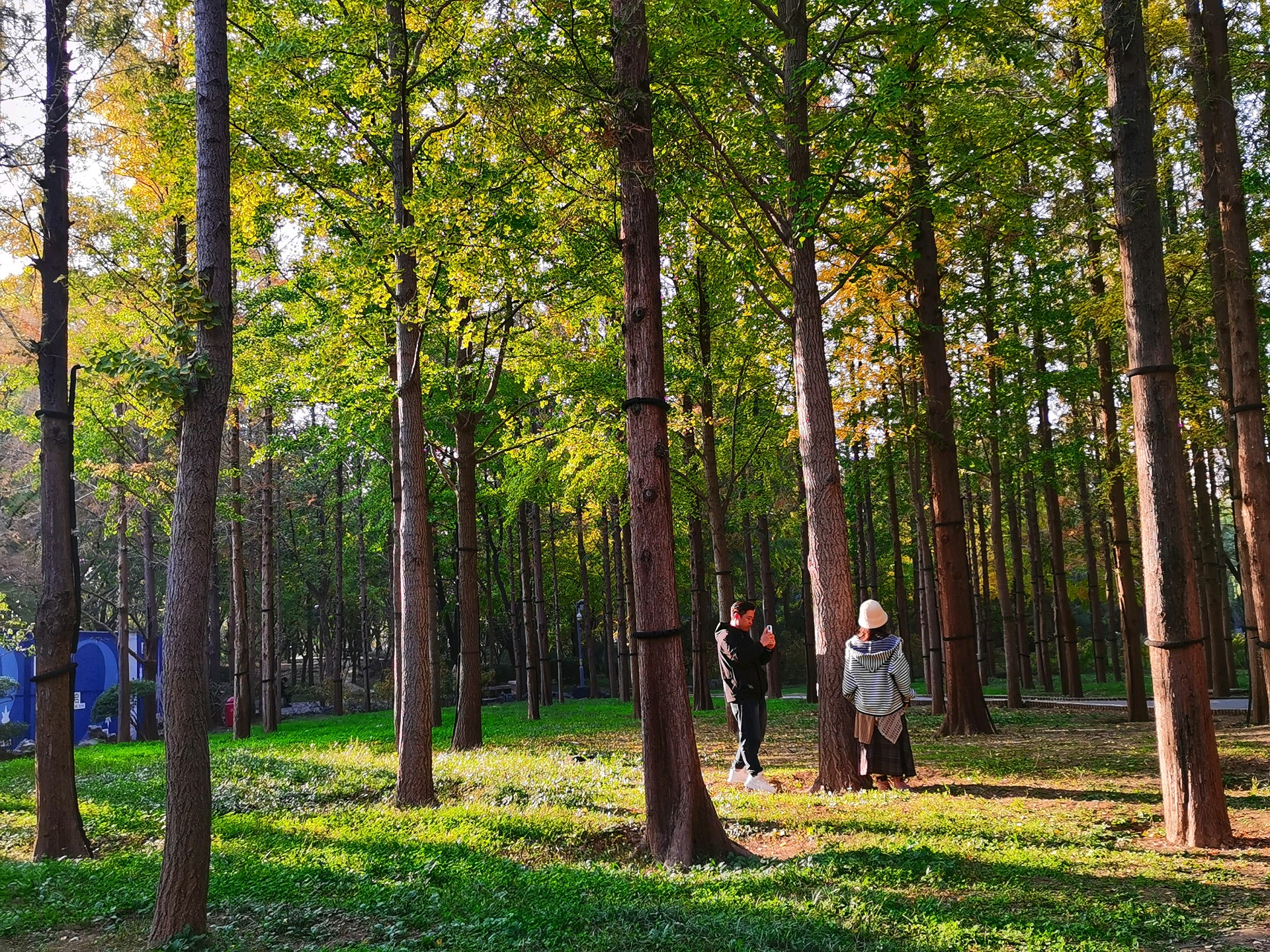深秋的泉城公园,树叶渐渐变黄,林见黄绿相间,风吹叶落,满地金黄,为这个秋天增添了浪漫色彩。