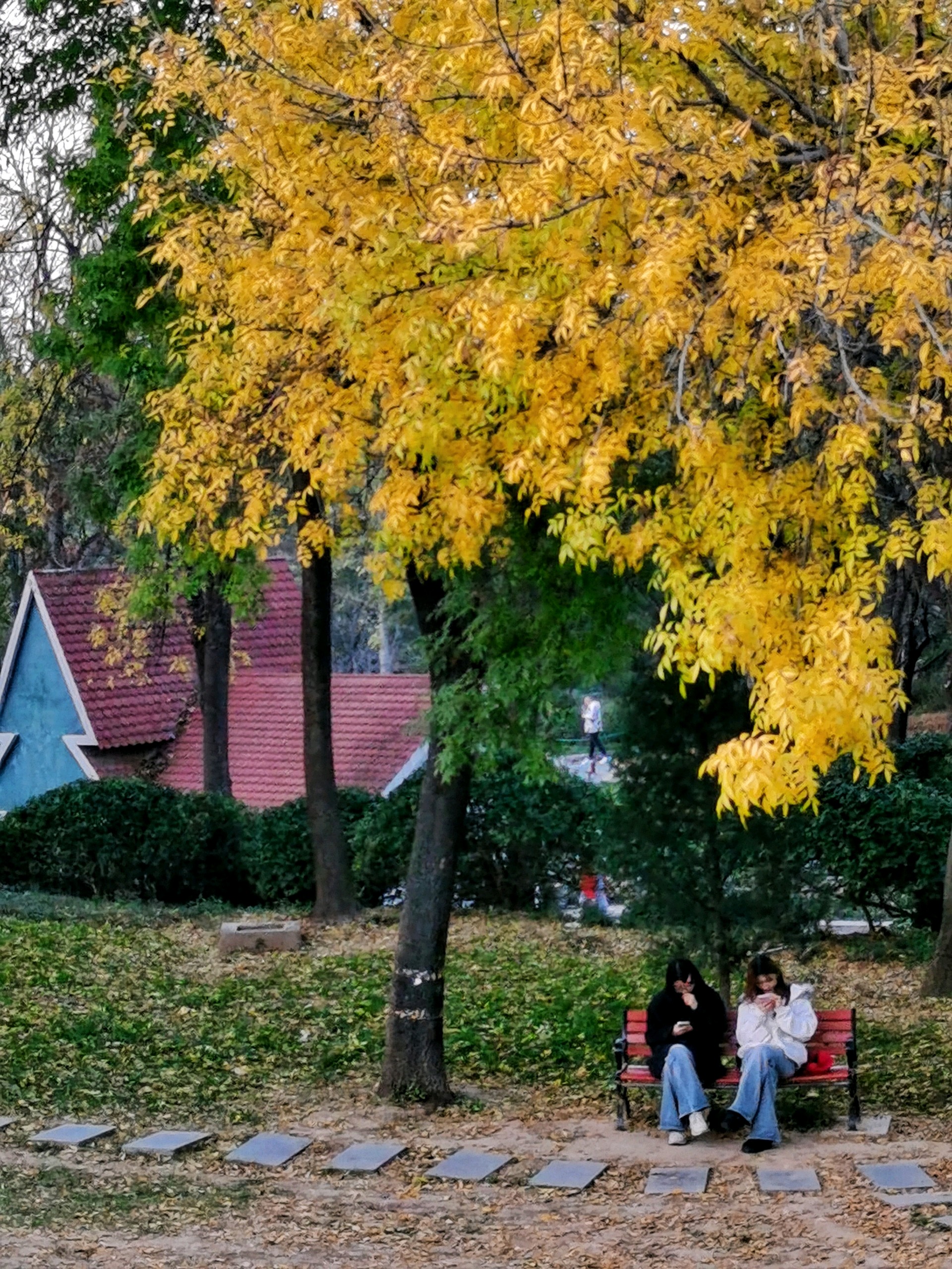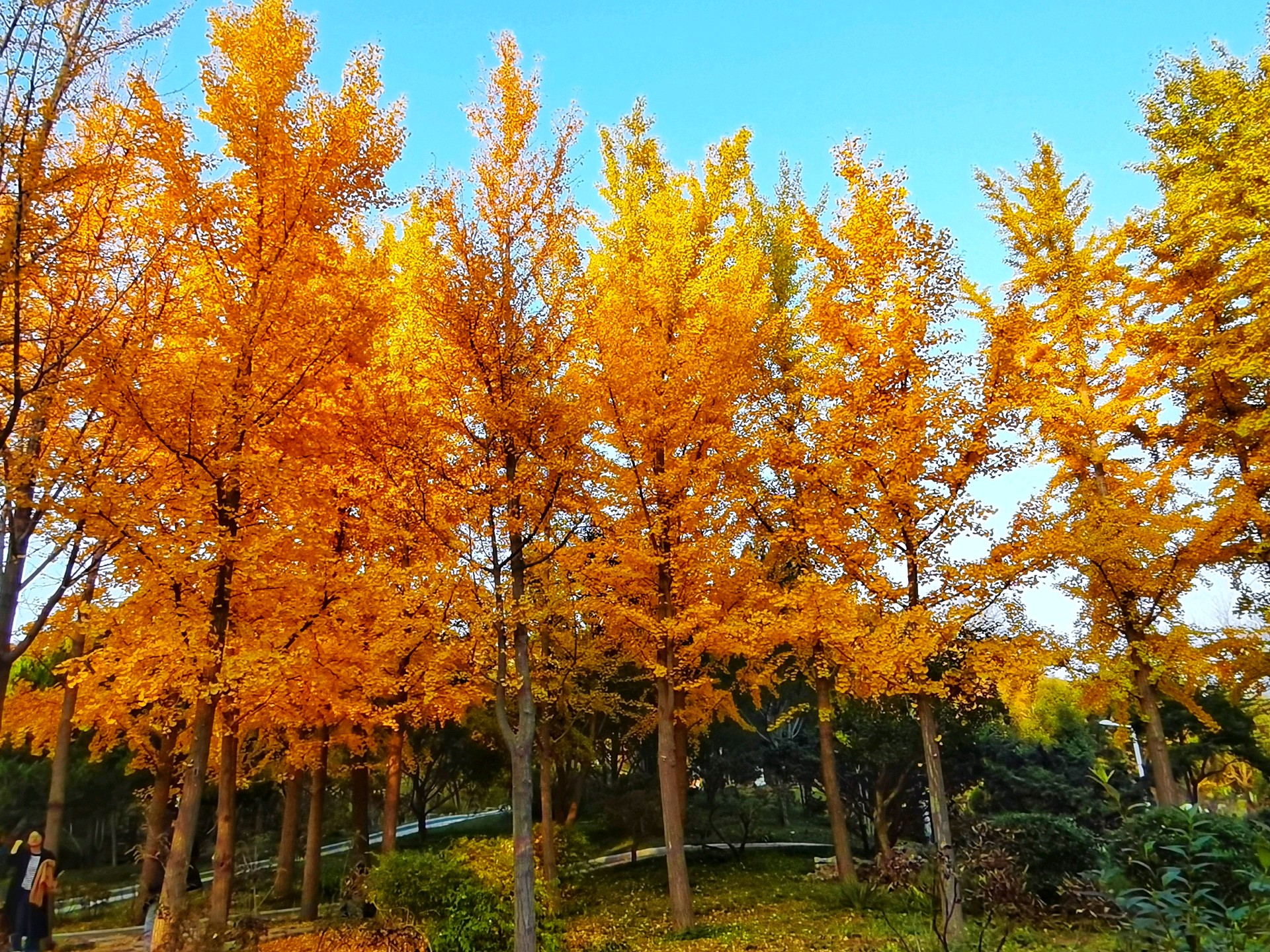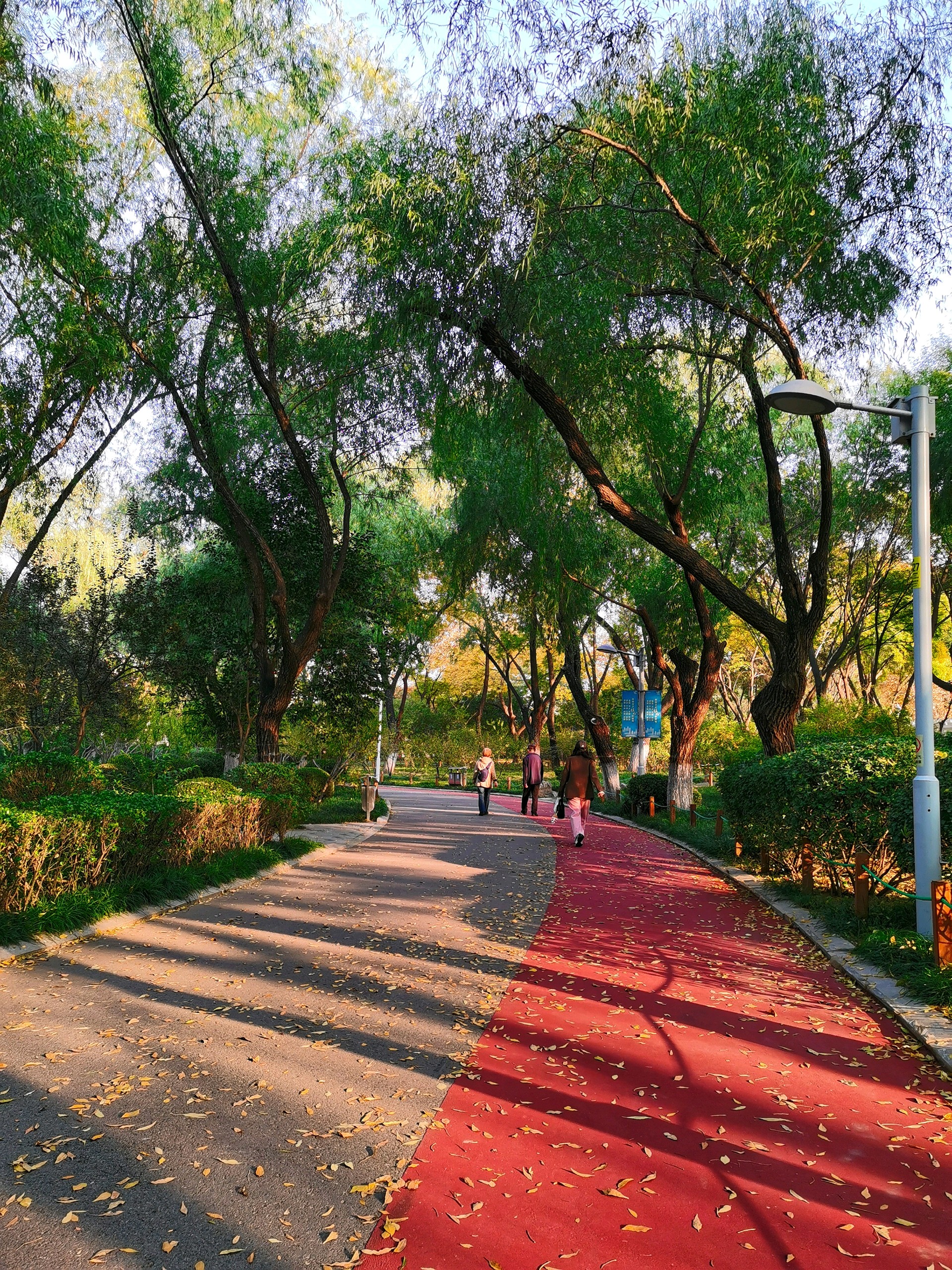 深秋的泉城公园,树叶渐渐变黄,林见黄绿相间,风吹叶落,满地金黄,为这个秋天增添了浪漫色彩。