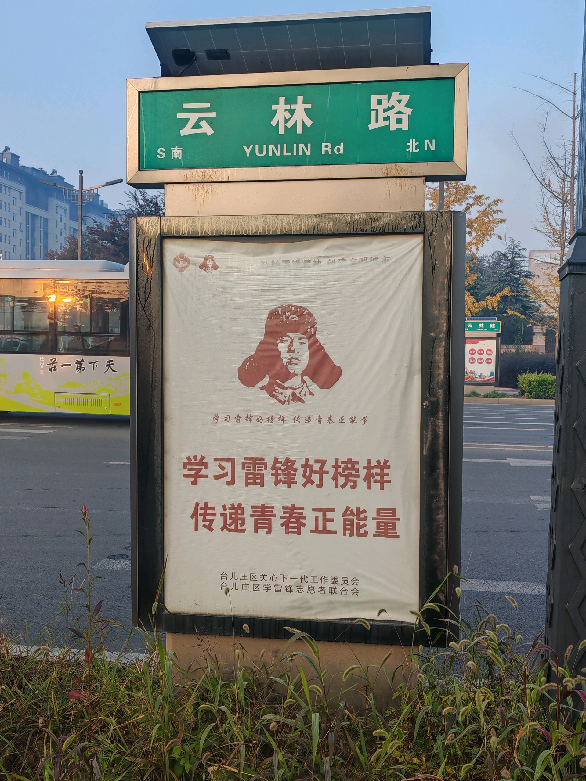 秋去冬来,晨沐凉风,漫步云林,晨曦如画,红叶叠加,朝日如霞,霜染菊黄,杏叶铺金,缤纷多彩,雷锋精神,榜样闪光,古城校园,书声琅琅,国之栋梁,自此成长,文明台庄,处处安全,风景如画,民风淳朴,生活幸福。枣庄市雷锋精神研究会 贾继伟(11月5日晨于云林路偶作)