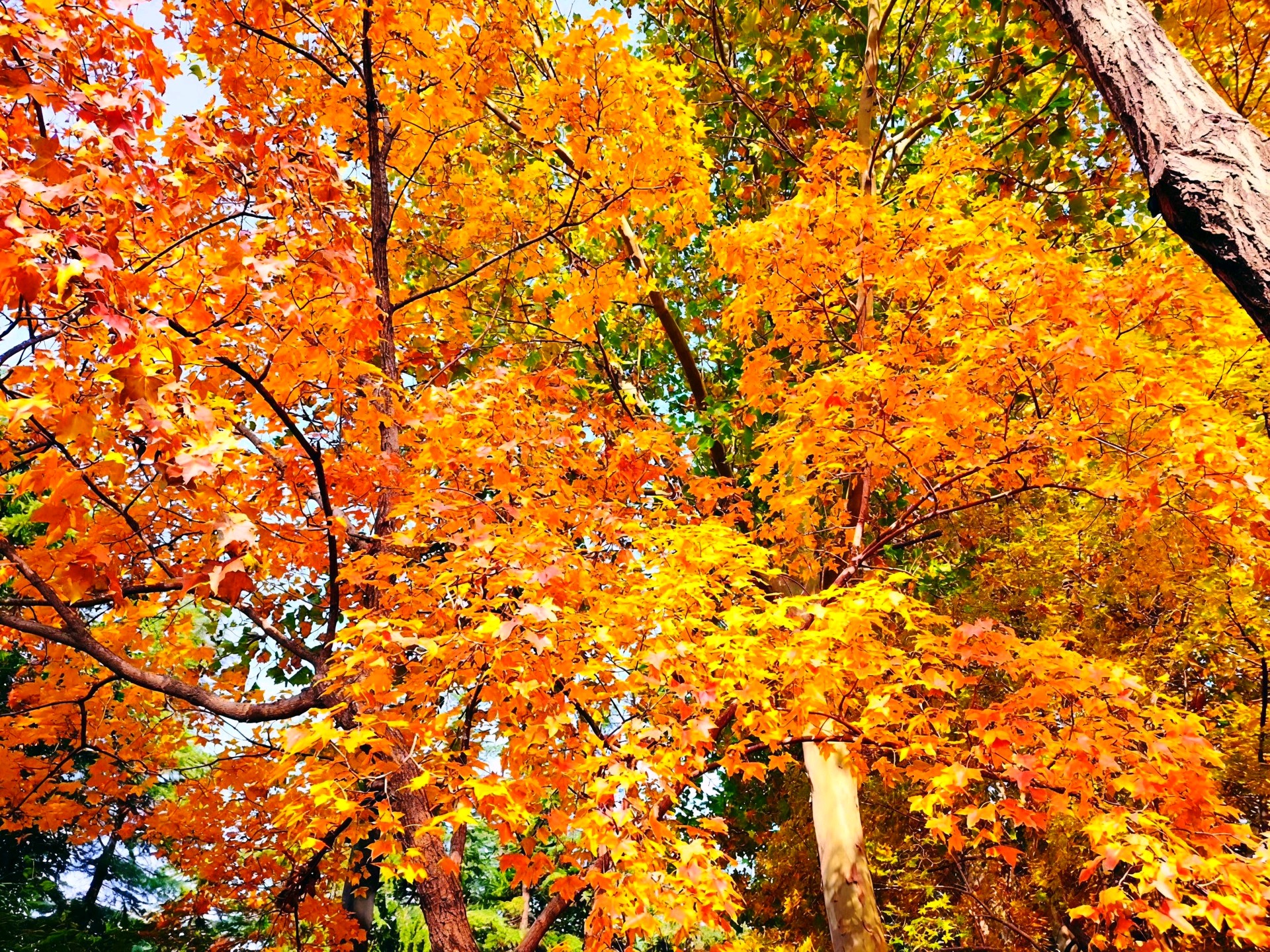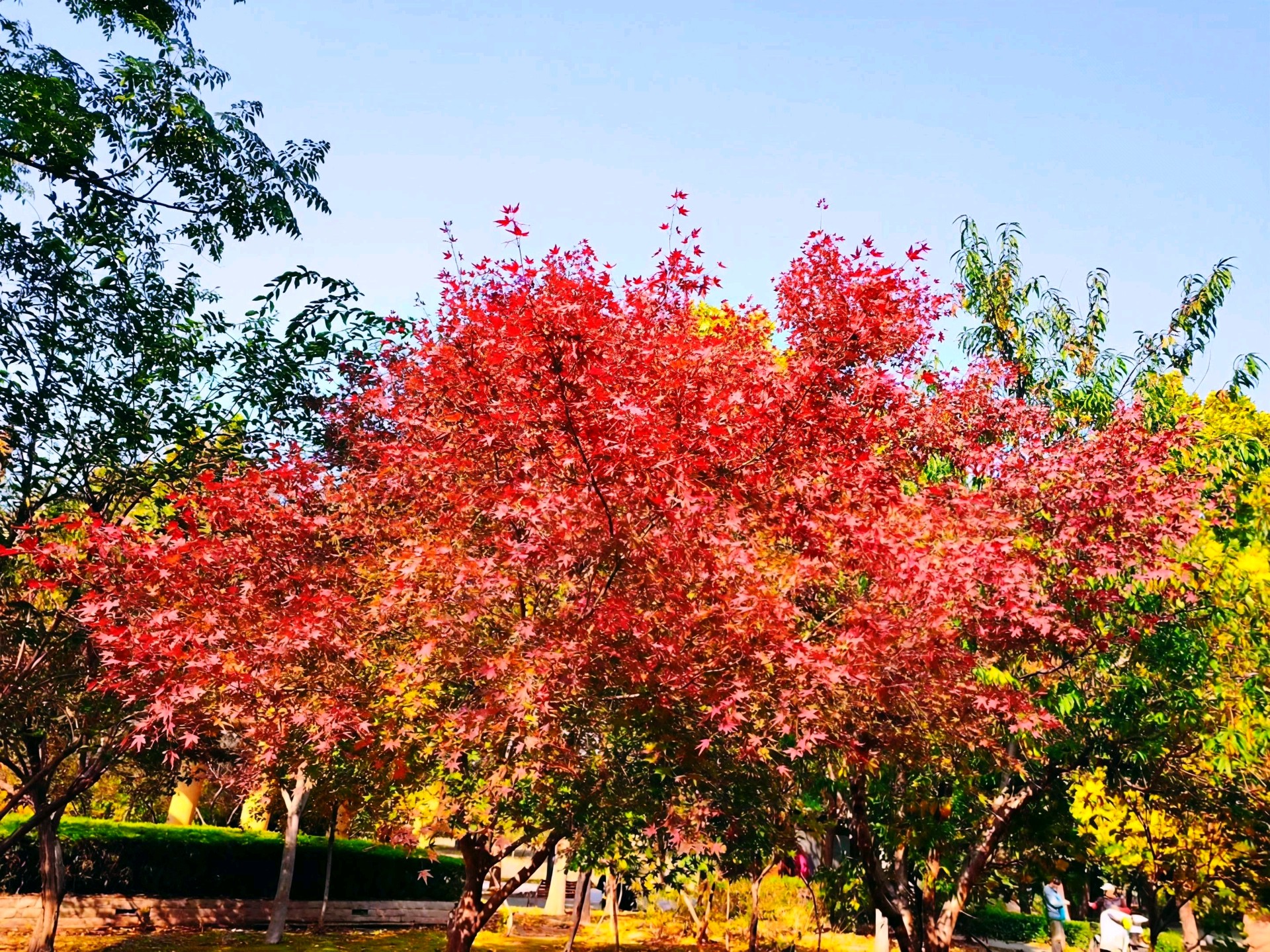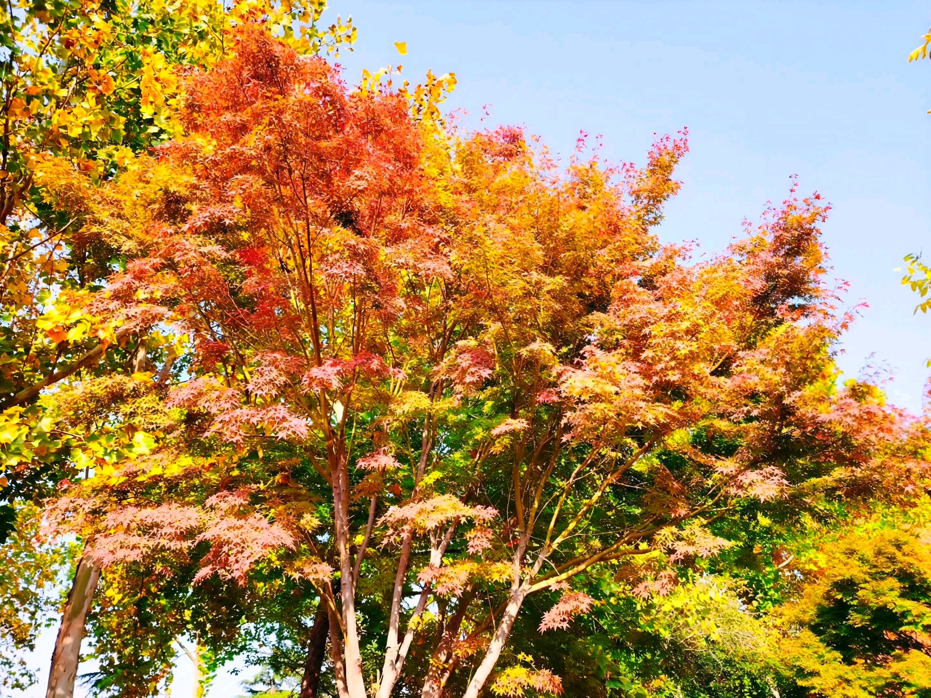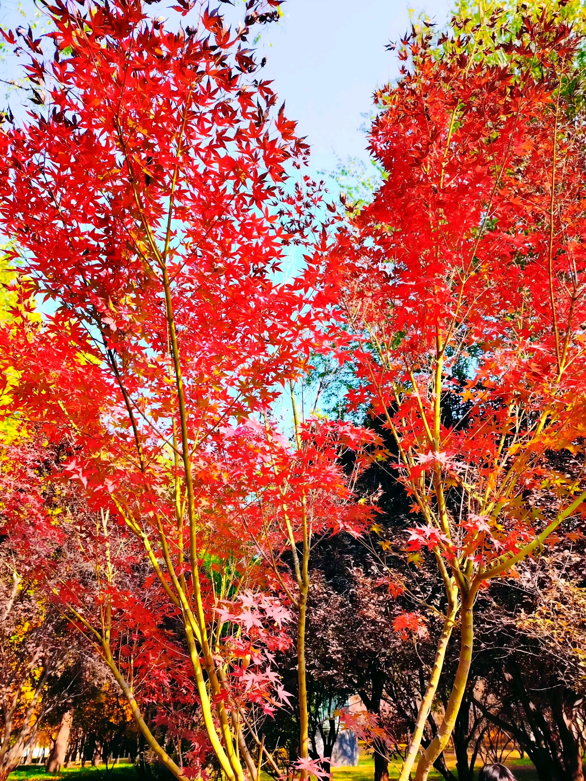 枫叶红了,像火焰一样燃烧着整个秋天。阳光透过树叶洒下金色的光芒,为这片景色增添了温暖和生机。快来感受这美丽的秋日吧!