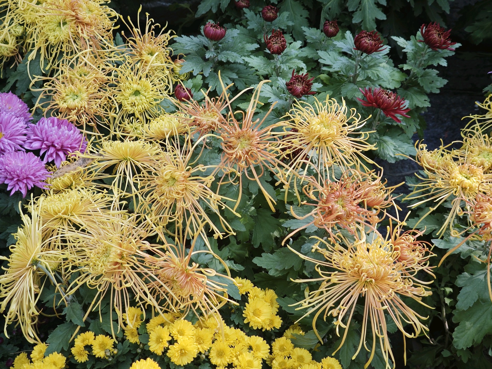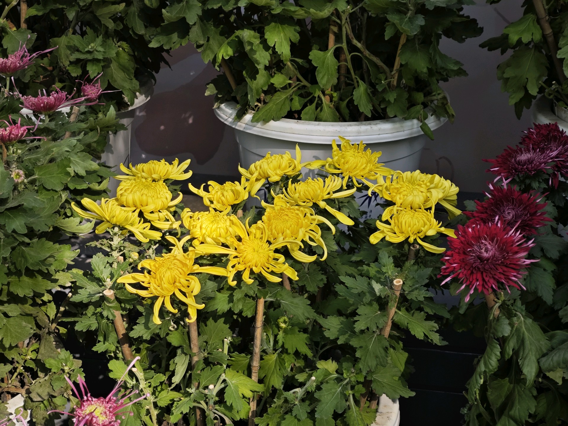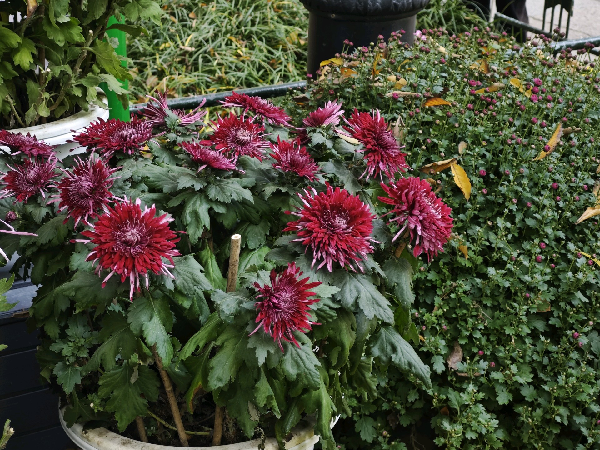 - 秋天的菊,红似火,粉如霞,白若雪,大如彩球,小似花灯,在霜风中尽显婀娜。- 深秋百花谢,唯菊傲霜开。纤细花瓣垂卷,红芯娇羞,黄如金灿,白似雪纯,美轮美奂。- 秋风起,菊花香。那金黄的菊花如阳光倾洒,白菊似霜华凝结,瓣瓣舒展,韵致悠然。红艳艳的花朵盛开在绿叶丛中,像一团燃烧的火焰,美丽极了!🌸🌺