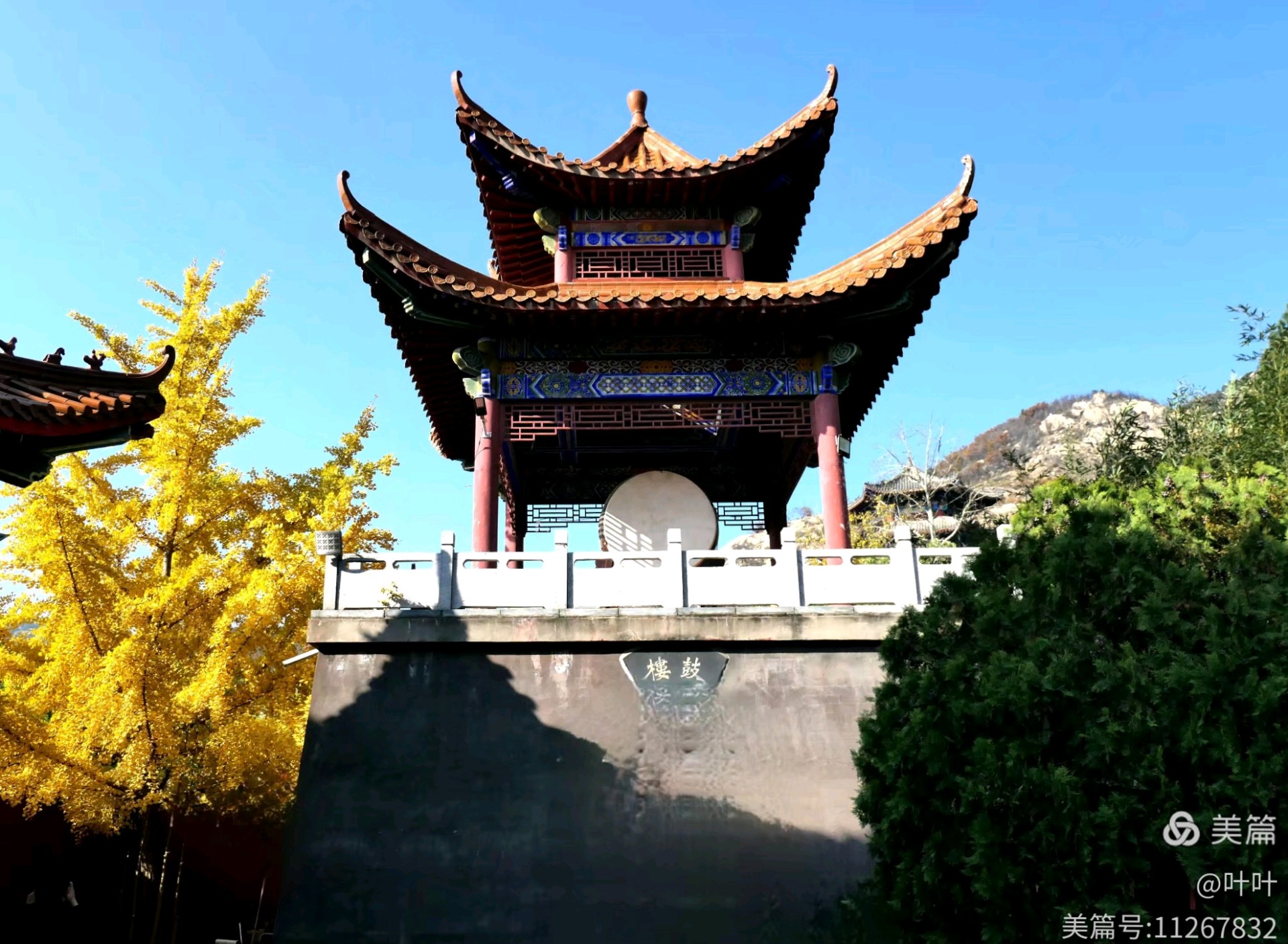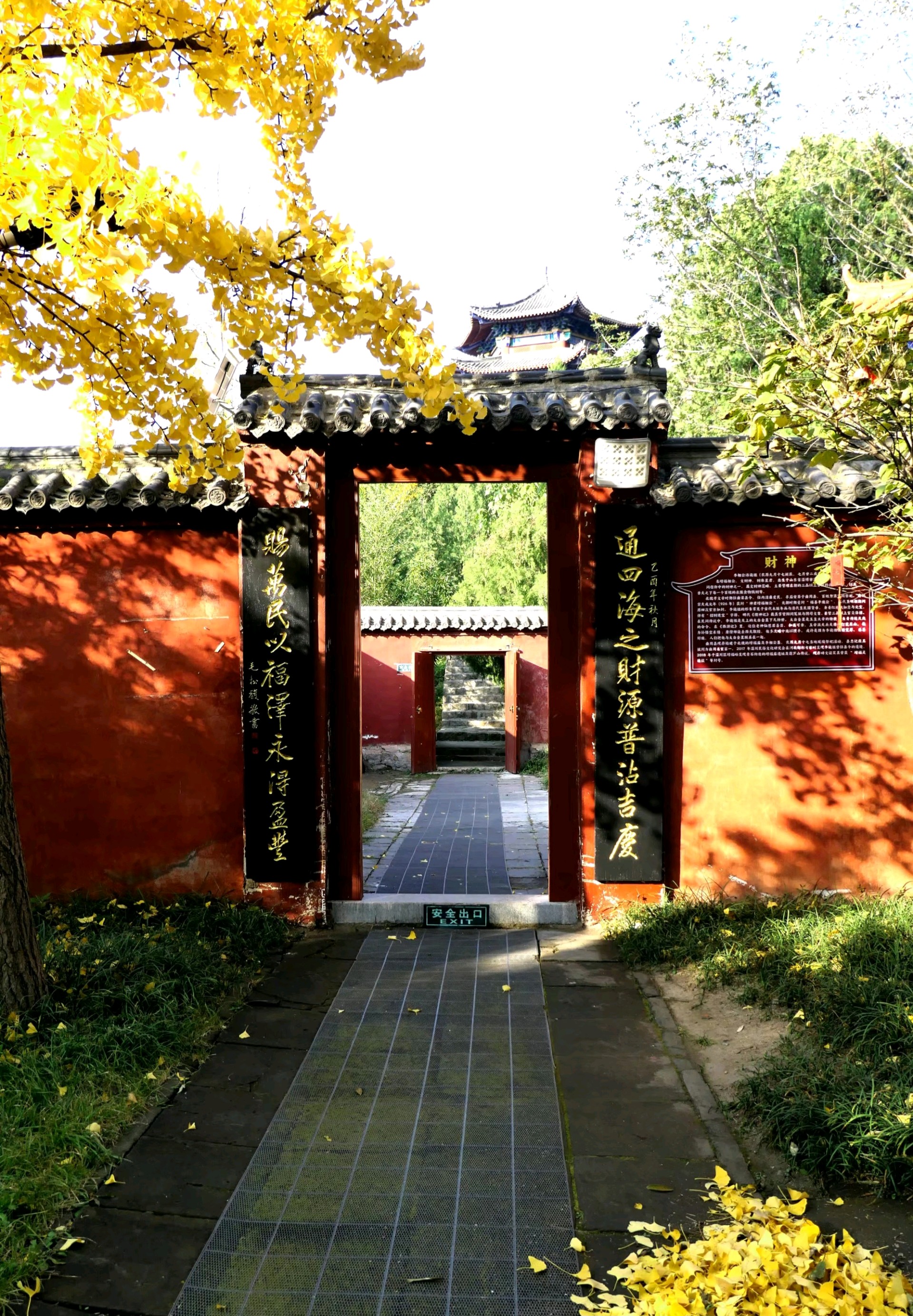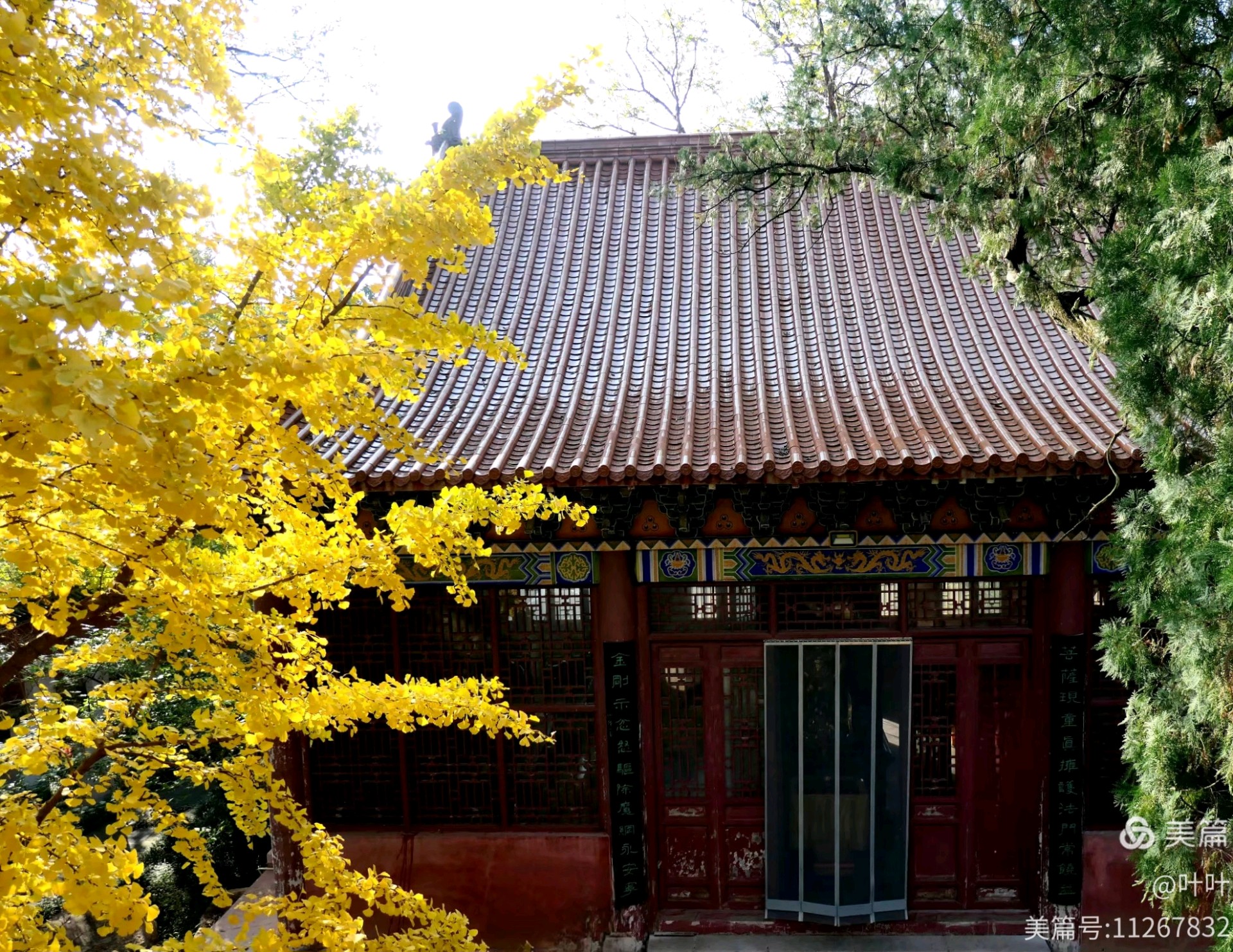 泰安市新泰新甫山观音院的秋色以银杏树为亮点,金黄叶片与古刹建筑相映成趣,构成绝美画卷。