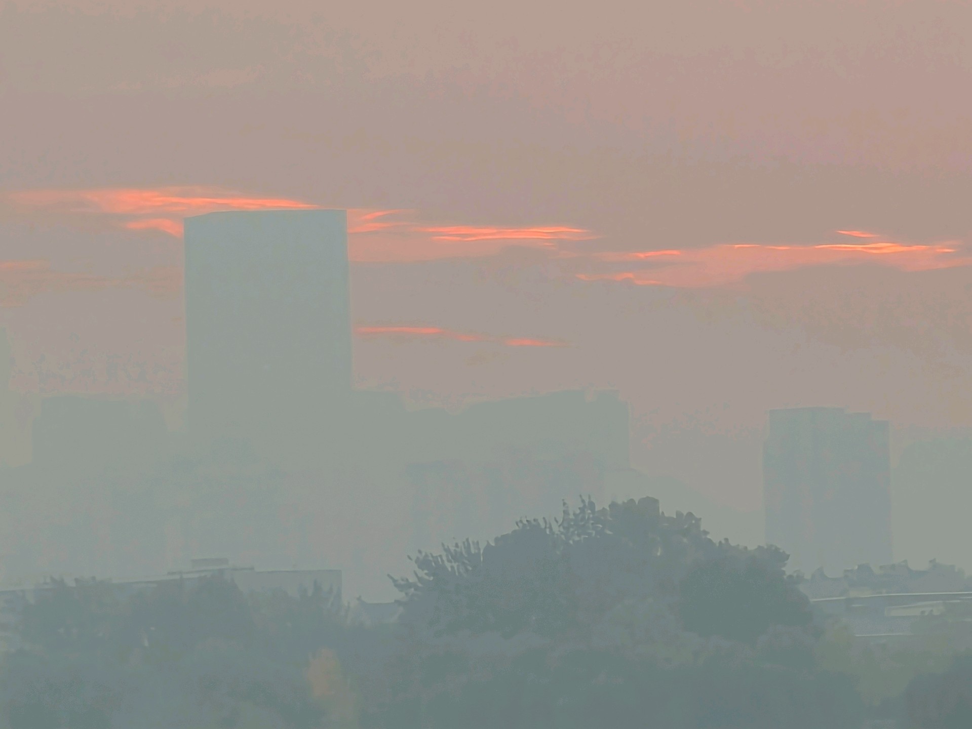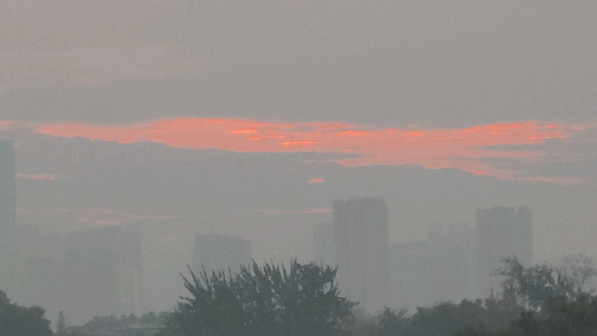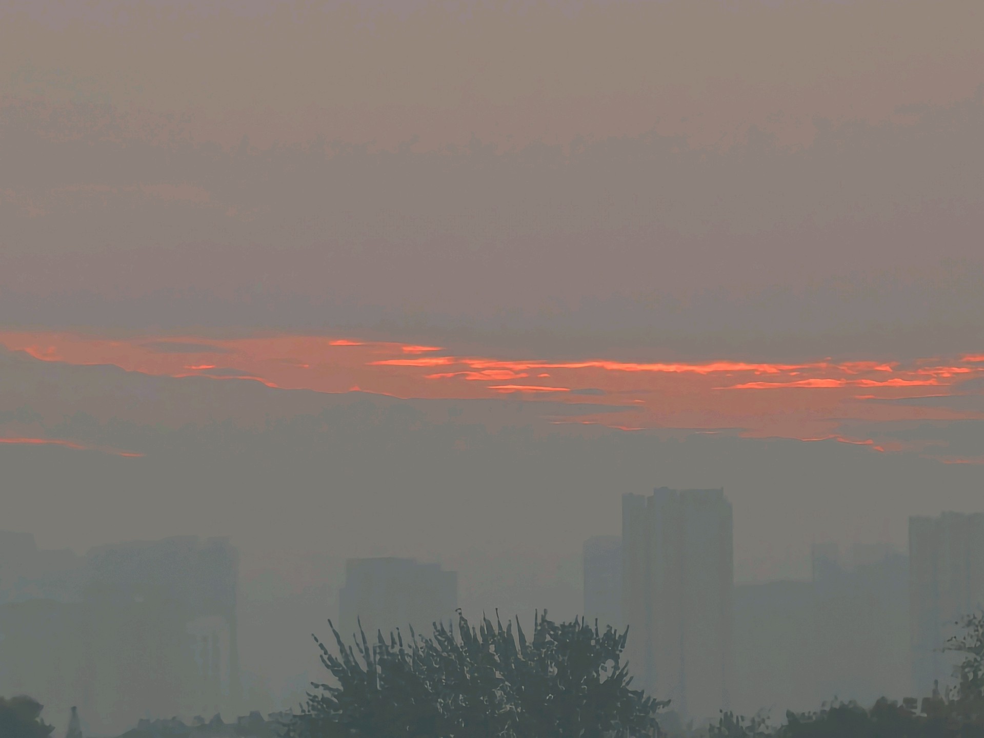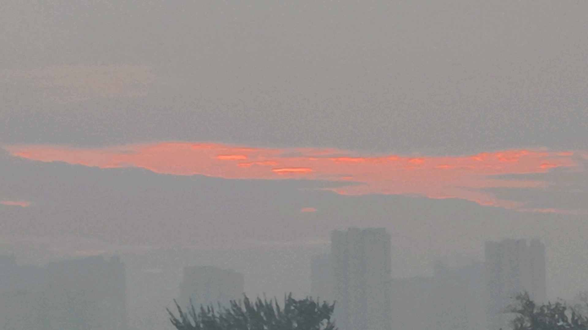 今天早上的大明湖畔,一缕红色的云霞挂在天际,倒映在静静的湖面上,湖水被晕染的绯红,美轮美奂。