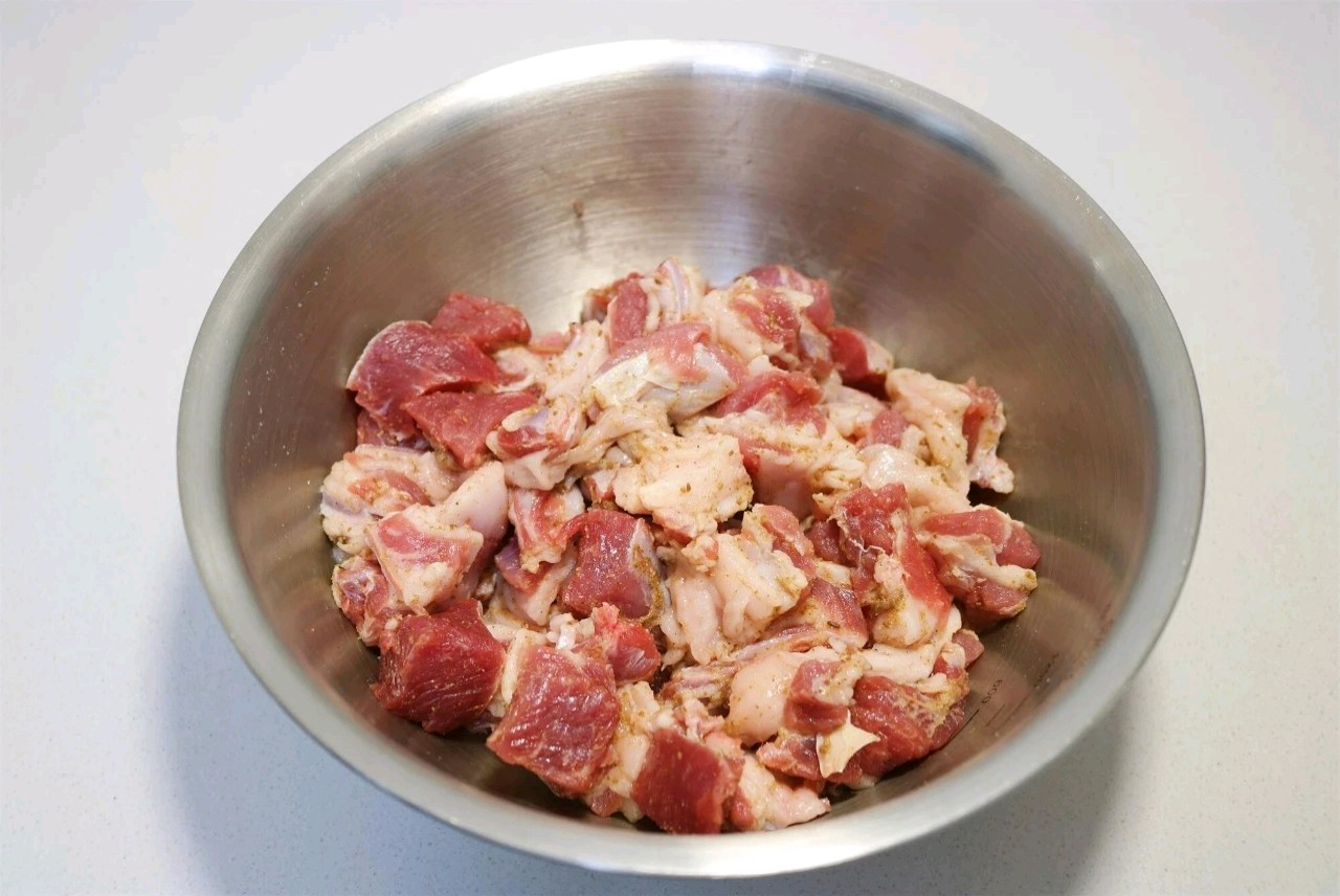 2、羊肉洗净,切成小块。