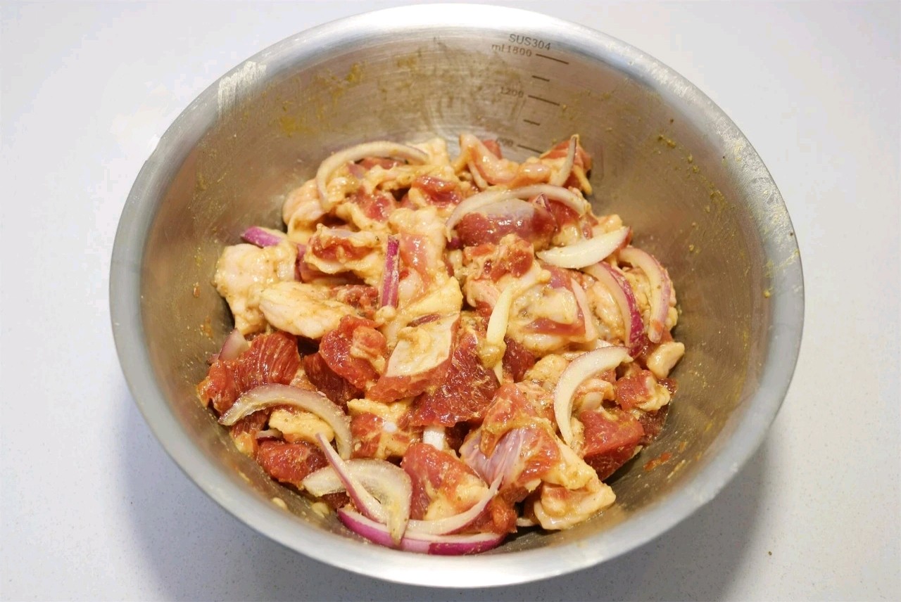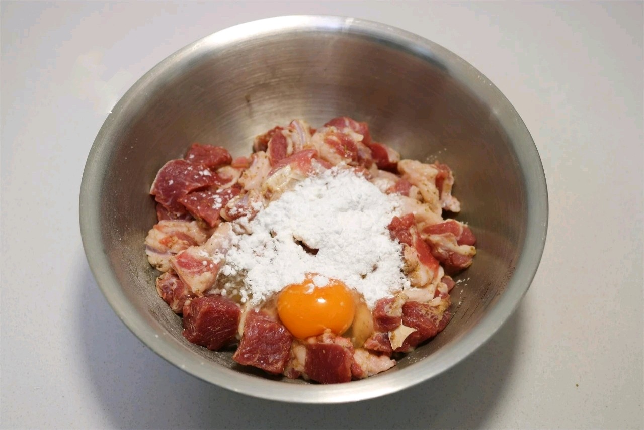 3、加盐、白胡椒粉、十三香、多一点的孜然粉,抓拌均匀。喜欢吃辣,可以放些辣椒粉。4、再打入一个鸡蛋,放点淀粉,再次抓匀。5、放点洋葱丝,抓匀腌制10~20分钟。羊肉腌好,放点白芝麻拌匀。