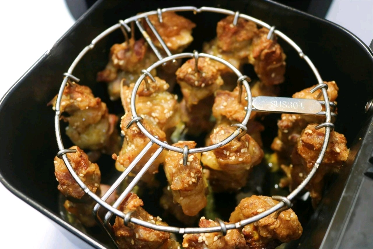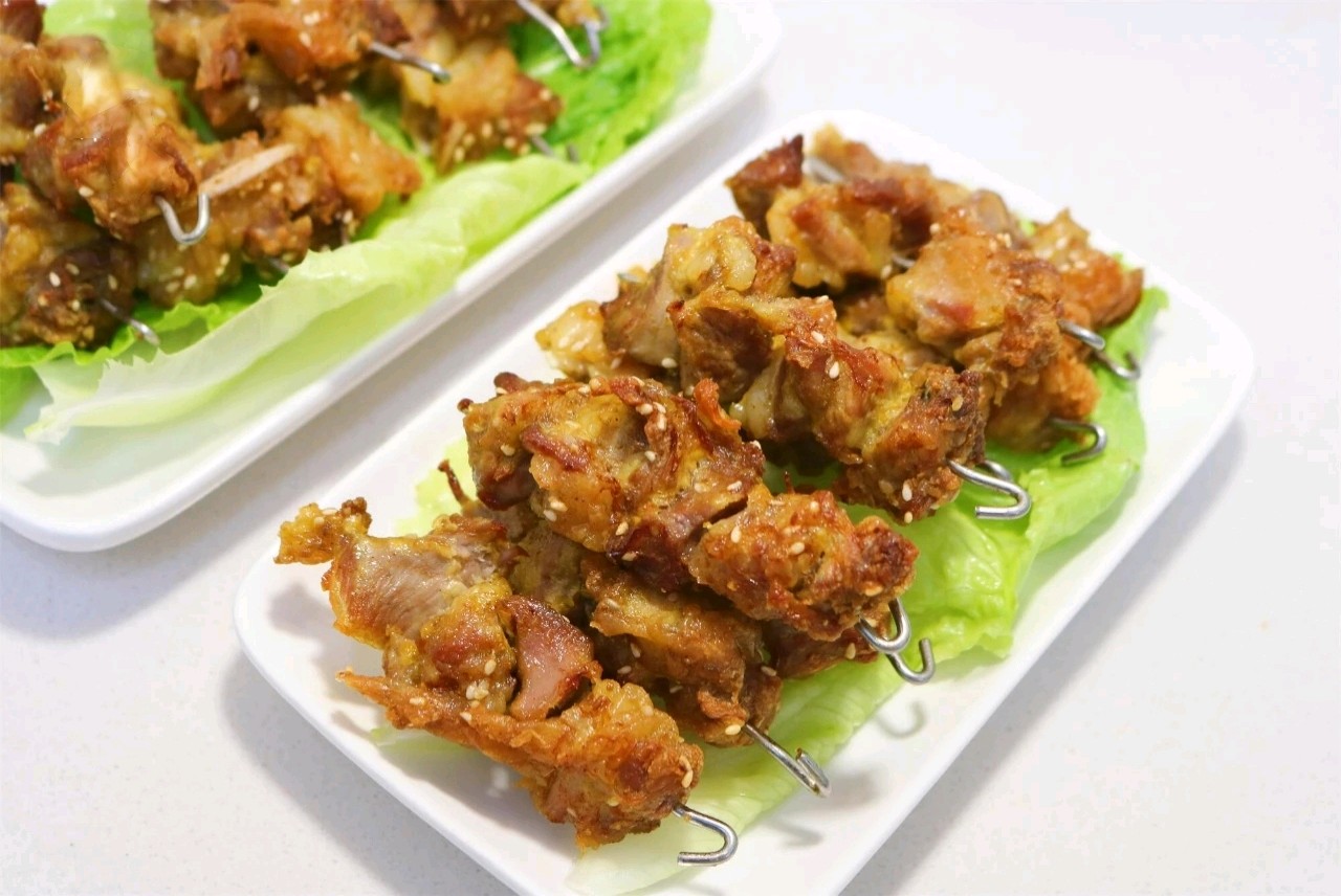 #壹粉食堂#空气炸锅烤肉串,全程不用翻动,外焦里嫩又多汁,好做好吃。