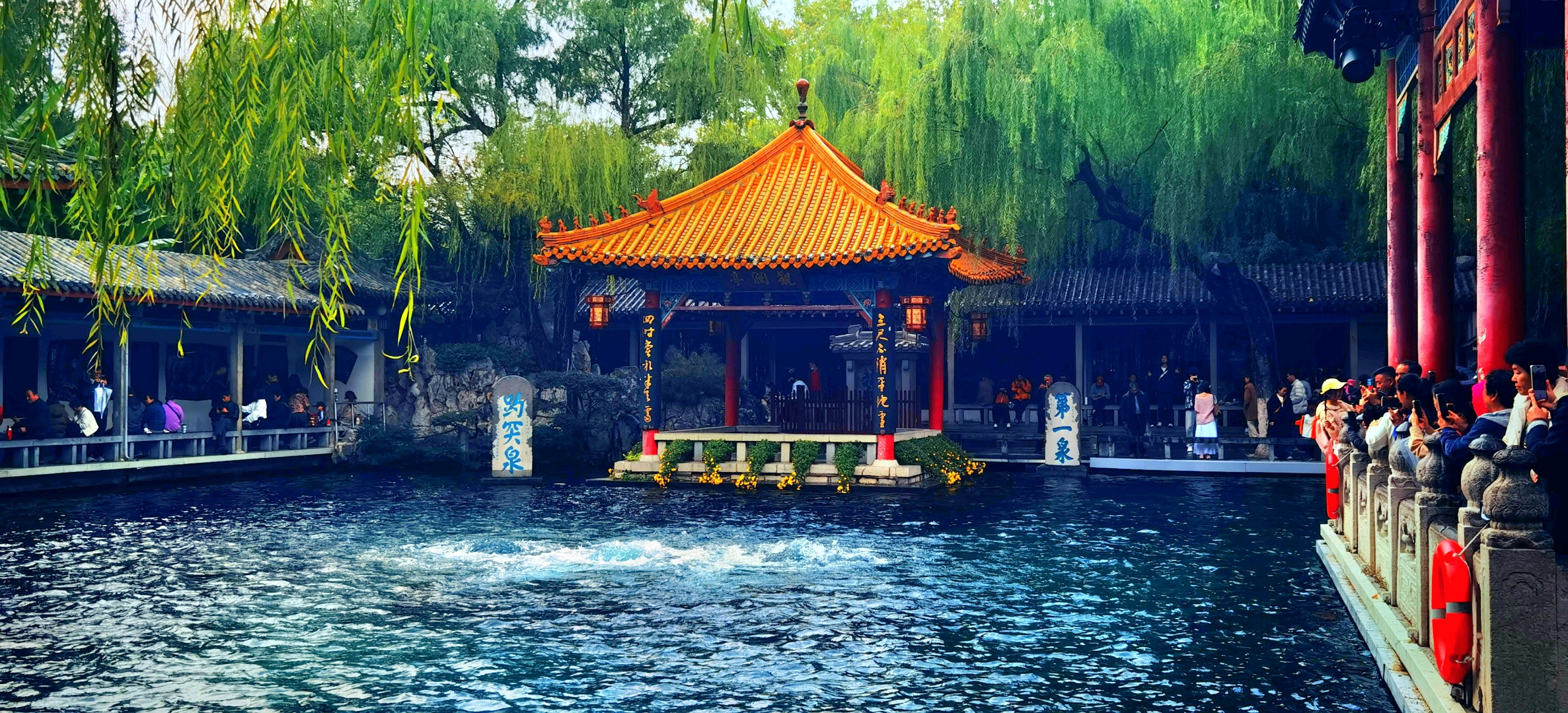 今年雨水多,济南众泉喷涌势头猛。济南趵突泉公园不仅三股水喷的欢,像漱玉泉,濯缨泉以及许多泉水流过的小桥旁,小溪流,都是水势大,流淌急。来趵突泉看水,真是看不够。