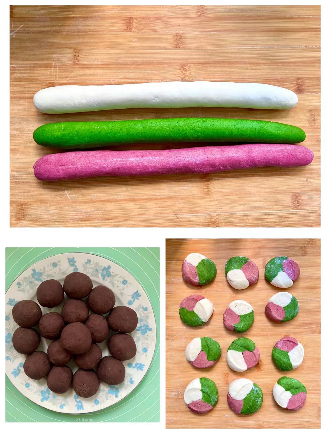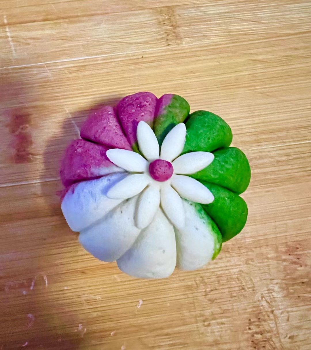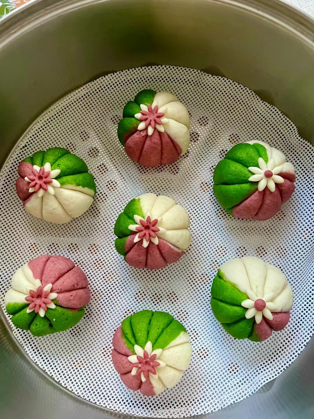 #壹粉食堂#今天蒸了一锅彩色豆沙包,分别用菠菜泥、红曲米粉加酵母粉和面,包上红豆馅造型随意设计。都做好后冷水上锅醒发至蓬松,大火烧开转中火蒸15分钟,关火再焖5分钟即可出锅。好看又好吃的花样豆沙包就做好了