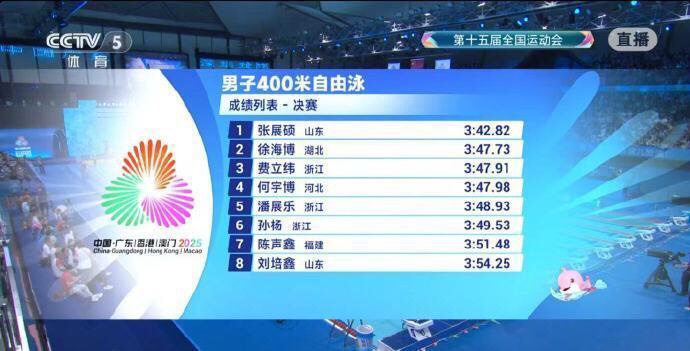 祝贺山东游泳运动员张展硕在男子400米自由泳决赛中获得冠军!并且刷新了世界青年纪录,为山东争了光,祝贺张展硕在今后的比赛中再接再厉,再创新高!