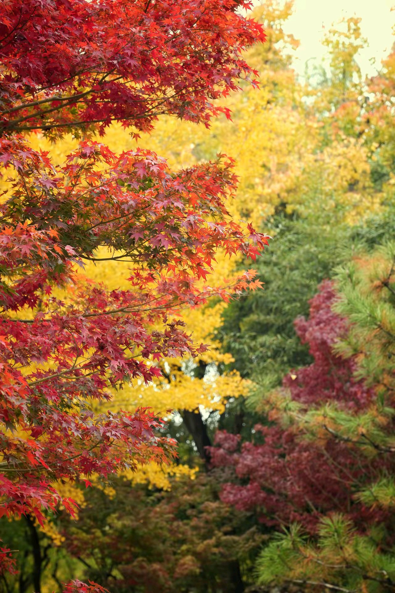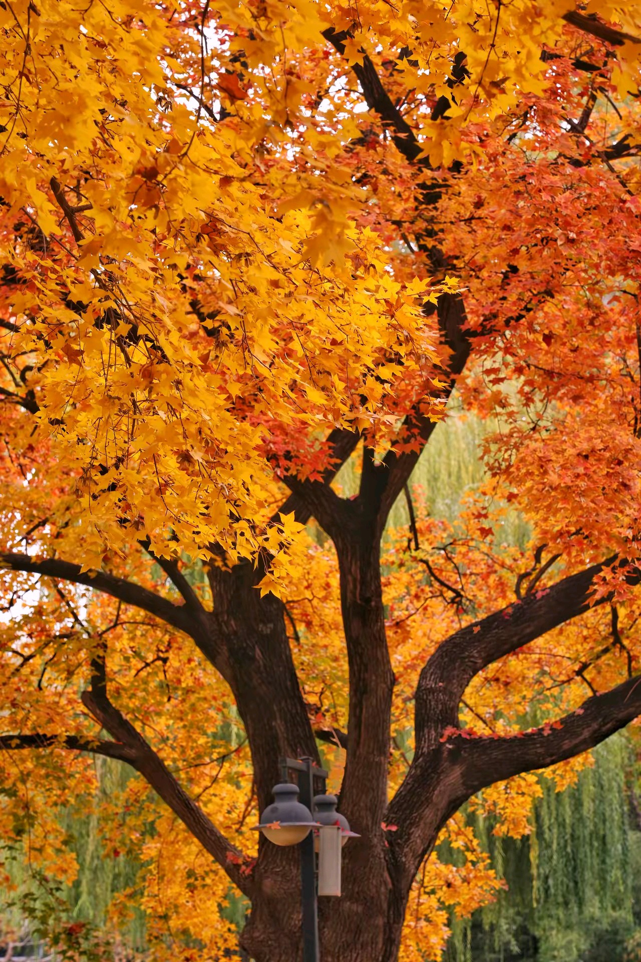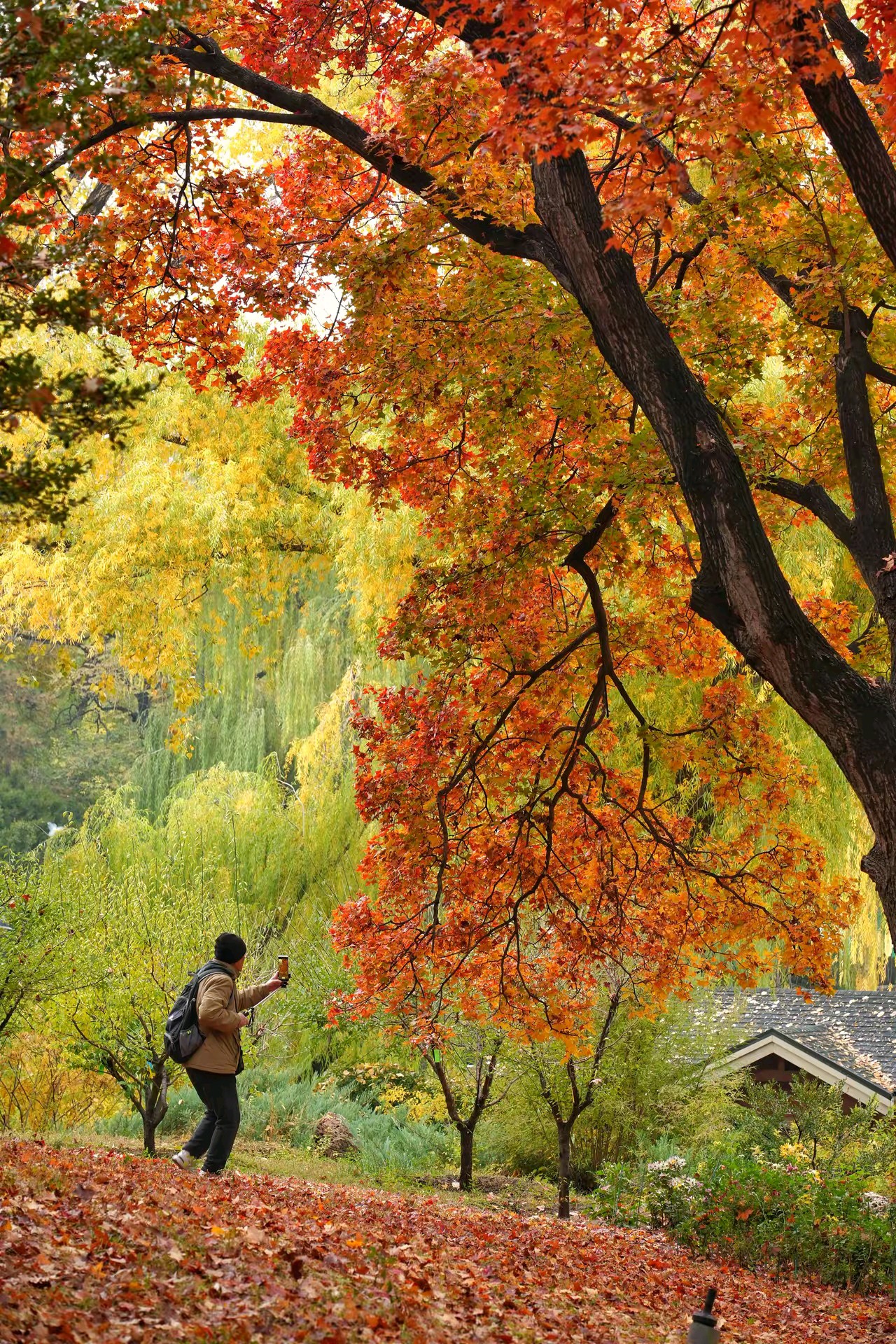 紫竹院五彩斑斓秋日限定,红叶与古建筑相遇,美得如诗如画。