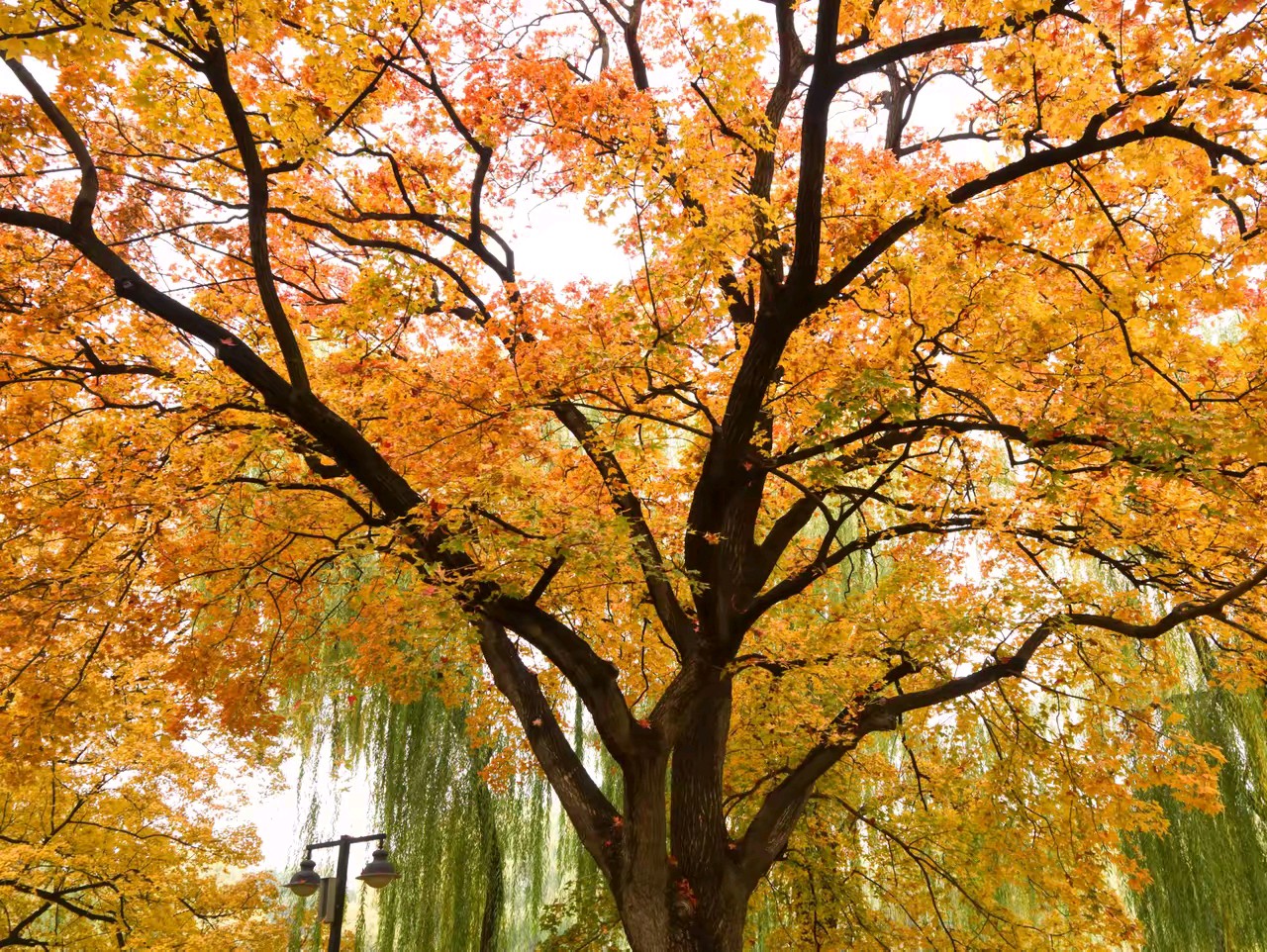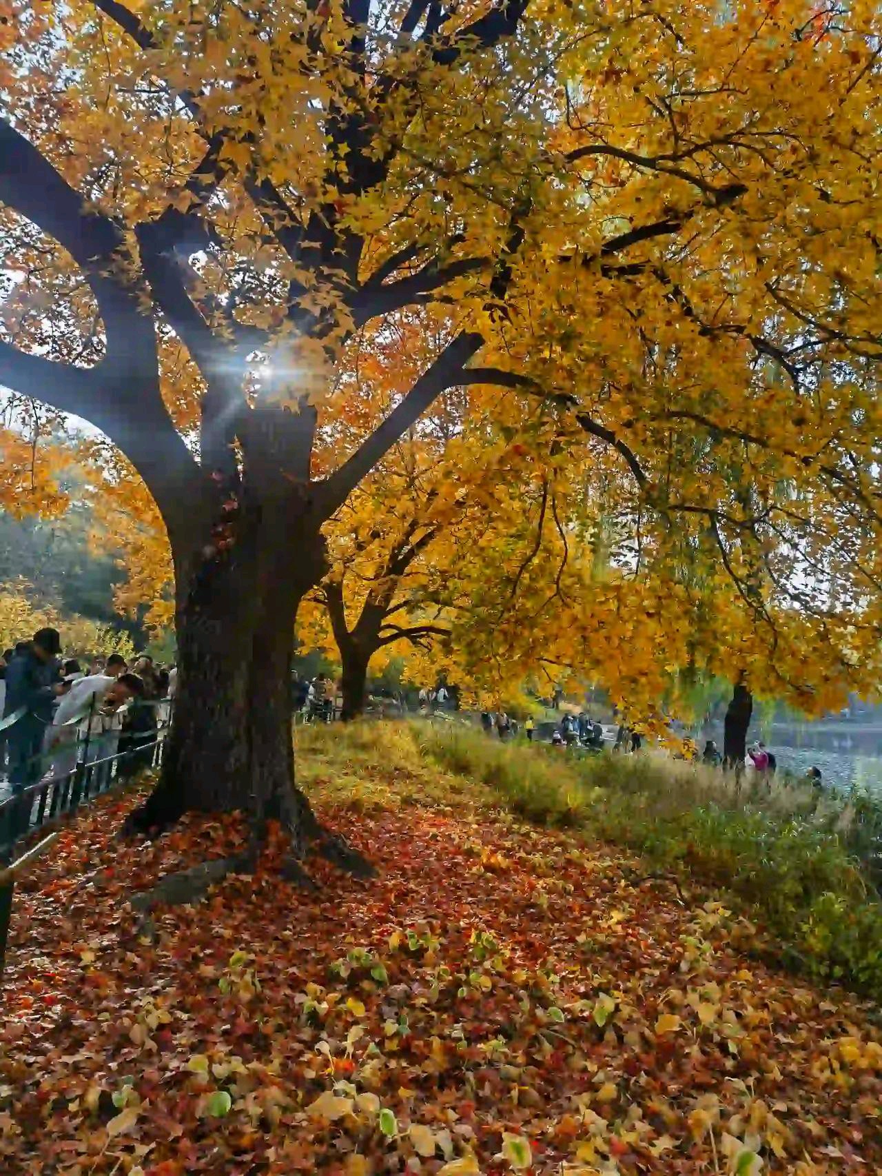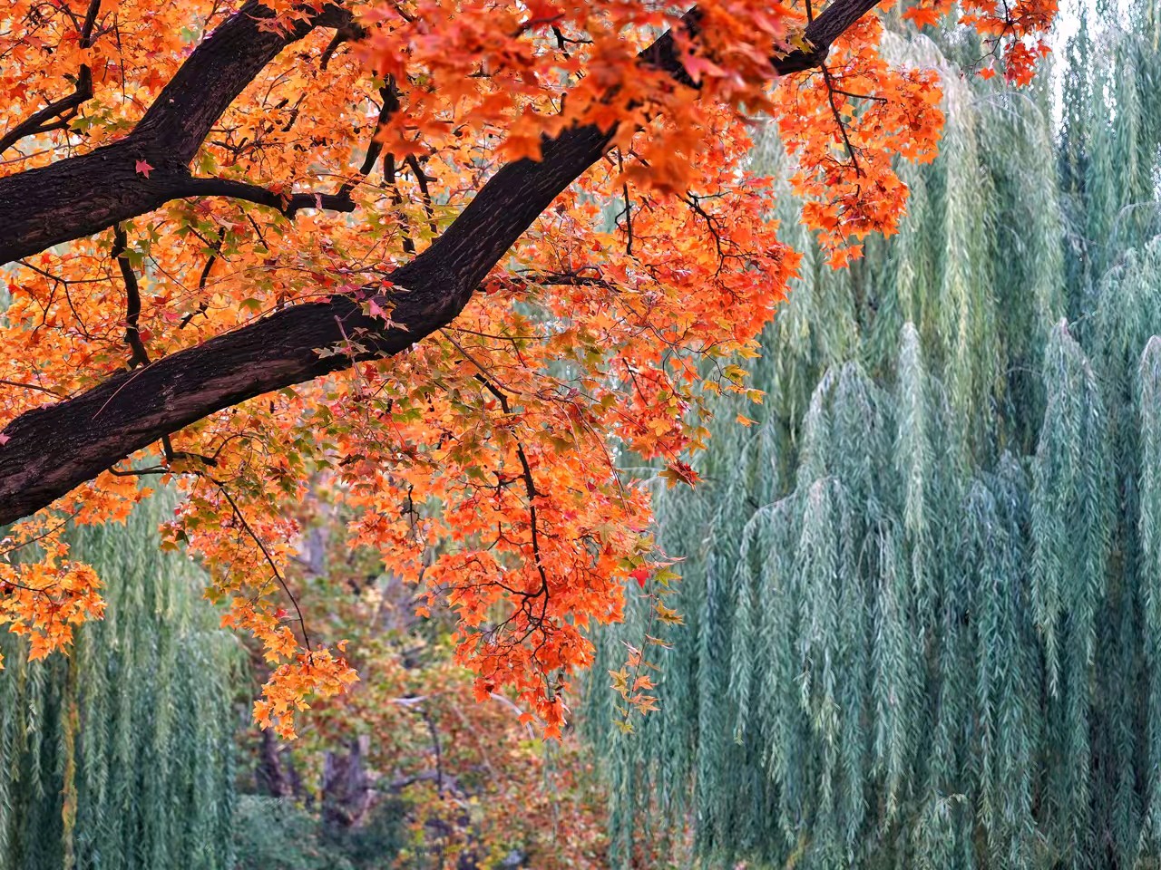 紫竹院五彩斑斓秋日限定,红叶与古建筑相遇,美得如诗如画。