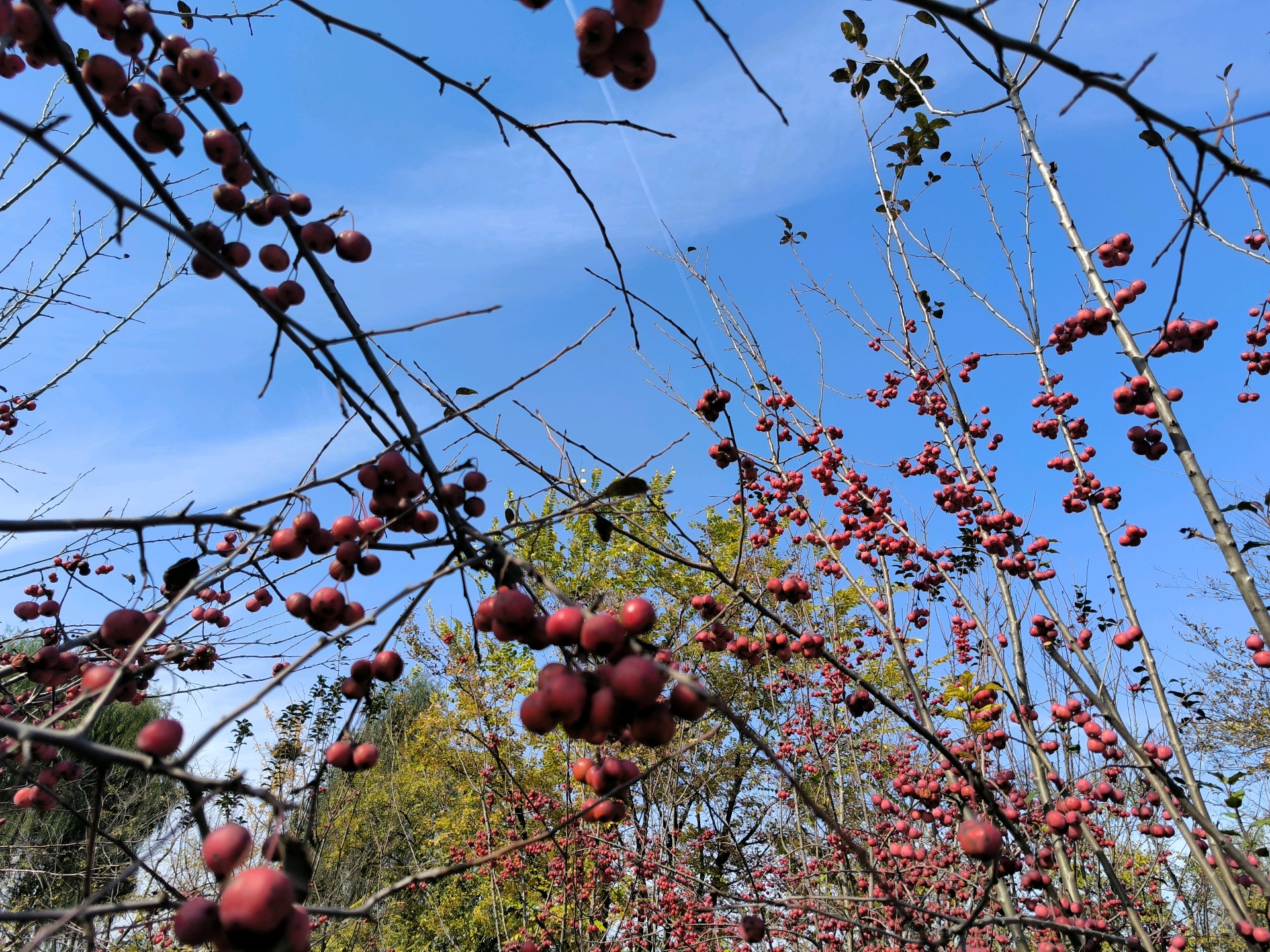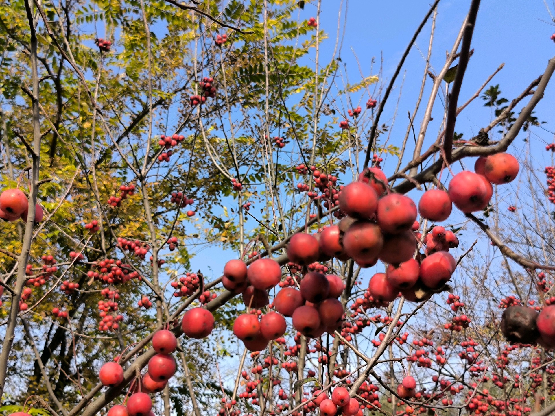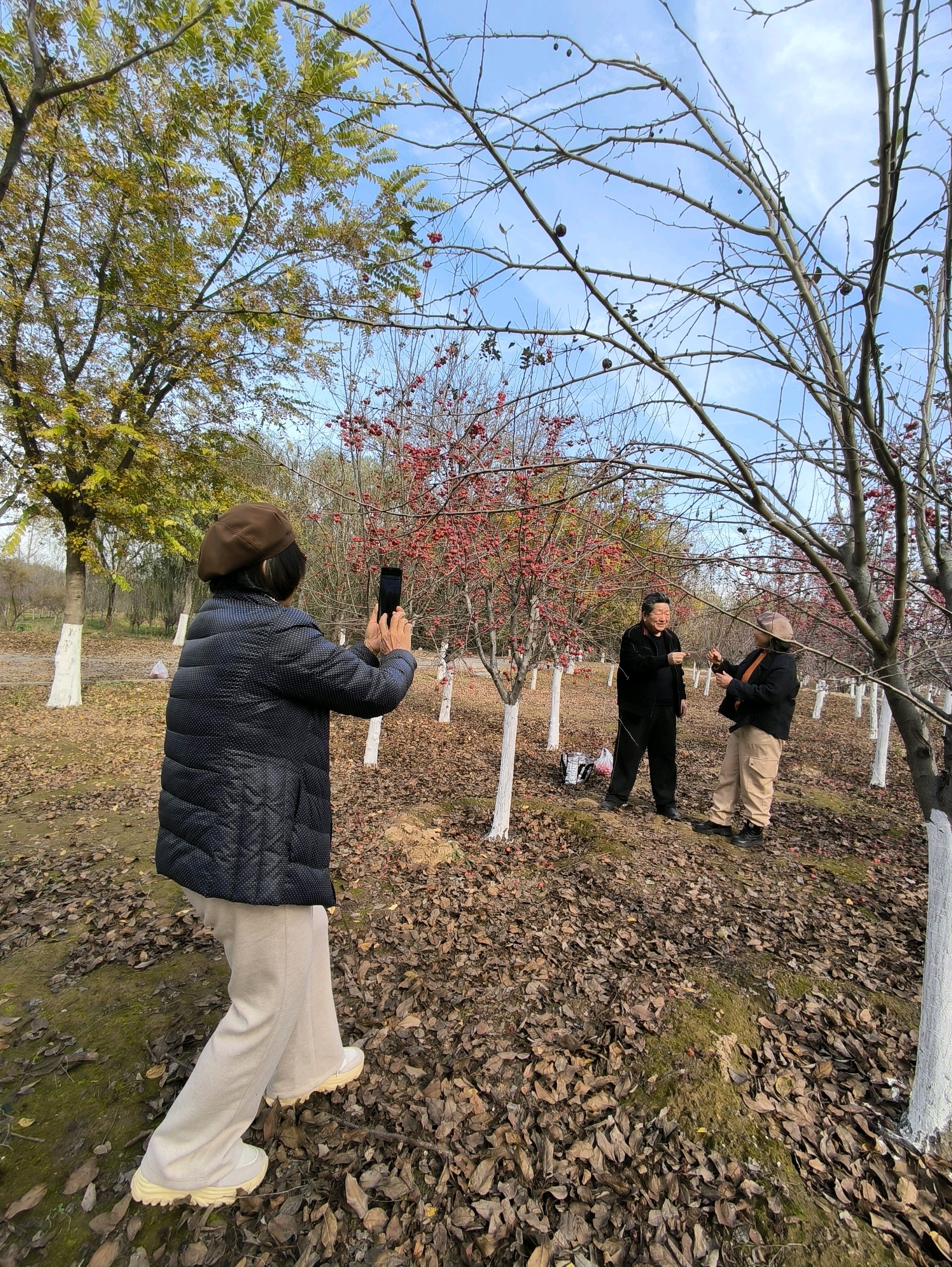 初冬的天暖融融的,一大早约着几位老友驶过黄河隧道,来到了鹊华龙湖湿地公园。大片的海棠树上结满了红色果实,在蓝天下显得格外诱人。我们的欢歌笑语盈满林间,阳光透过树叶洒下斑驳的影子,为这片景色增添了生机与活力。