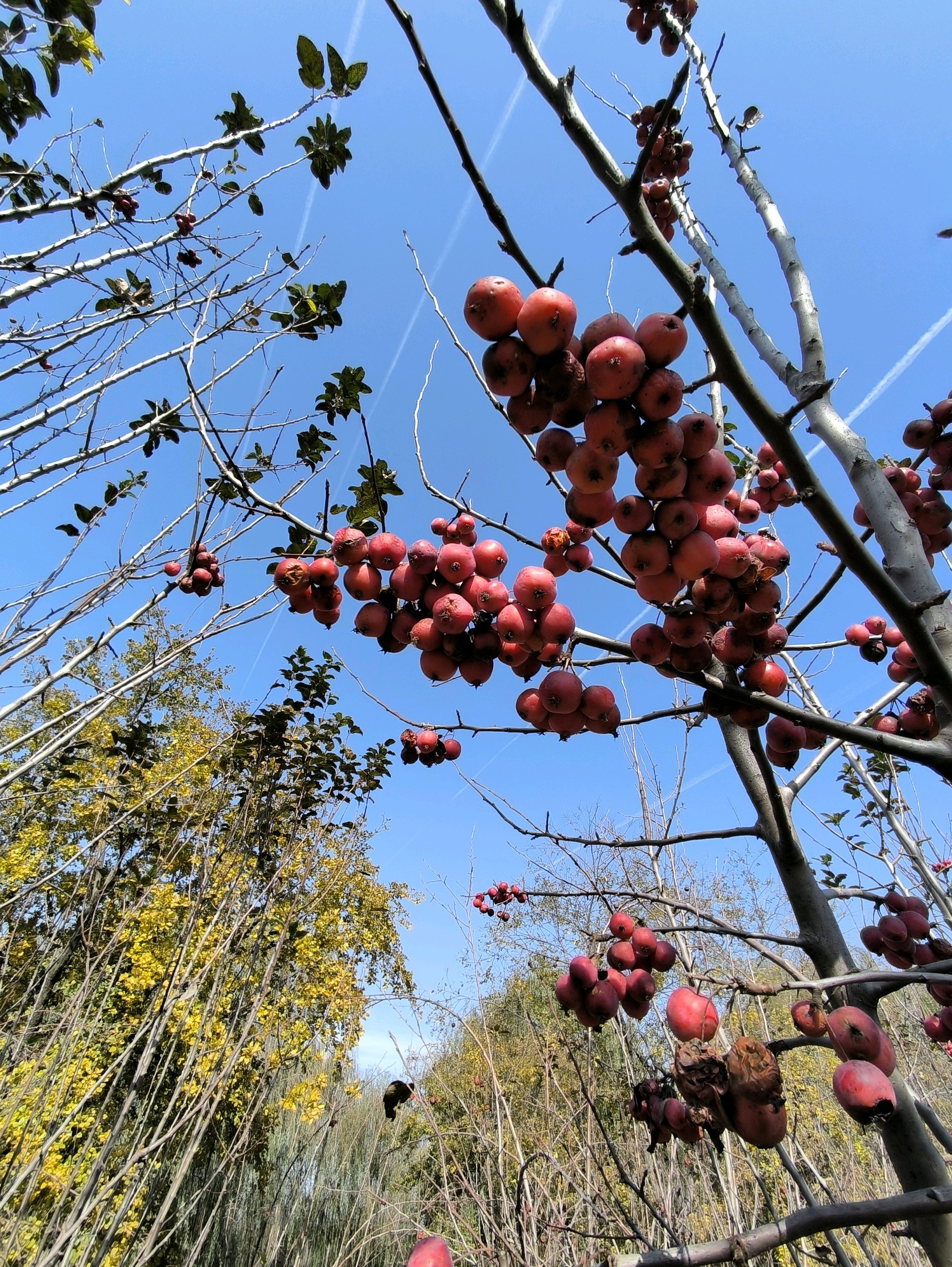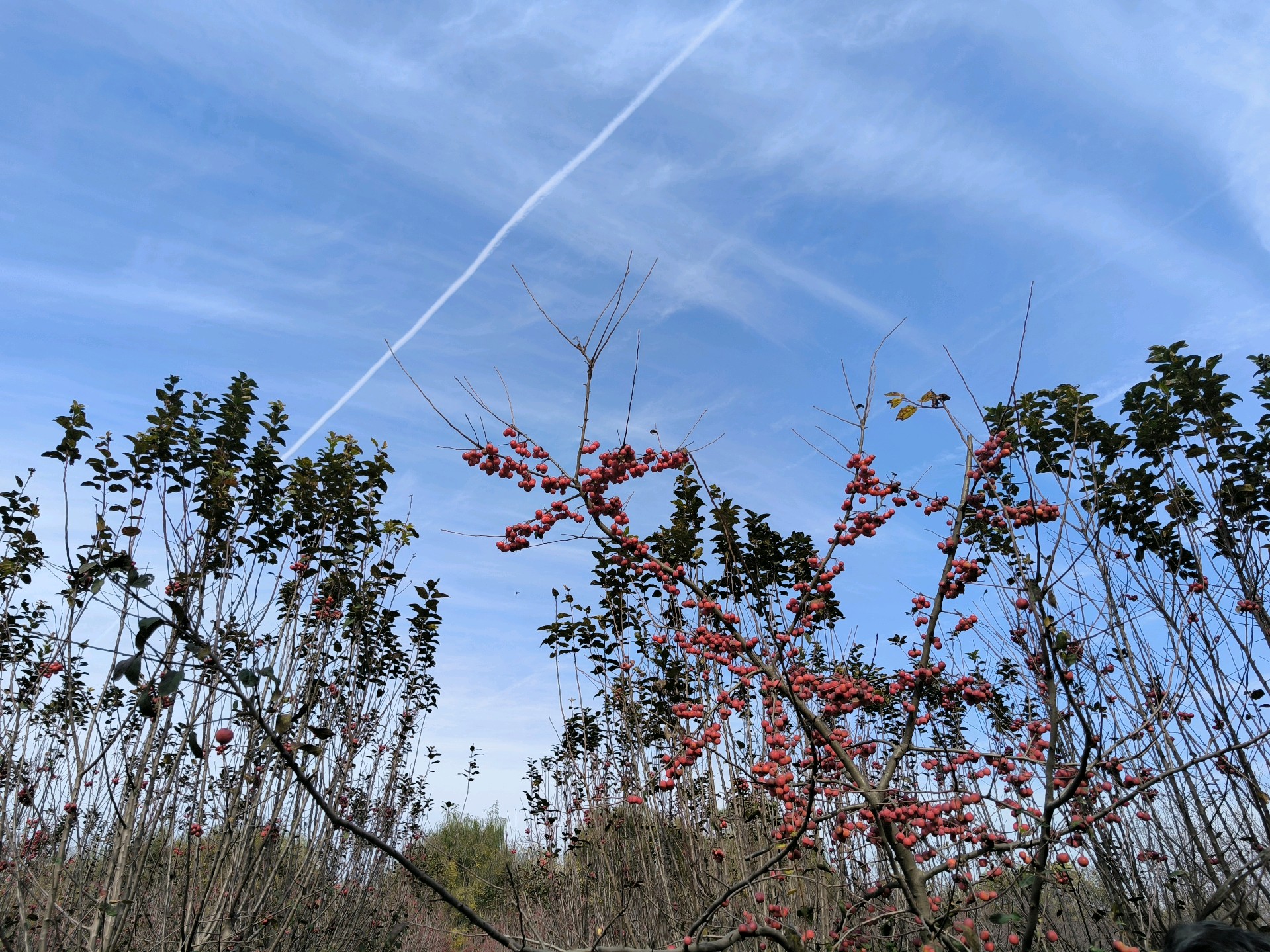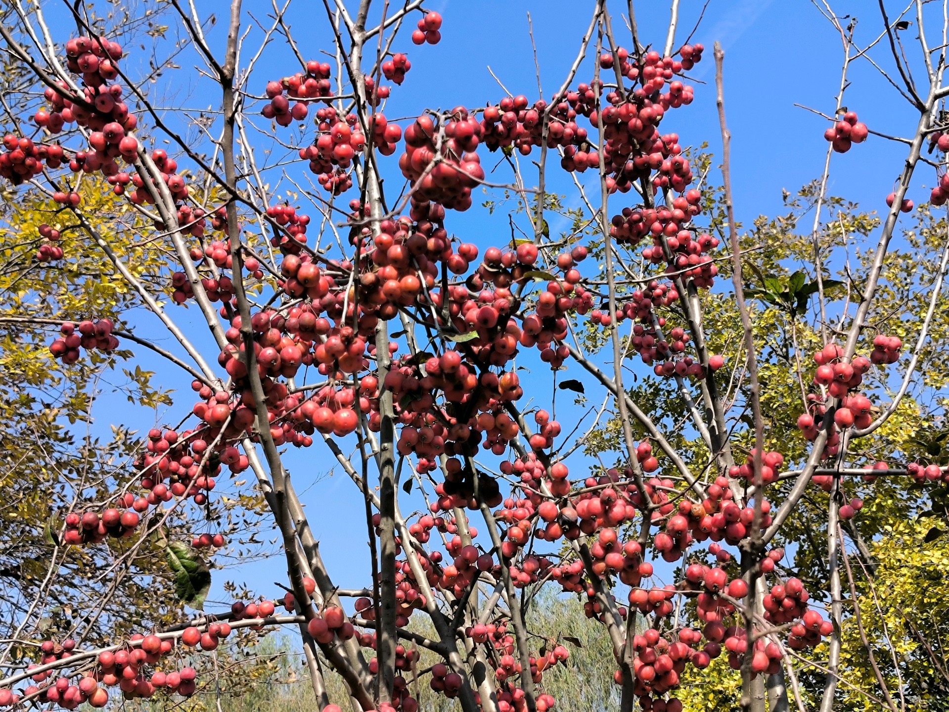 初冬的天暖融融的,一大早约着几位老友驶过黄河隧道,来到了鹊华龙湖湿地公园。大片的海棠树上结满了红色果实,在蓝天下显得格外诱人。我们的欢歌笑语盈满林间,阳光透过树叶洒下斑驳的影子,为这片景色增添了生机与活力。