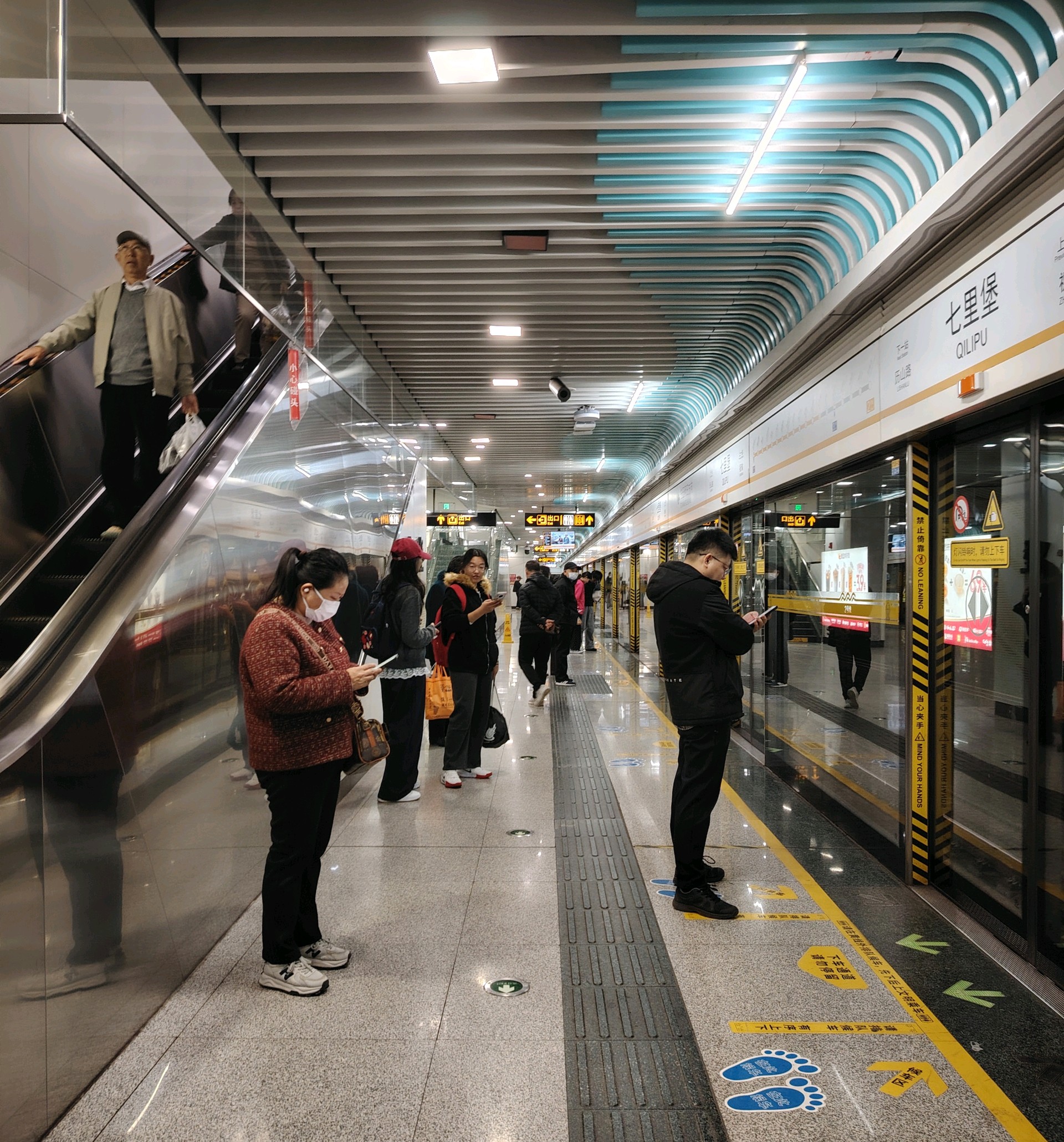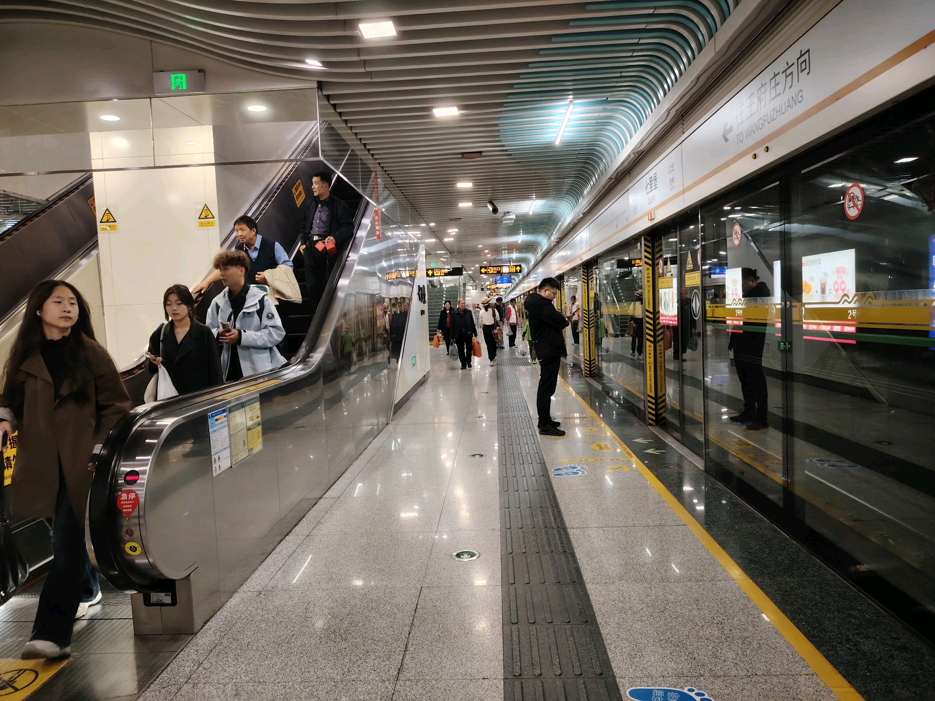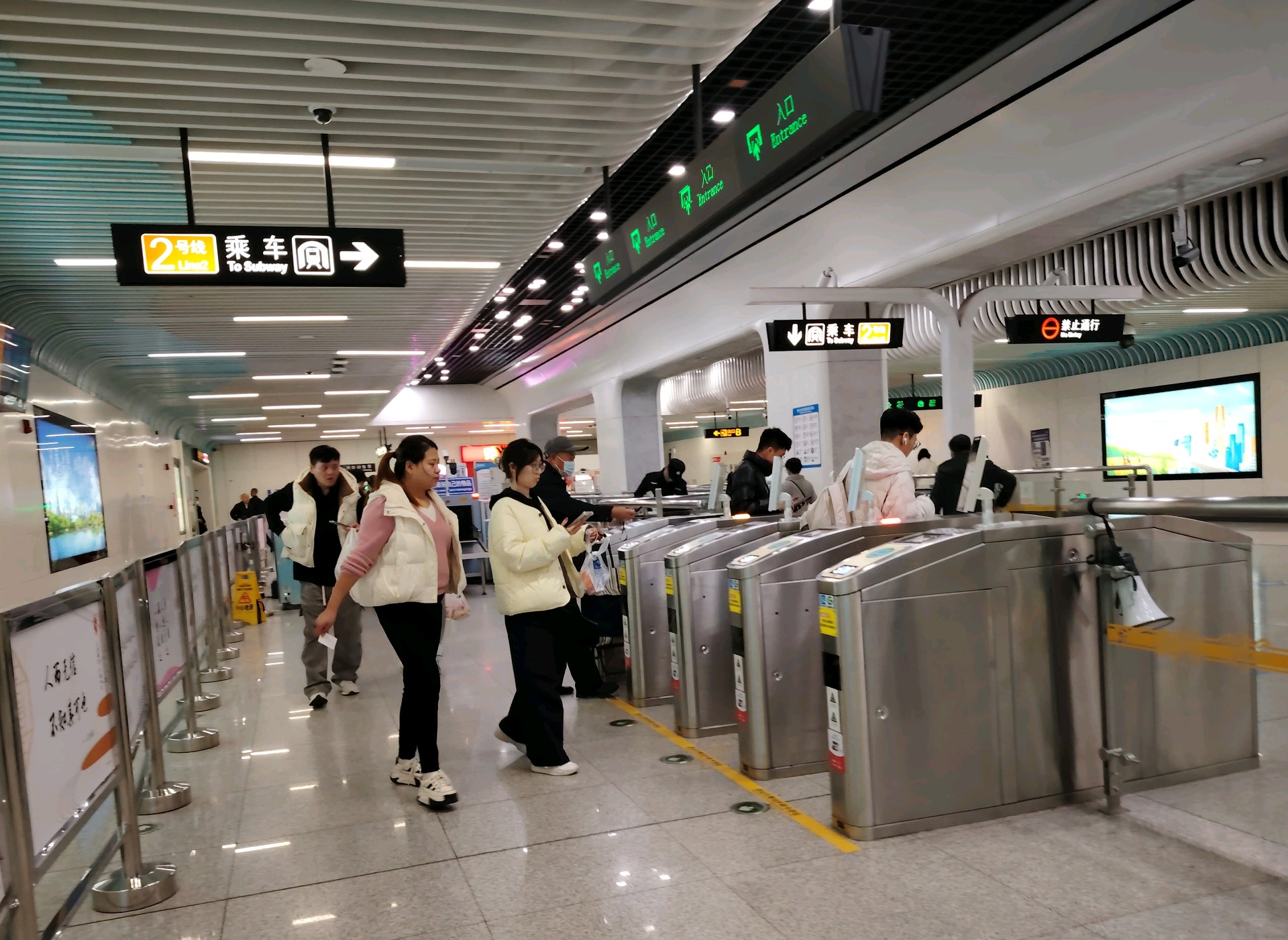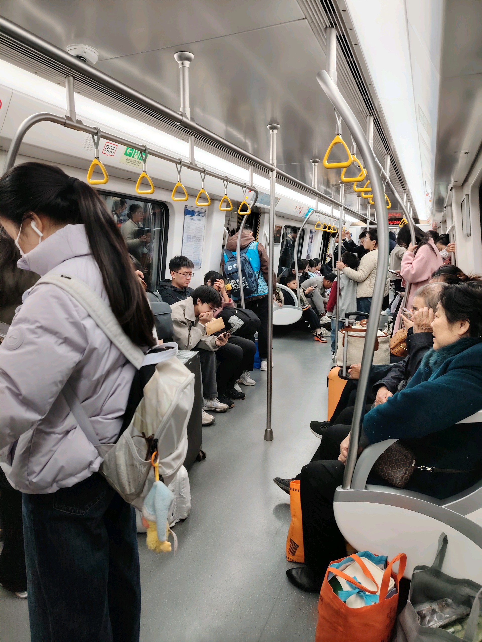 下午乘地铁2号线出行,周末人真多。老年人坐地铁买菜购物、带孩子去公园,高效率的地铁节省时间,成了大家外出首选。