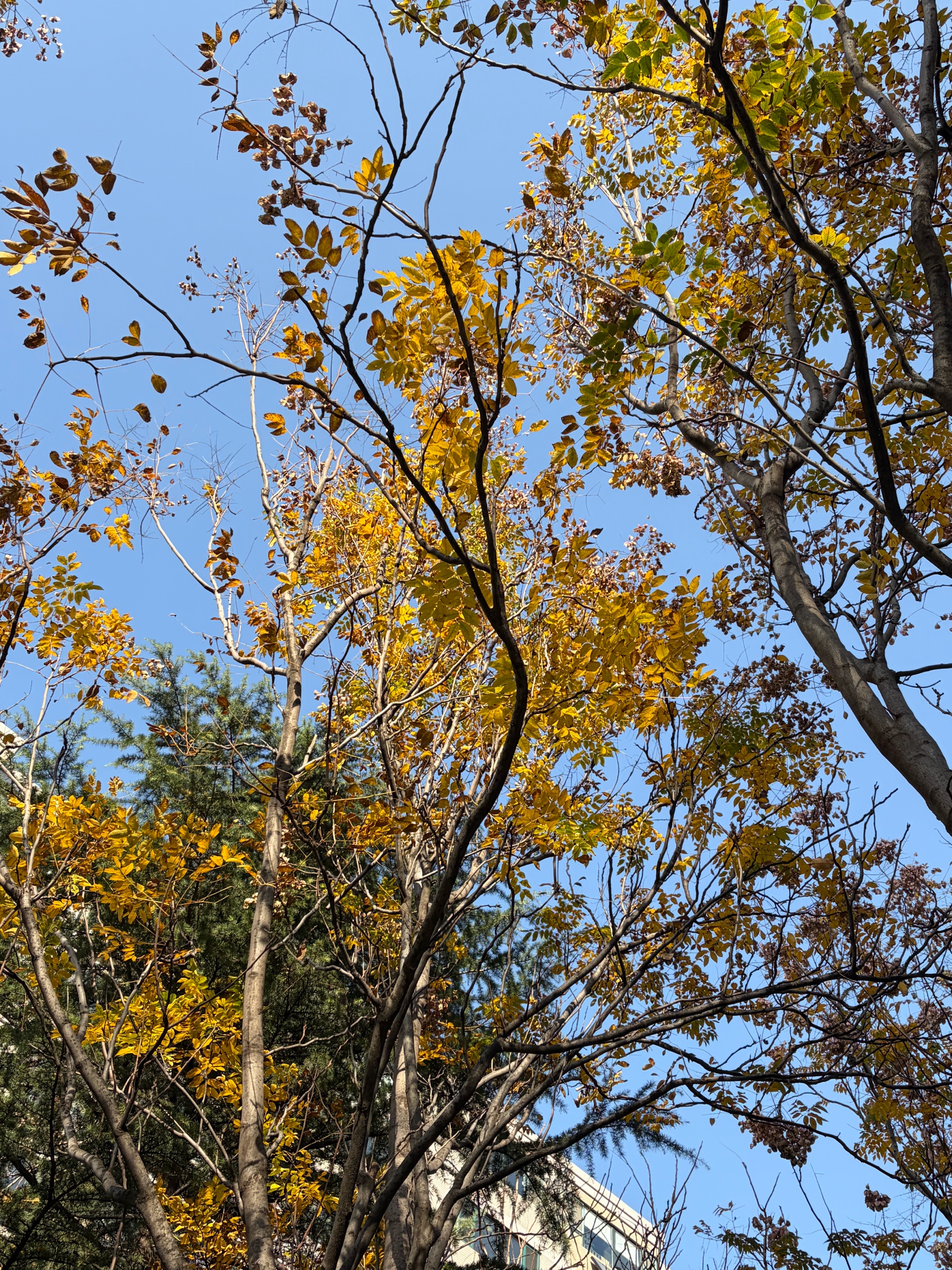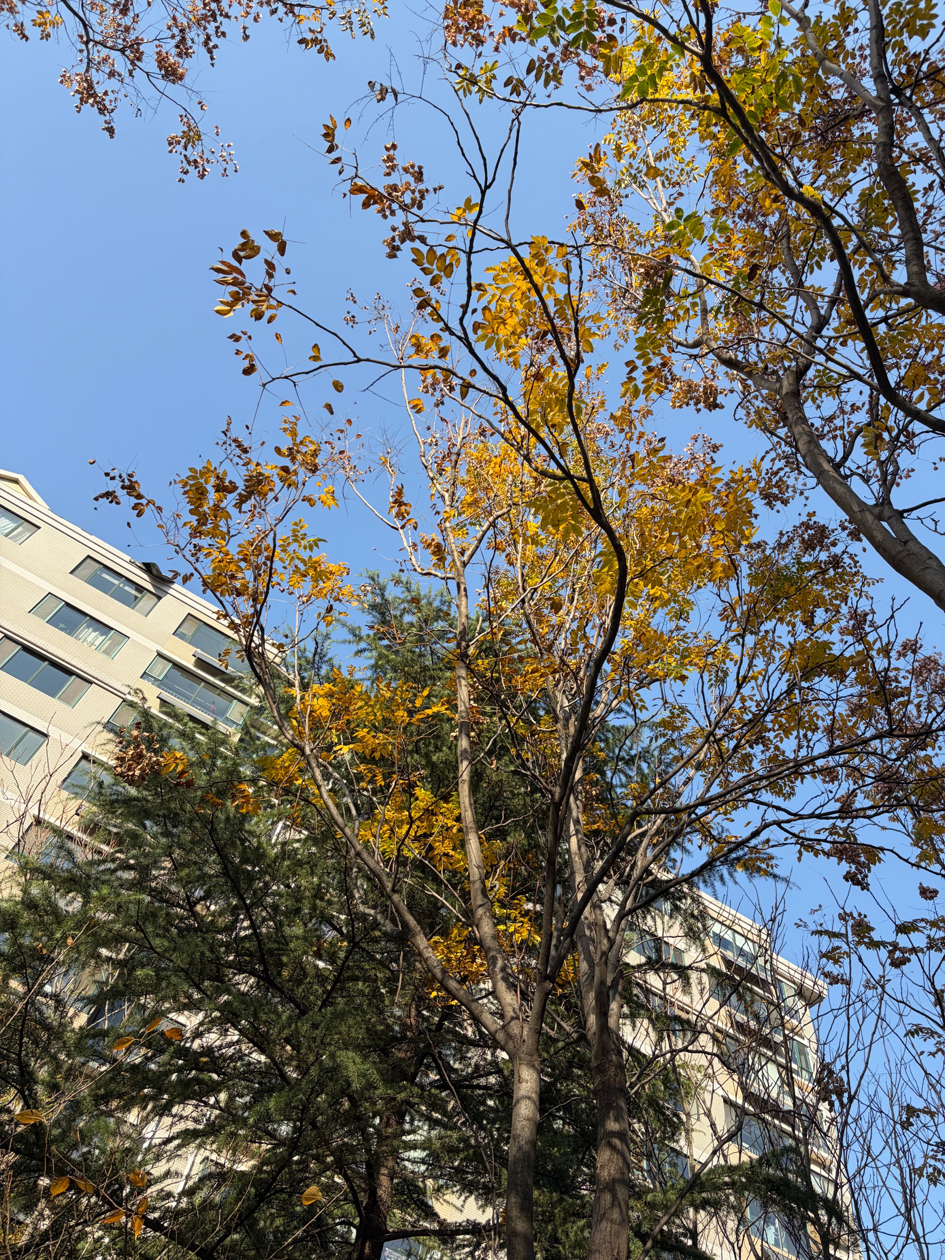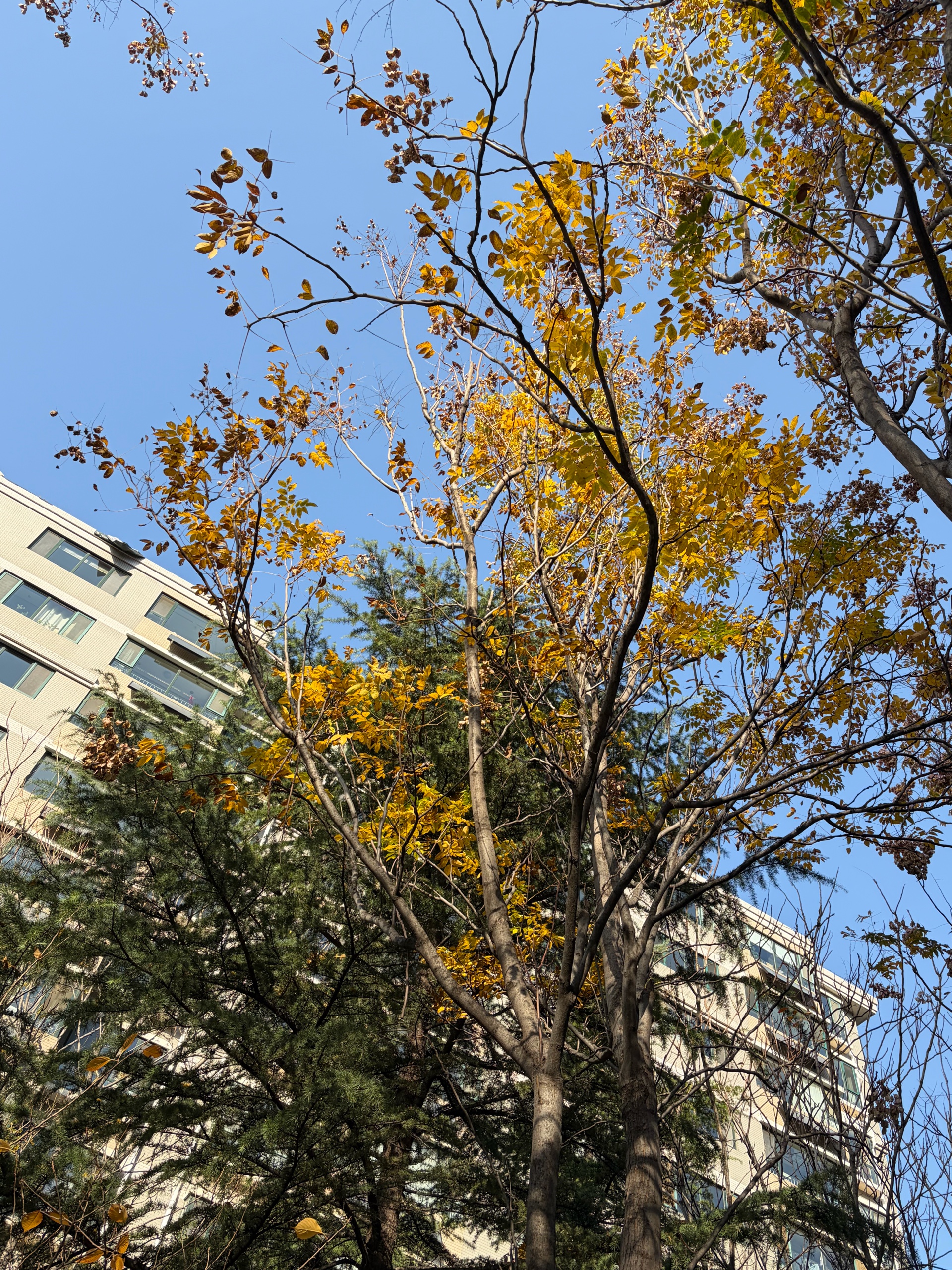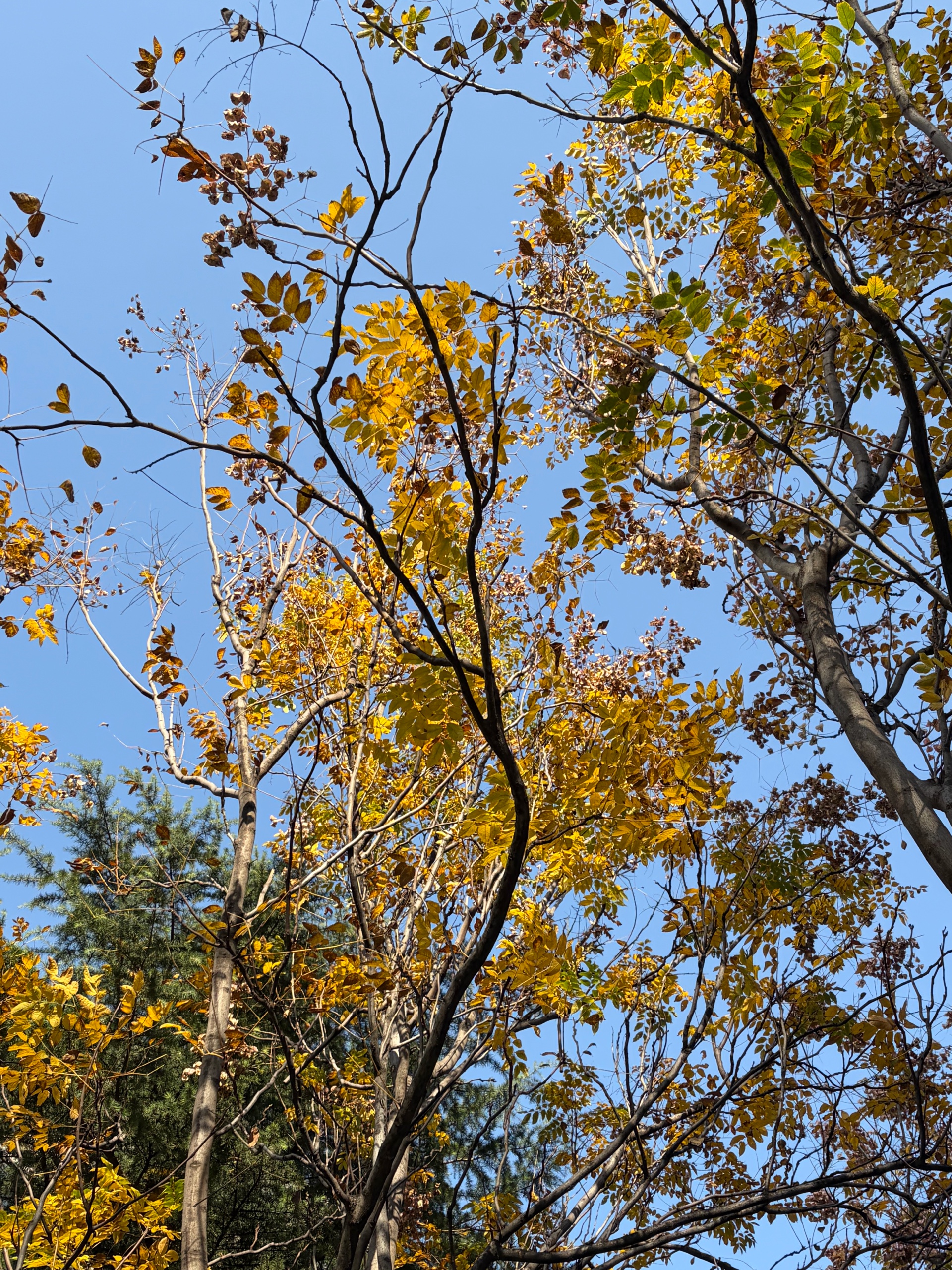 阳光温柔地洒下,地上铺满金黄与棕红,冬日温婉的季节的画卷渐次展开。北风起 树上的叶片日渐稀少 晒太阳的老人孩子们穿上了厚厚的棉衣