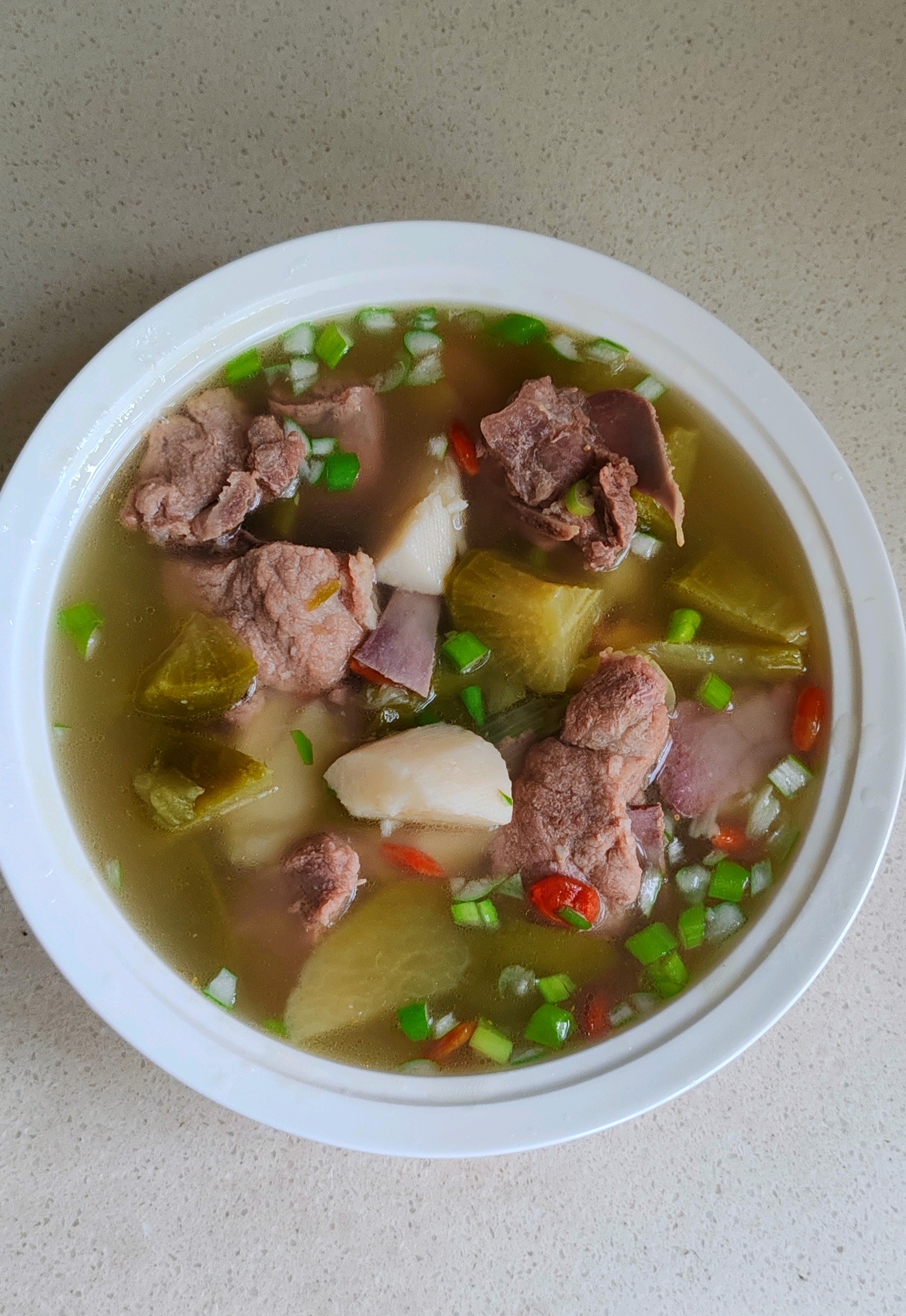 分享一道排骨炖青萝卜和山药汤,营养丰富、味道鲜美,清淡又好喝,具有滋补暖身、润燥开胃的功效,尤其适合冬季食用。
