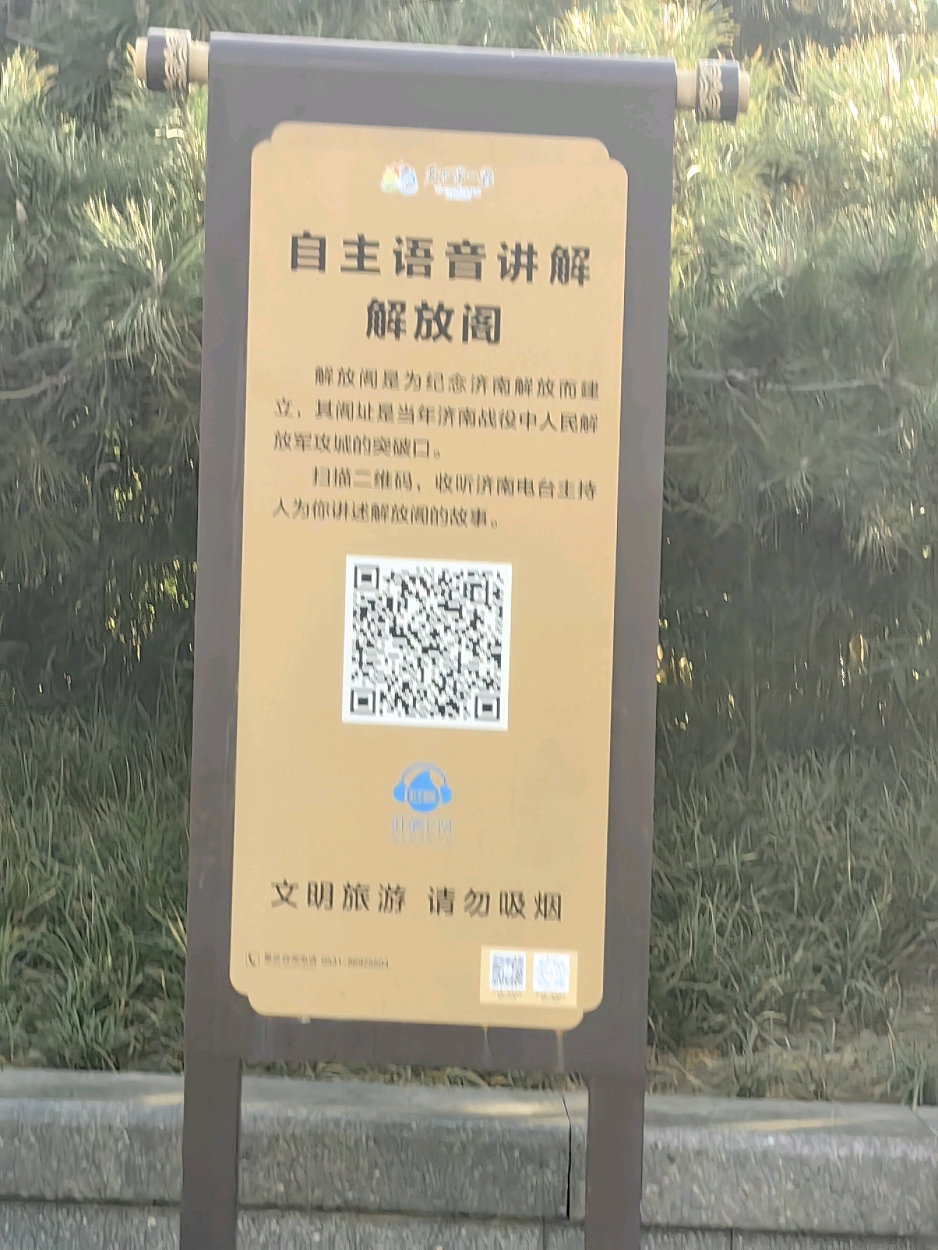 周日,天气降温了,带着宝宝去解放阁感受红色教育,解放阁整修,不对外开放,扫码能听有关解放阁的讲解,挺好,护城河转一圈,亲近泉水。
