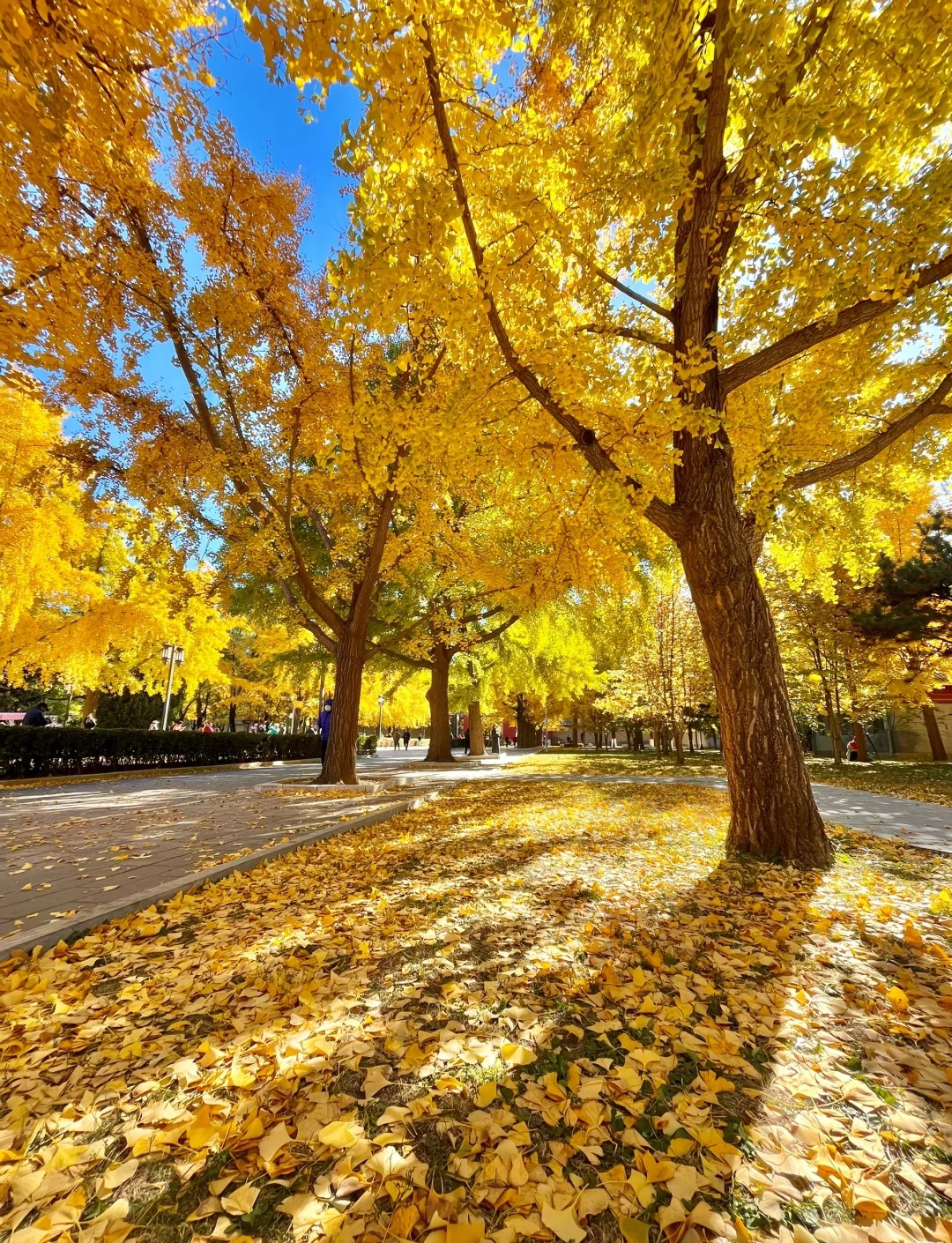 游客纷纷被如诗如画的美景所陶醉,这是北京最短暂的童话,银杏叶的金黄与飘落,营造出秋日限定的梦幻氛围。