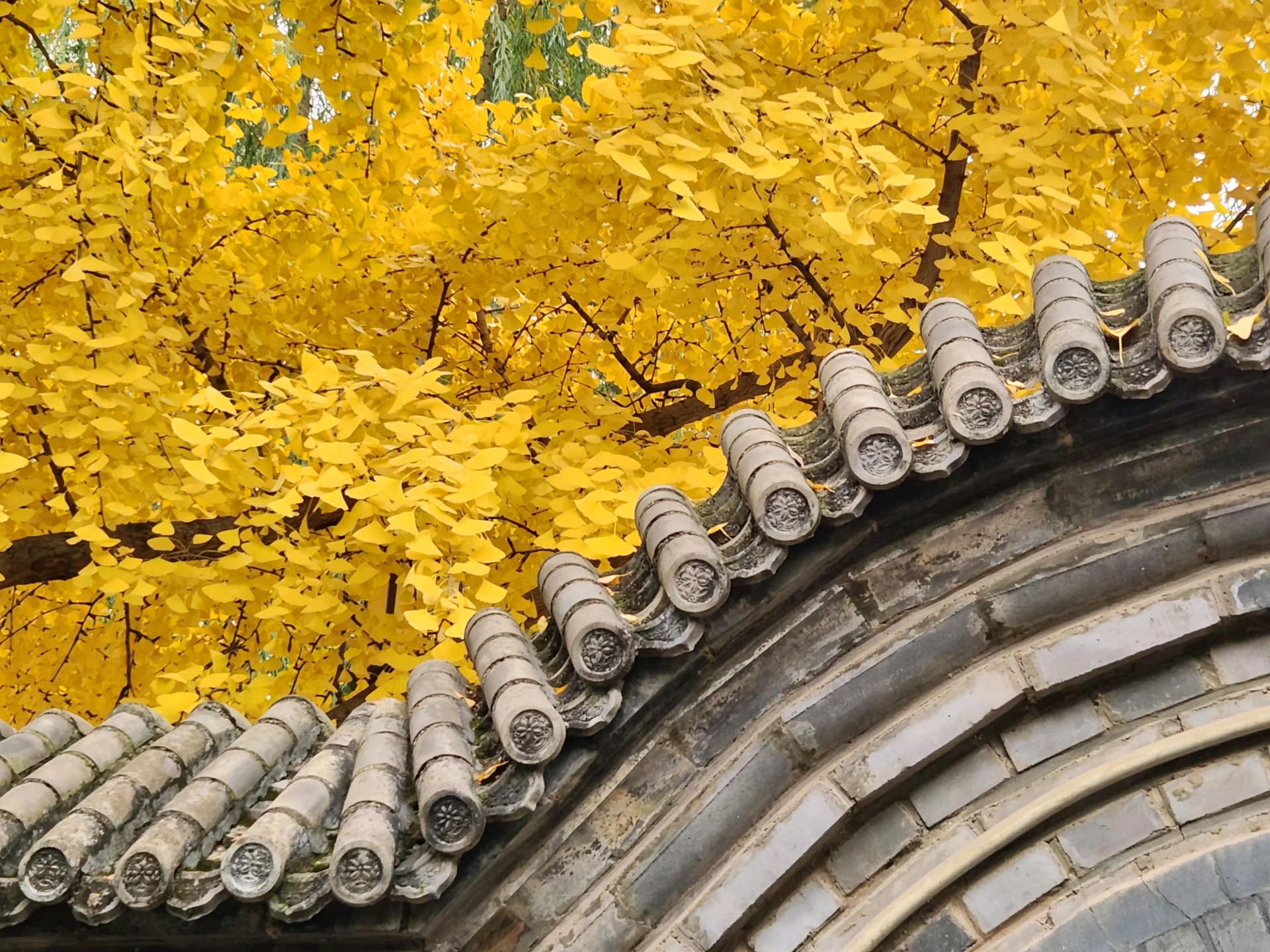 风起时万千扇形的叶片翩翩飞舞,落叶缤纷,好象金色的银杏雨,尤为壮观。这是秋天最慷慨的礼物,银杏叶的金黄与落叶交织,定格秋日限定美景。