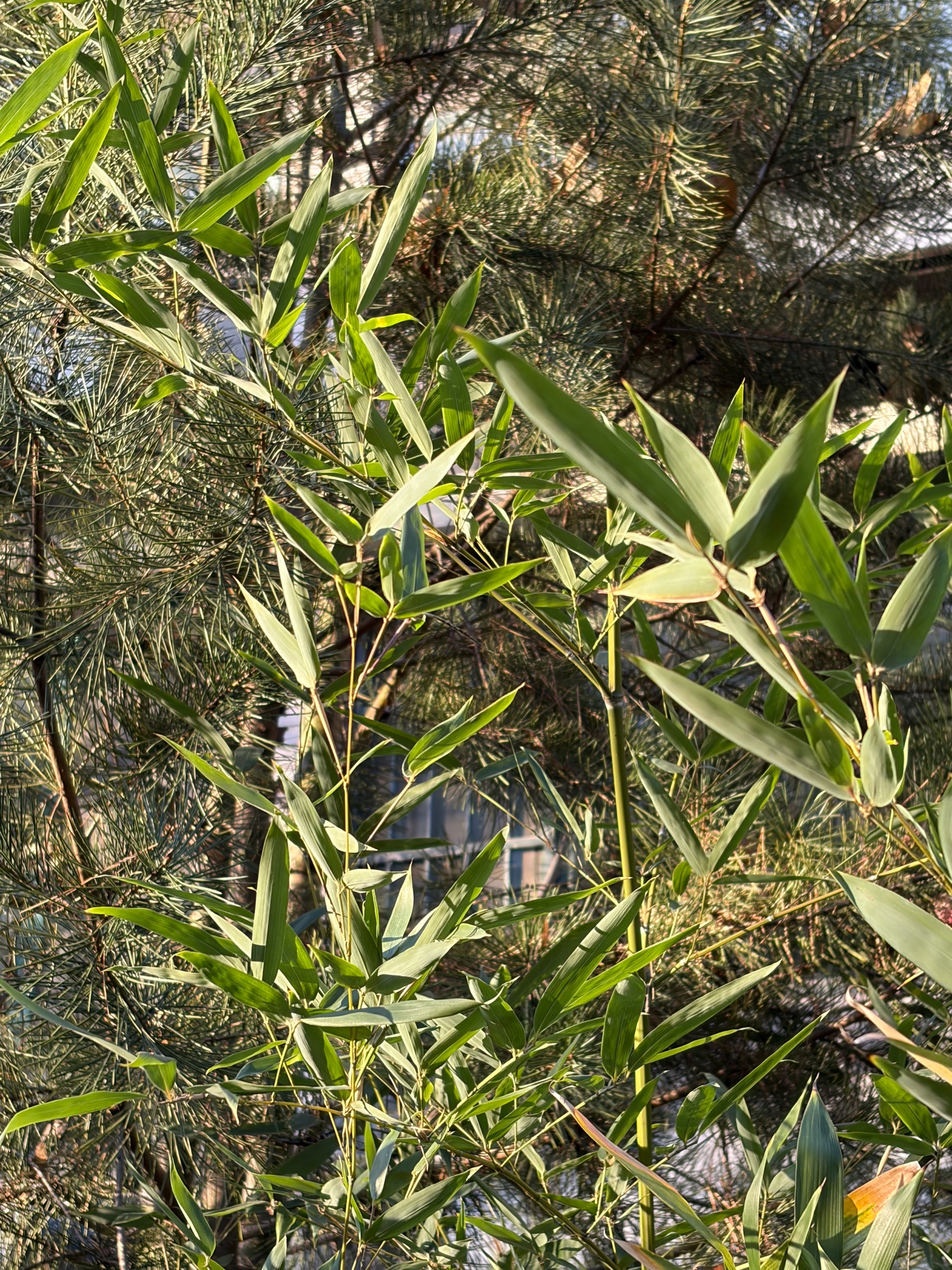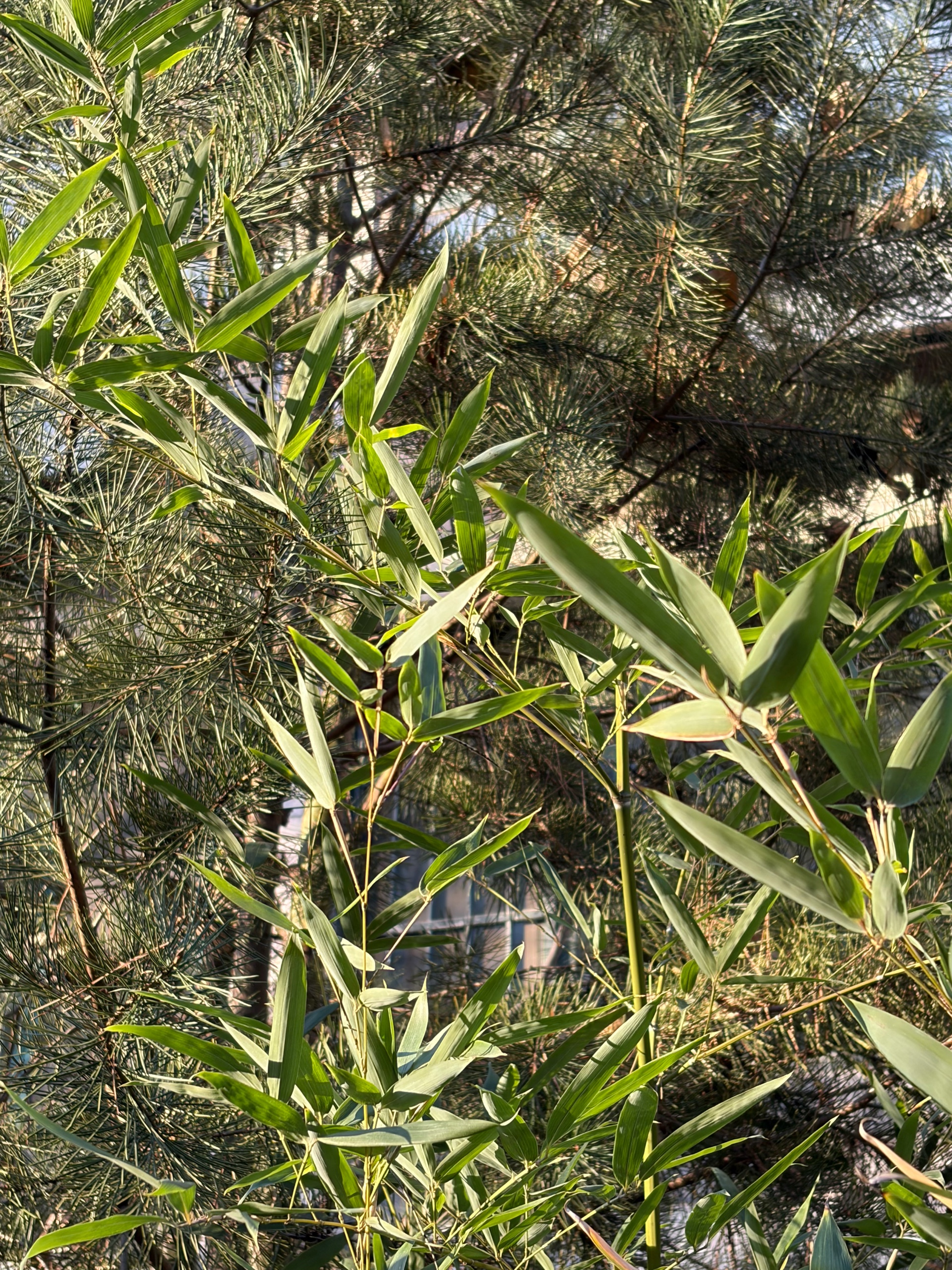 阳光下的绿意,是大自然的诗意。一片翠竹,几缕松针,构成了一幅生机勃勃的画面。今天虽有些冷,阳光照在身上还是暖融融的。与松树为伴的翠竹,在暖阳下坚守着自己的翠绿。