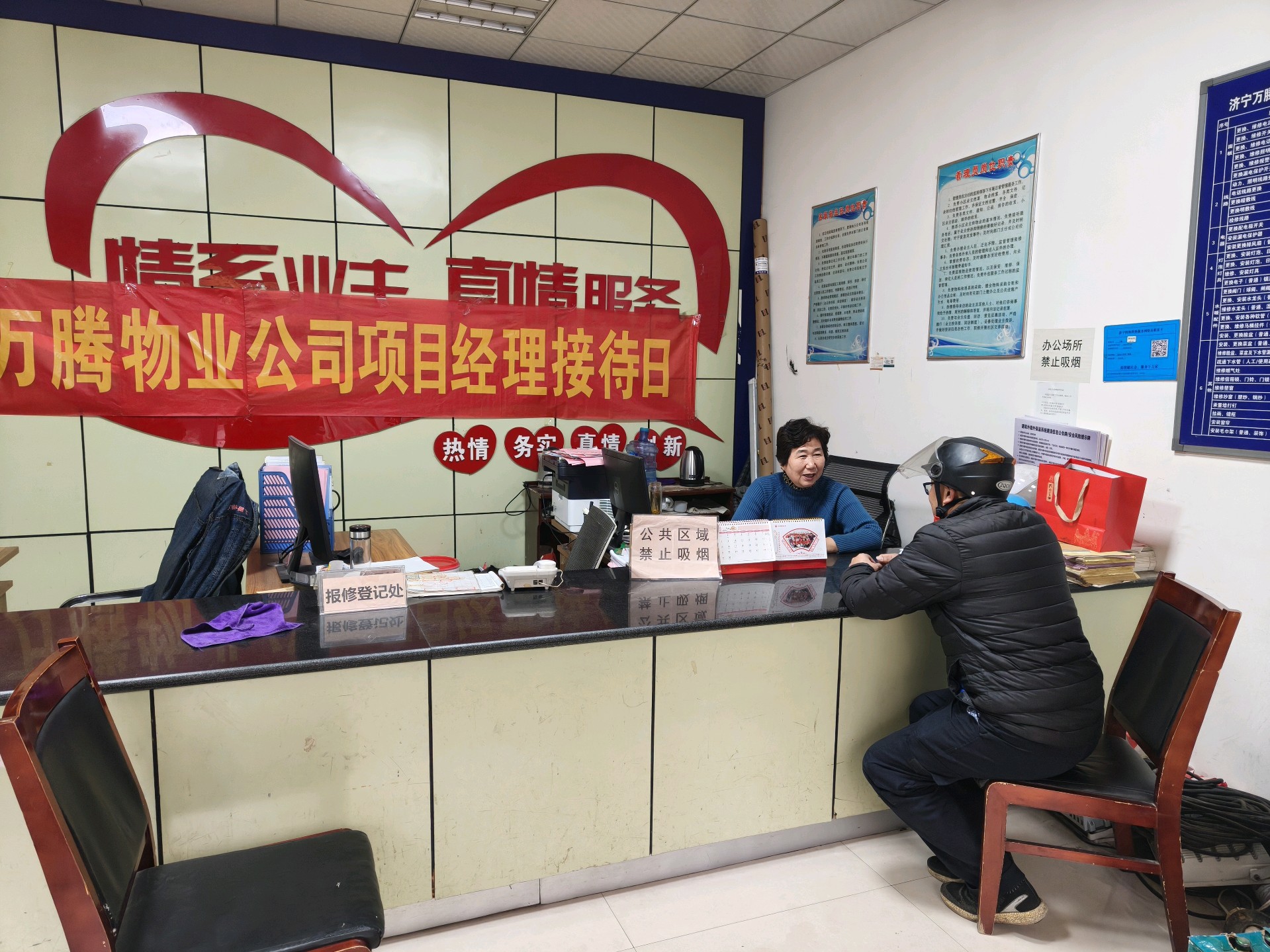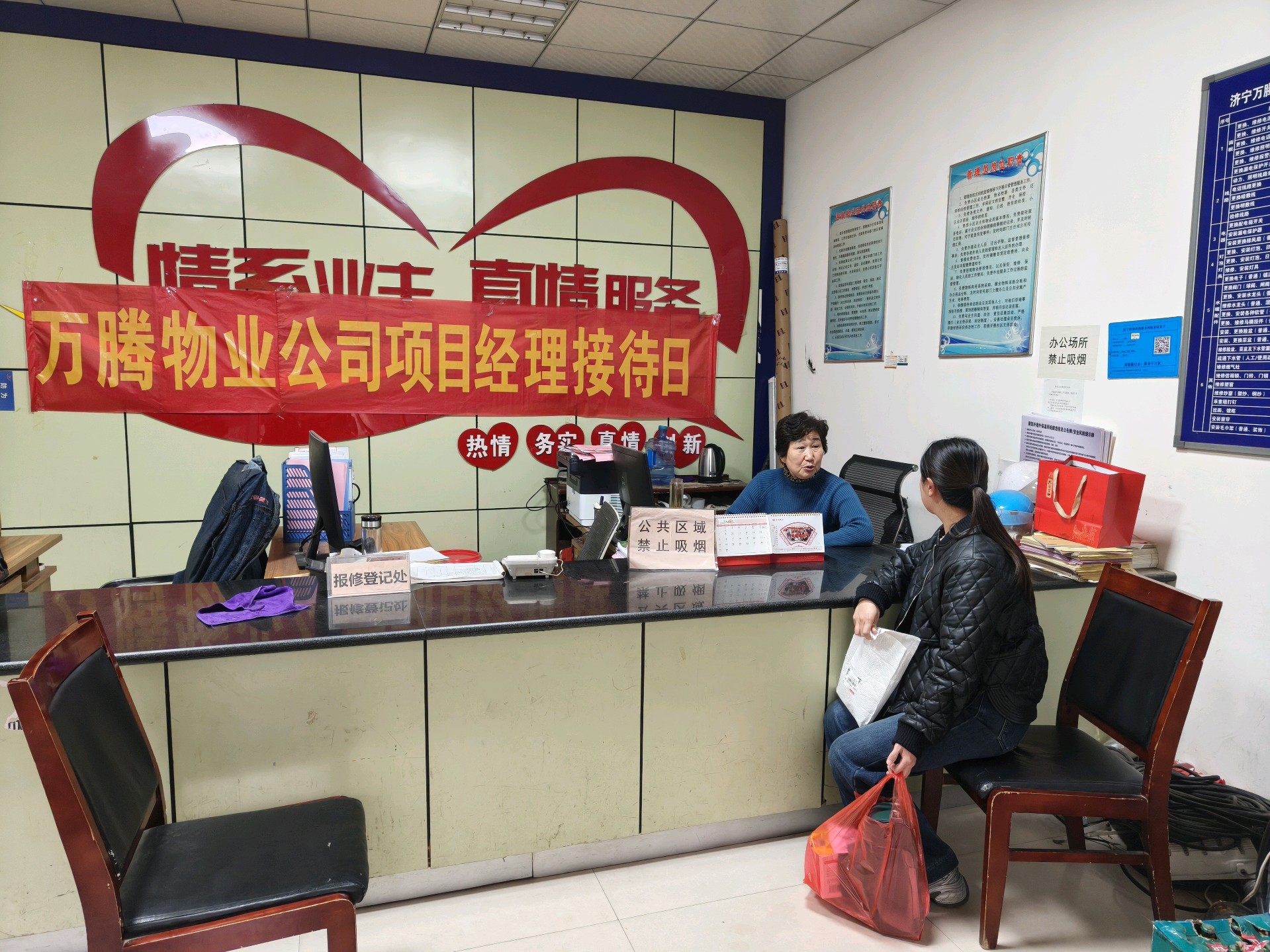 活动现场,物业公司项目经理及工作人员提前就位,耐心接待每一位前来反馈问题的居民。居民们围绕小区环境卫生、设施维护、停车管理、绿化养护等日常居住相关问题畅所欲言,既有意见建议,也有实际需求。工作人员认真倾听、详细记录,对居民提出的合理诉求当场回应解决方案,对暂未解决的问题逐一登记,明确整改时限和责任人,承诺后续会及时反馈进展。