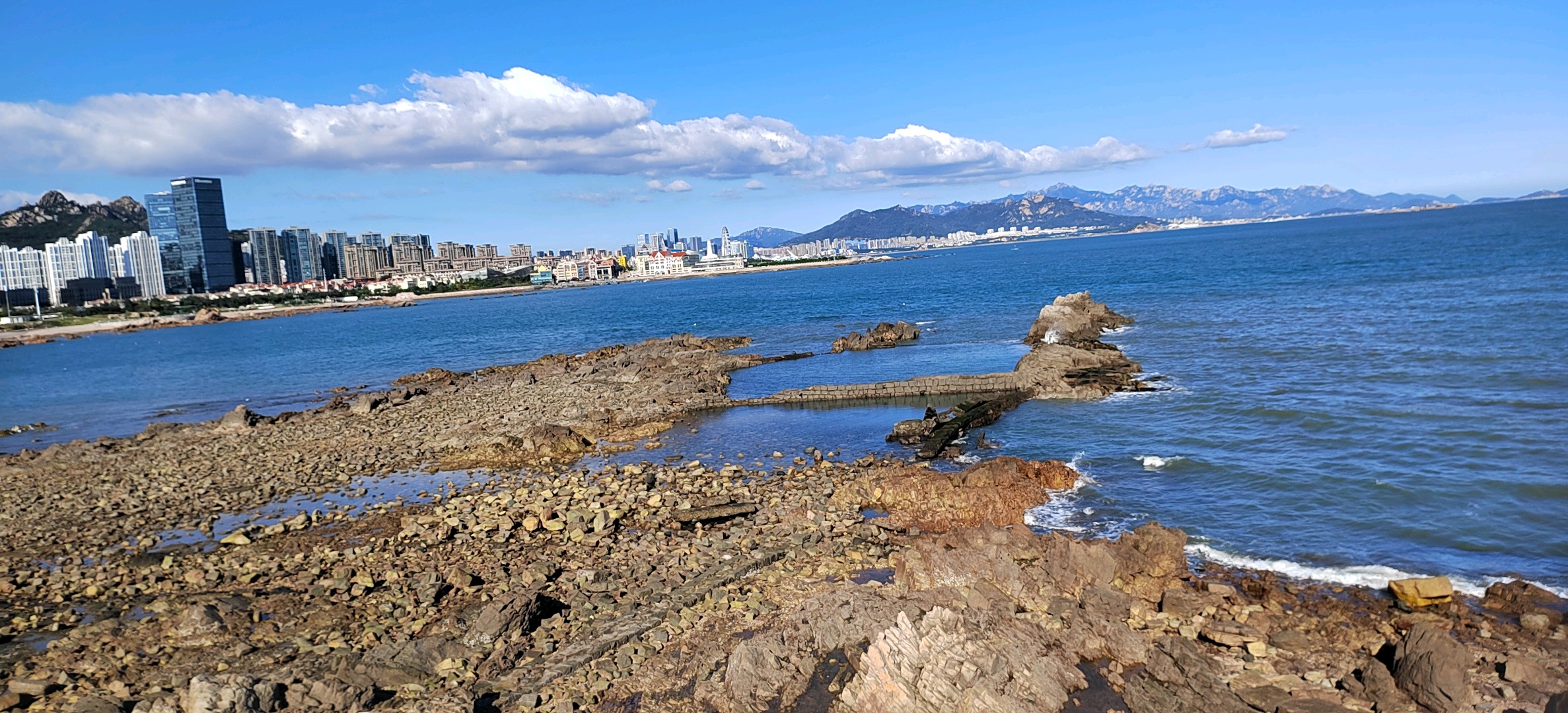 #天气情报站#小麦岛景区是位于青岛市崂山区的一座离岸岛屿,面积0.157平方公里,距陆地仅150米,通过桥梁与城区相连。该岛以360度海景、原始礁石地貌和网红打卡点著称,是青岛热门生态旅游目的地。秋雨过后,阳光明媚,睛空万里,白云悠悠,小麦岛景区风光旖旎,非常迷人。