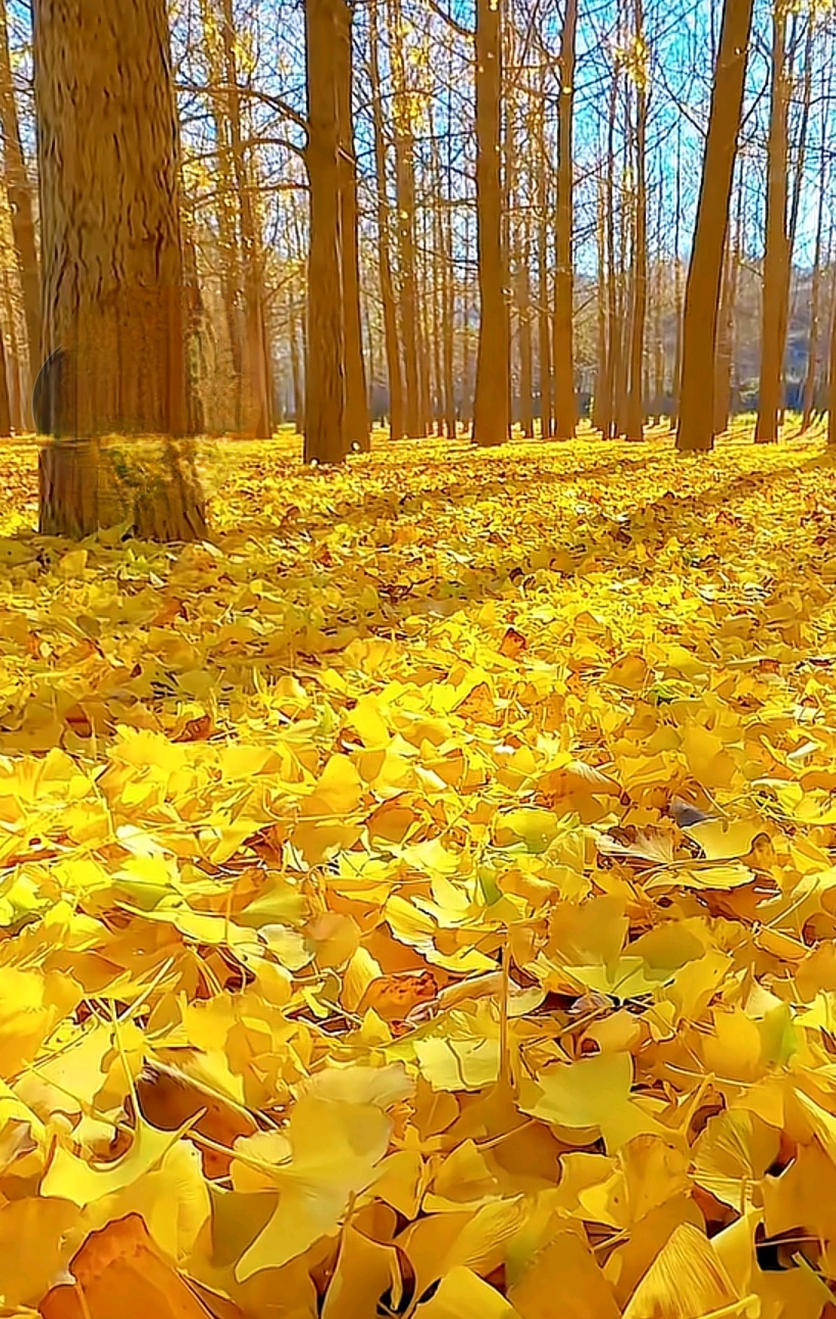 每次来到沾化徒骇河公园银杏树林心情就舒畅!每次都让这金灿灿的景色吸引,迟迟不想离开!感觉这景色是那么新鲜呼吸都顺畅了!