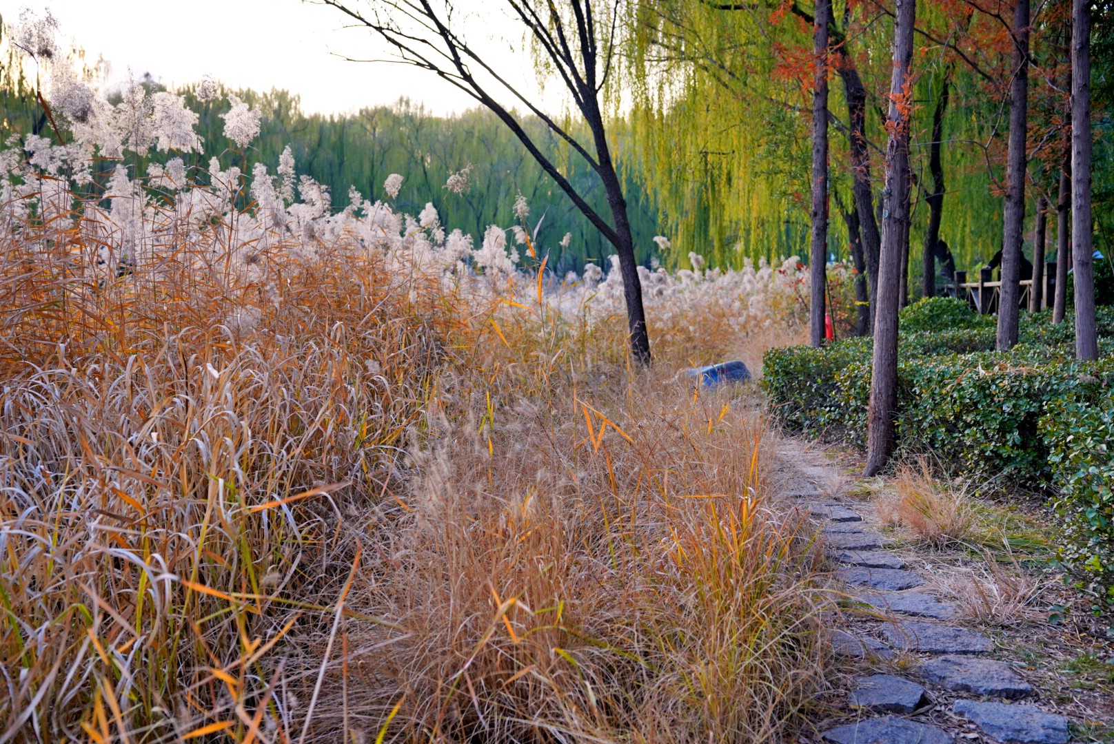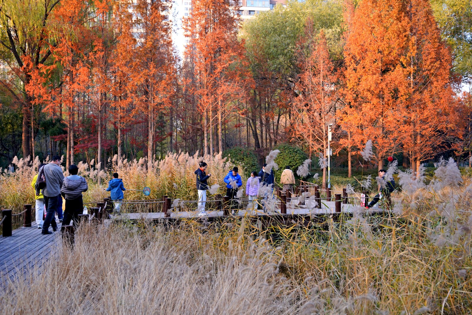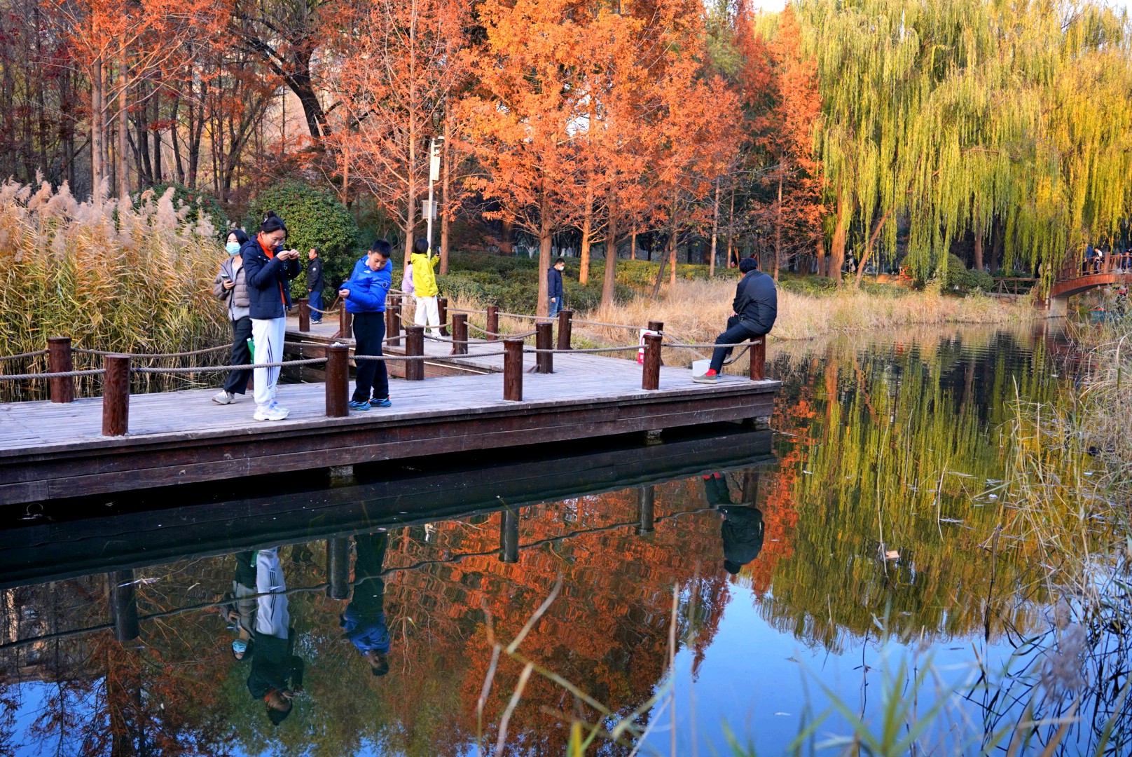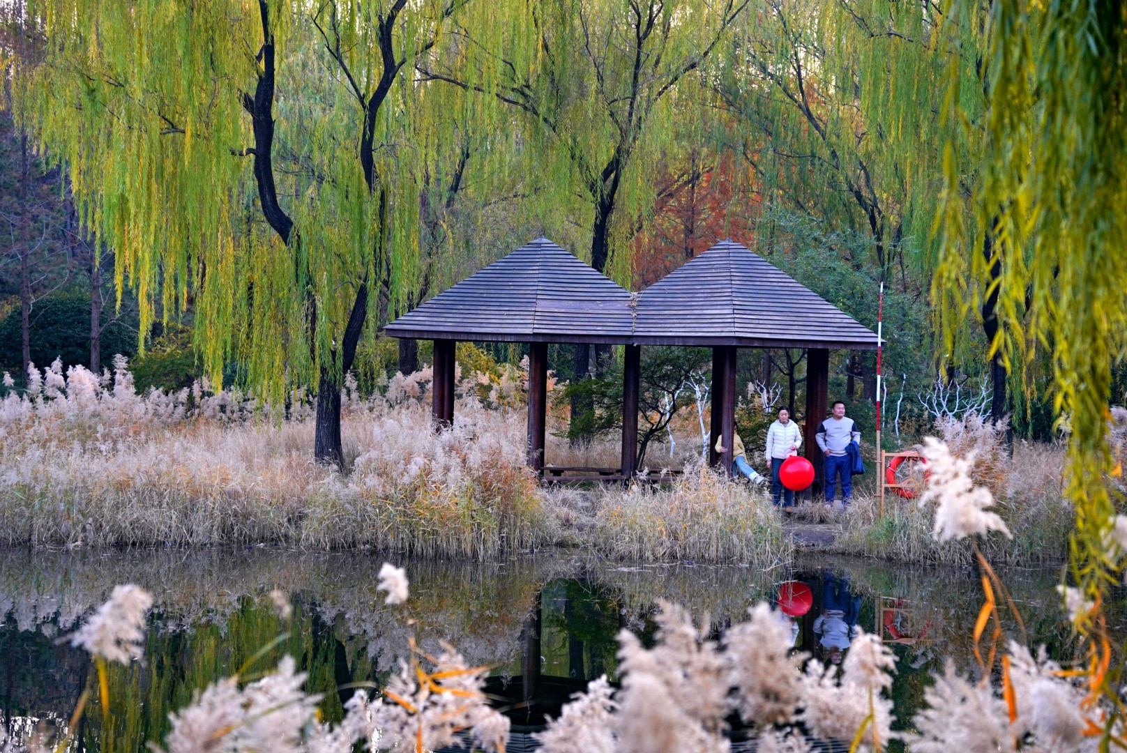 小雪时节的济南森林公园映翠湖,藏着浪漫的诗画,那里红红的杉树与黄白的芦花,多彩的行人及小桥流水亭榭,构成一幅浪漫的诗画,独具风情,与朋友们共享!昨日随拍。