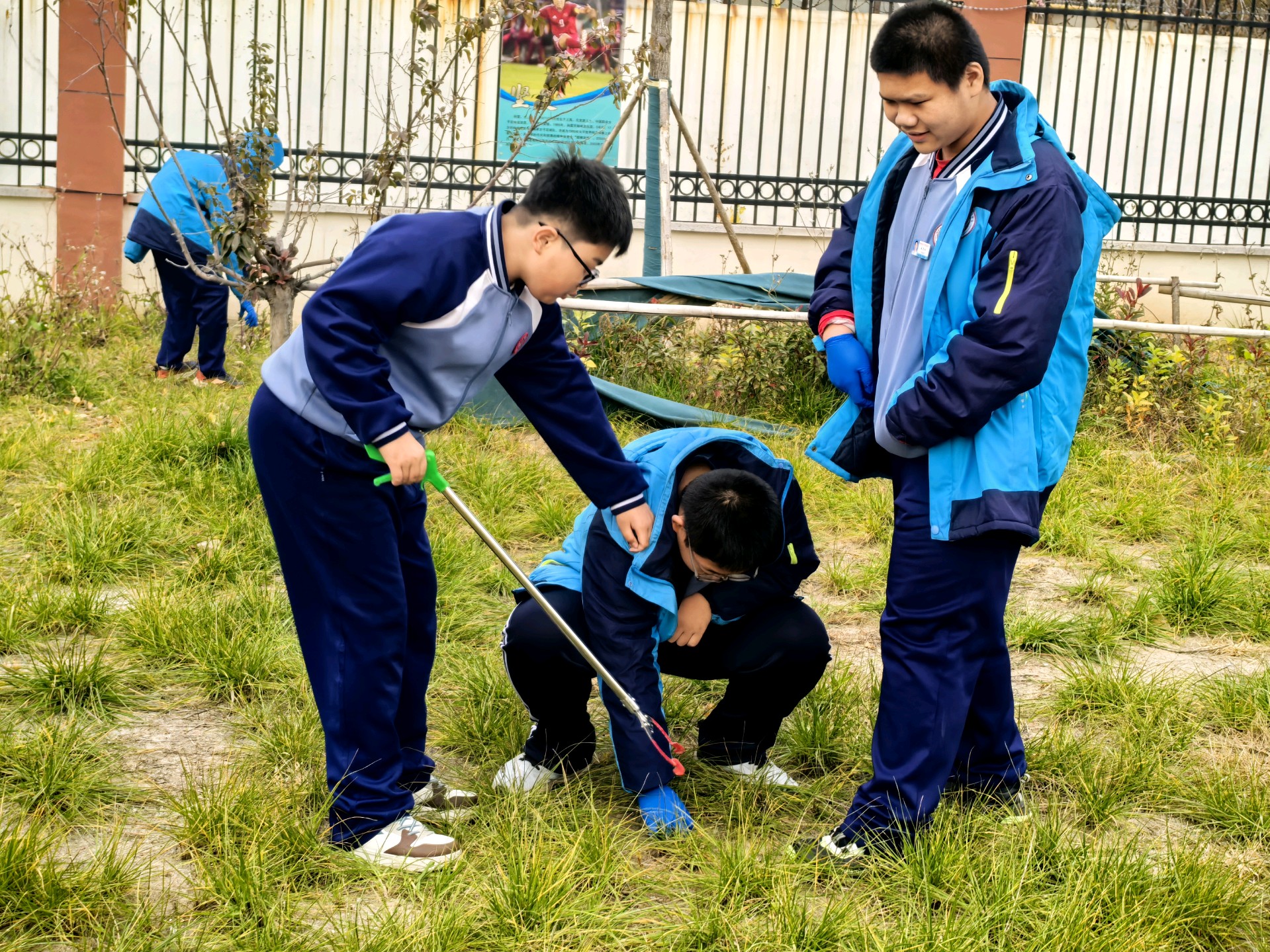 11月24日下午,三中北校区七年级5班47名同学在劳动课上开展了一场别开生面的“捡拾垃圾 净化校园”实践活动。