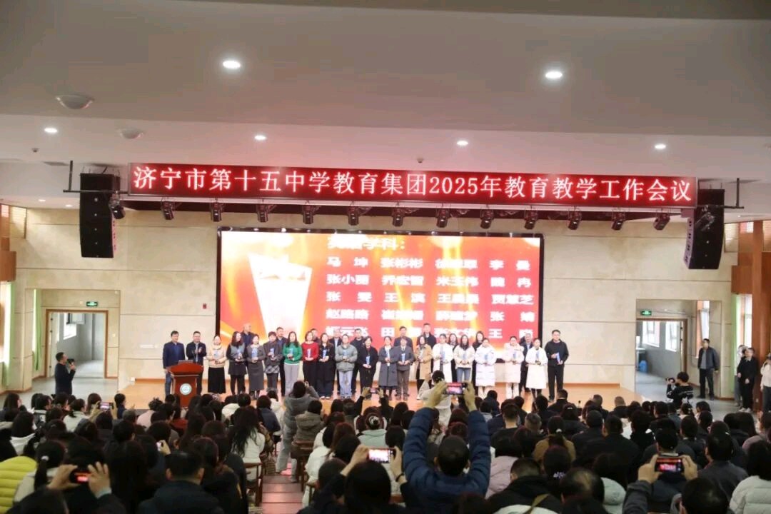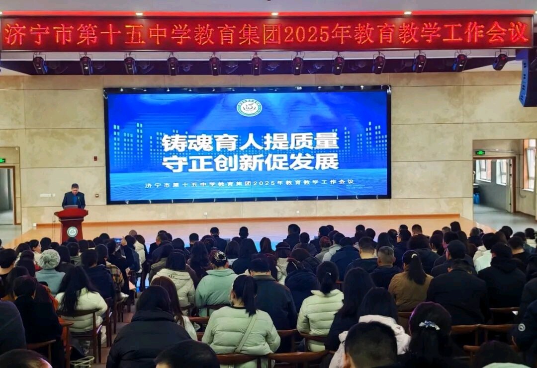 冬启新程处,奋进正当时。为复盘中考数据、总结经验、破解难题、凝聚发展合力,济宁市第十五中学教育集团于近日隆重召开2025年教育教学工作会议。集团五校区领导班子及全体教职工齐聚一堂,围绕“铸魂育人提质量,守正创新促发展”主题,紧扣“复盘、表彰、赋能、启航”四大关键词,为新学期教学工作锚定航向。