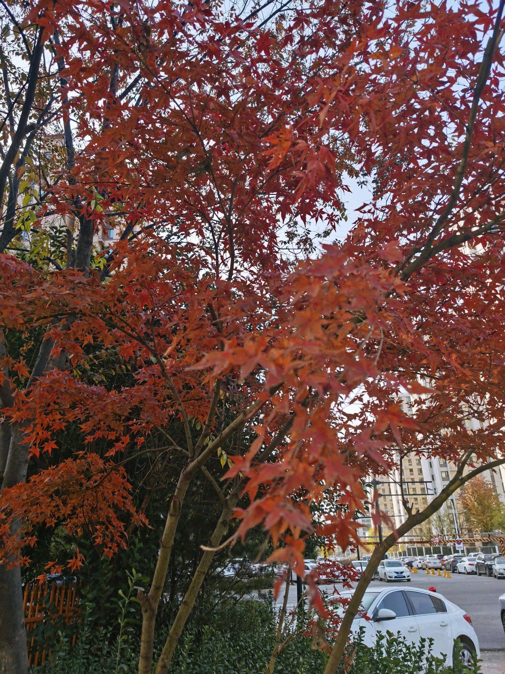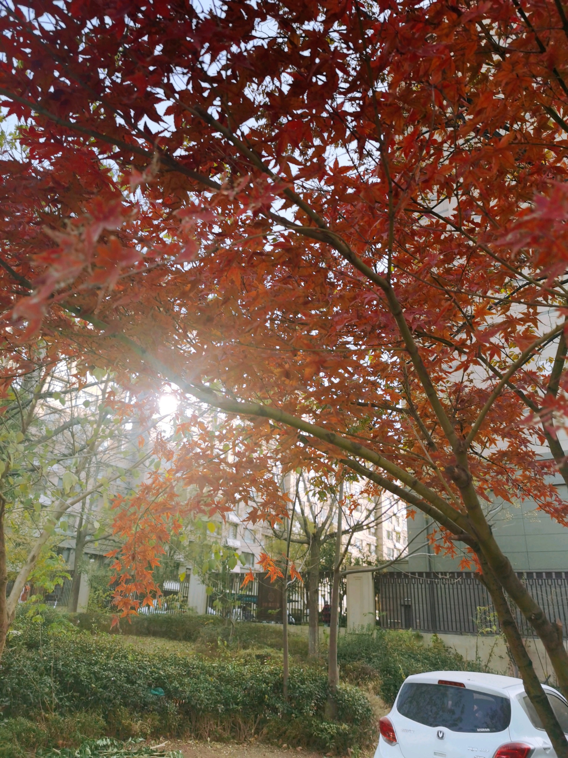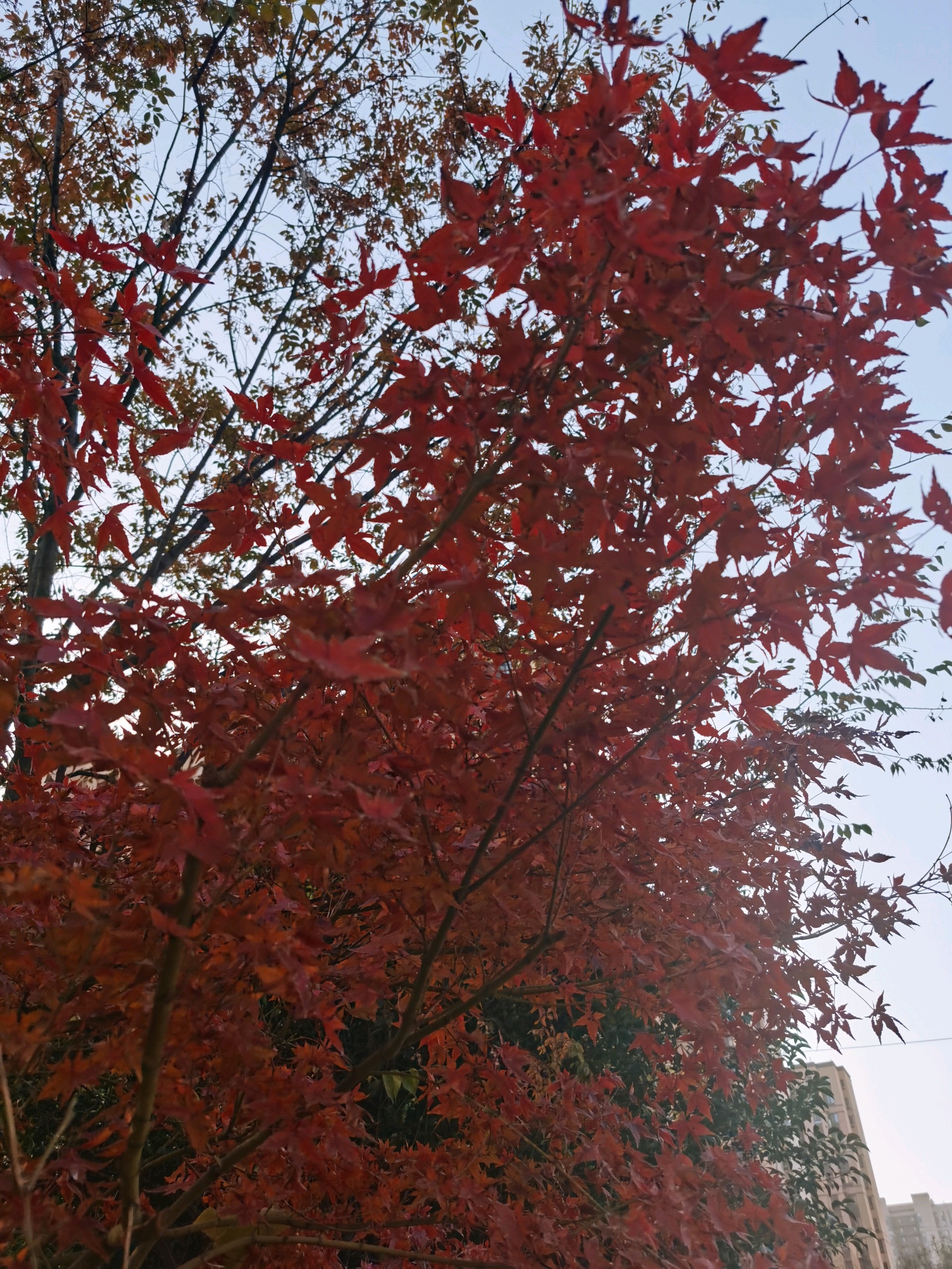 冬天的枫叶依旧红红火火,小区里的红叶装点冬天的美好。在阳光下红红火火,燃烧在枝头,温暖着冬天。