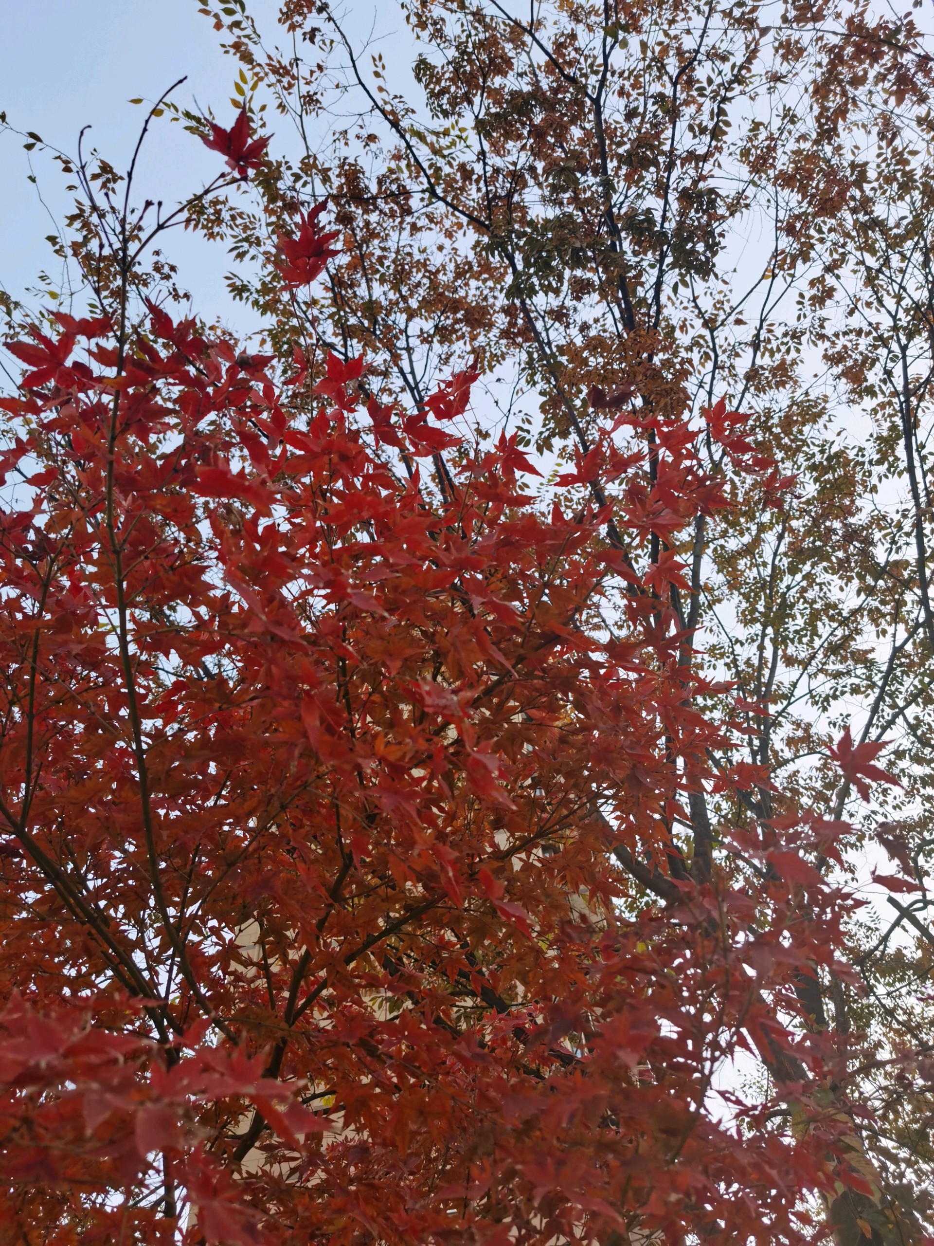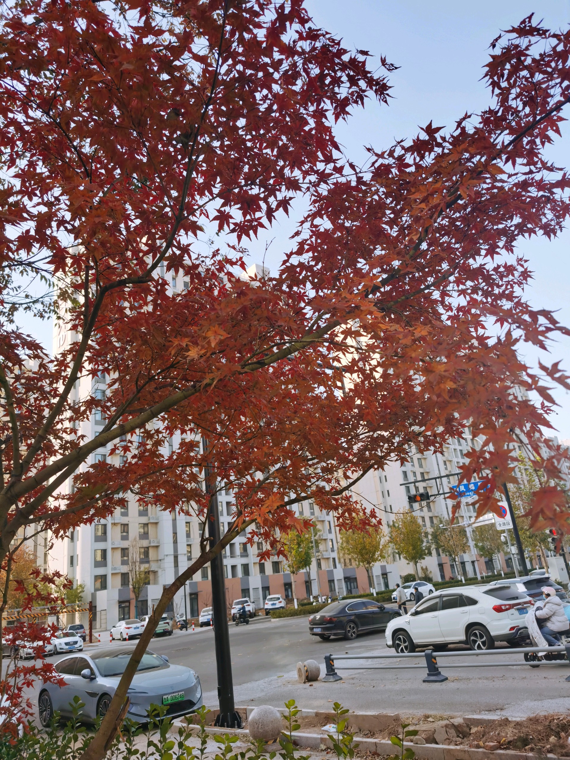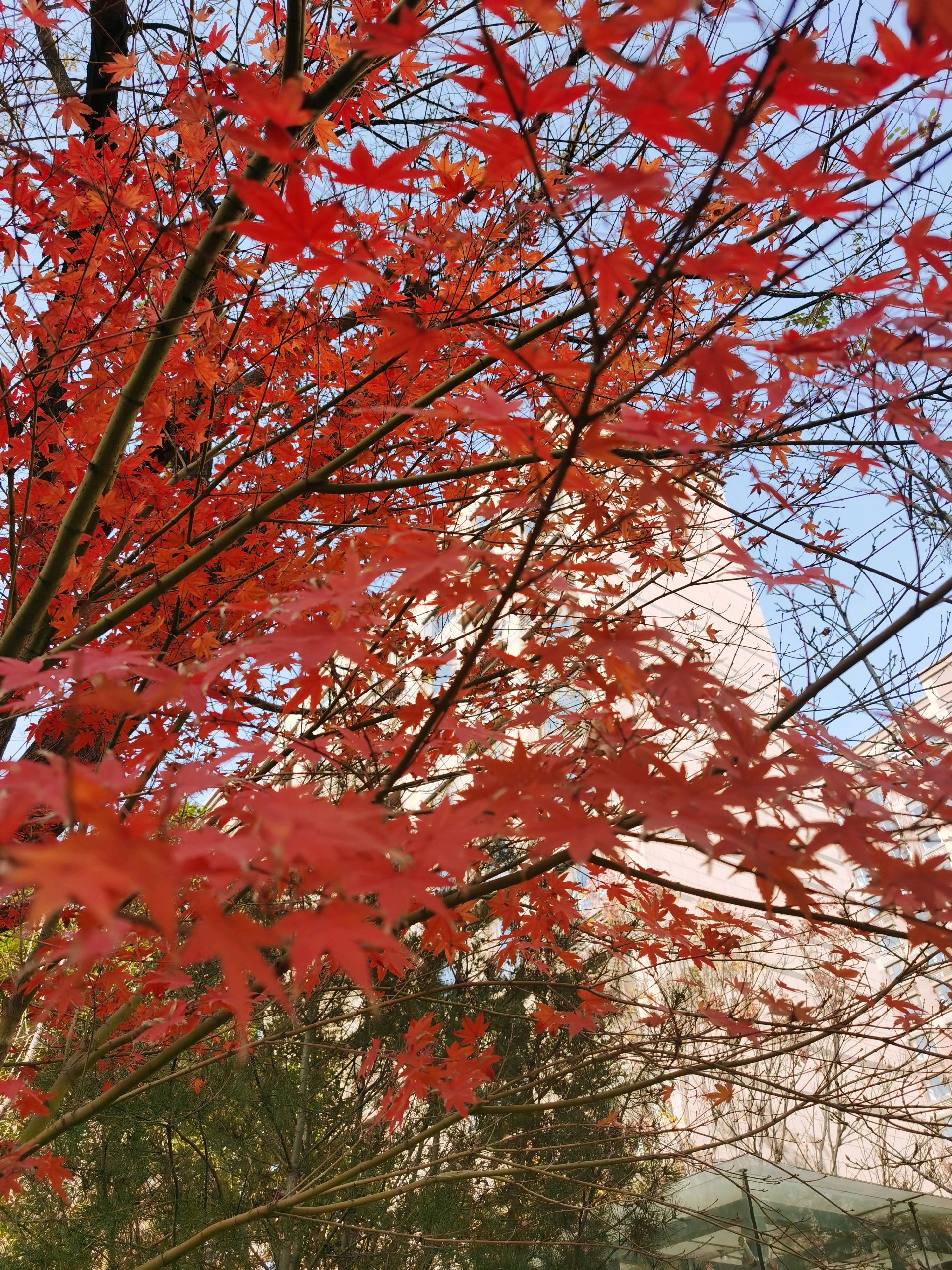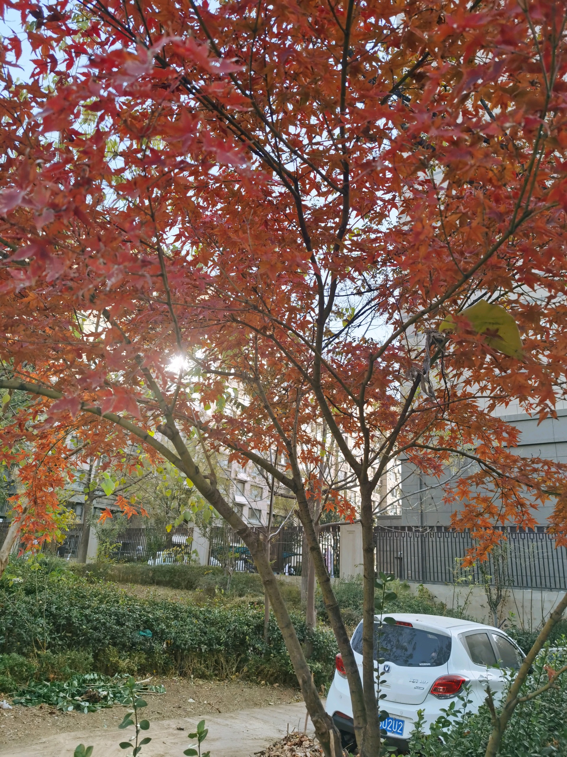 冬天的枫叶依旧红红火火,小区里的红叶装点冬天的美好。在阳光下红红火火,燃烧在枝头,温暖着冬天。