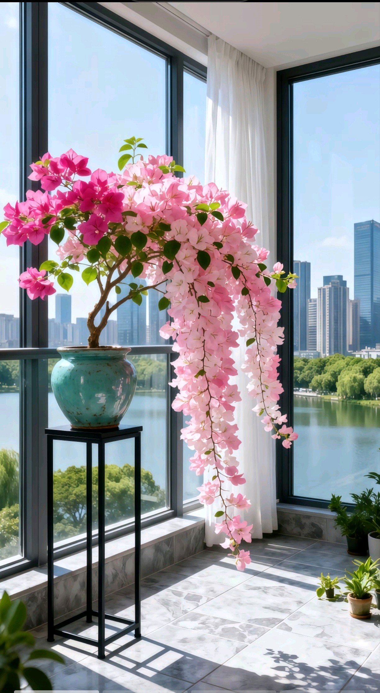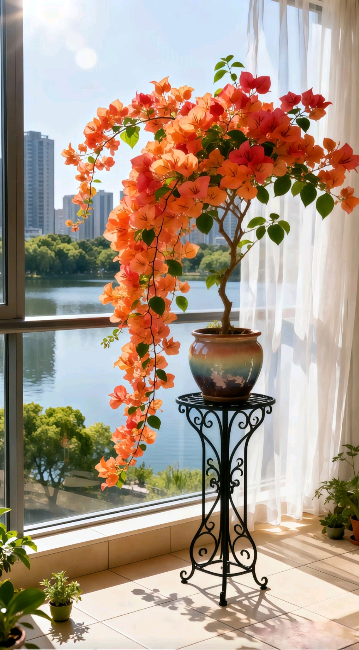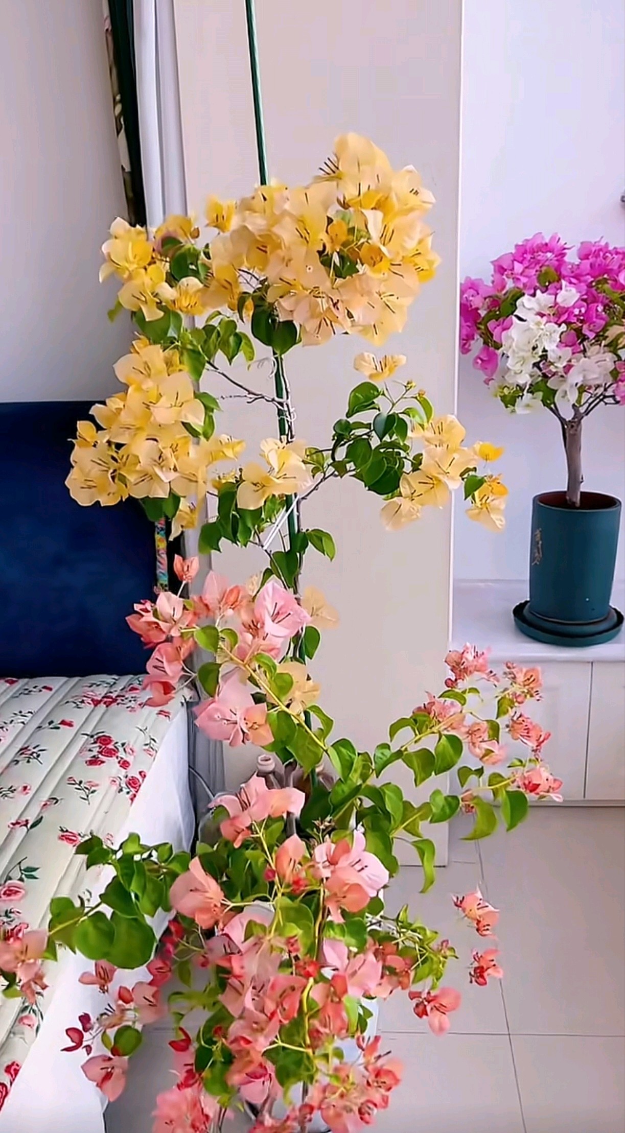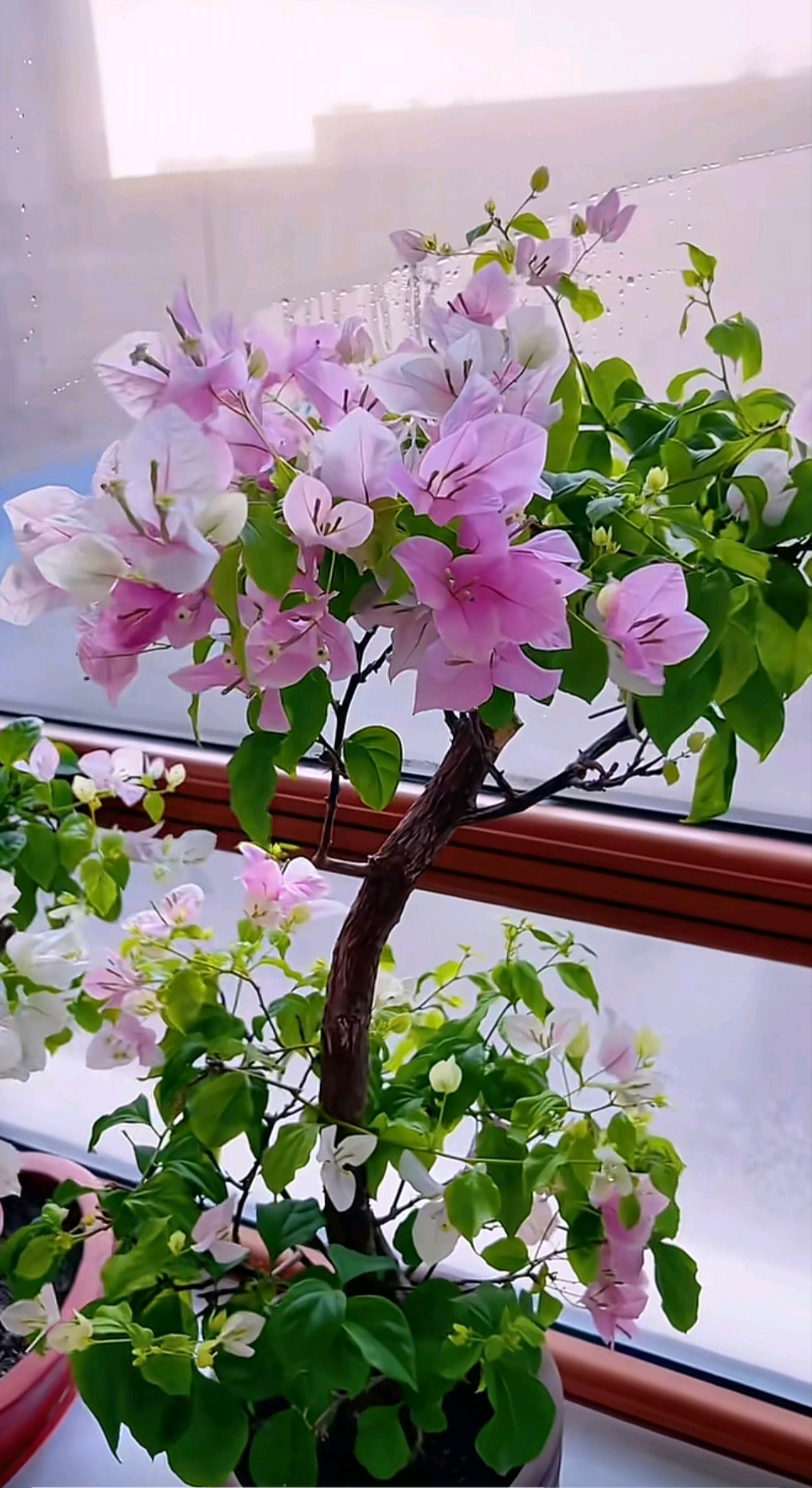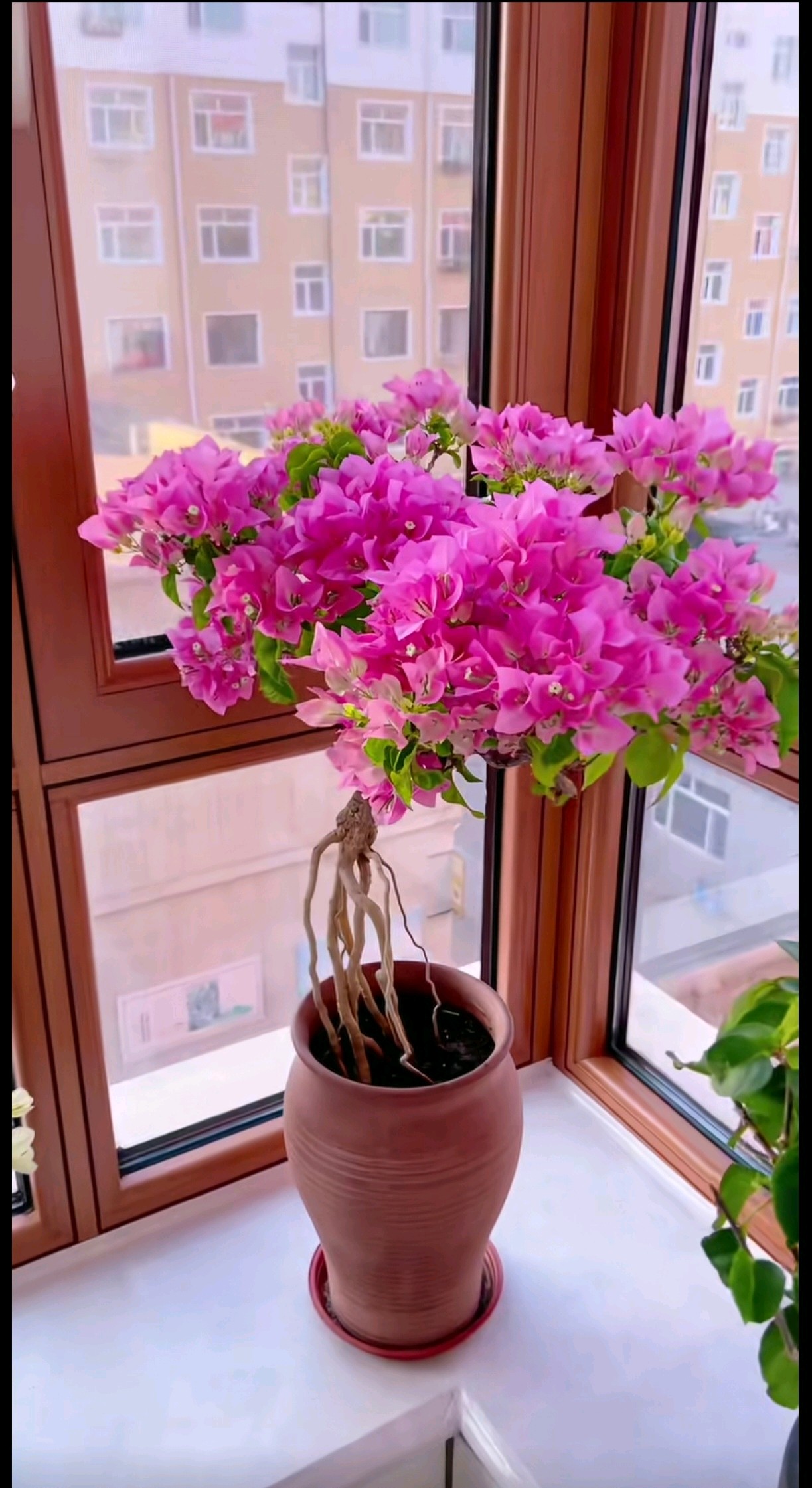 老家同事家养的三角梅在暖阳的屋里姹紫嫣红,把整个阳台都织成了花的瀑布,把平凡的窗台,变成了会呼吸的画图!