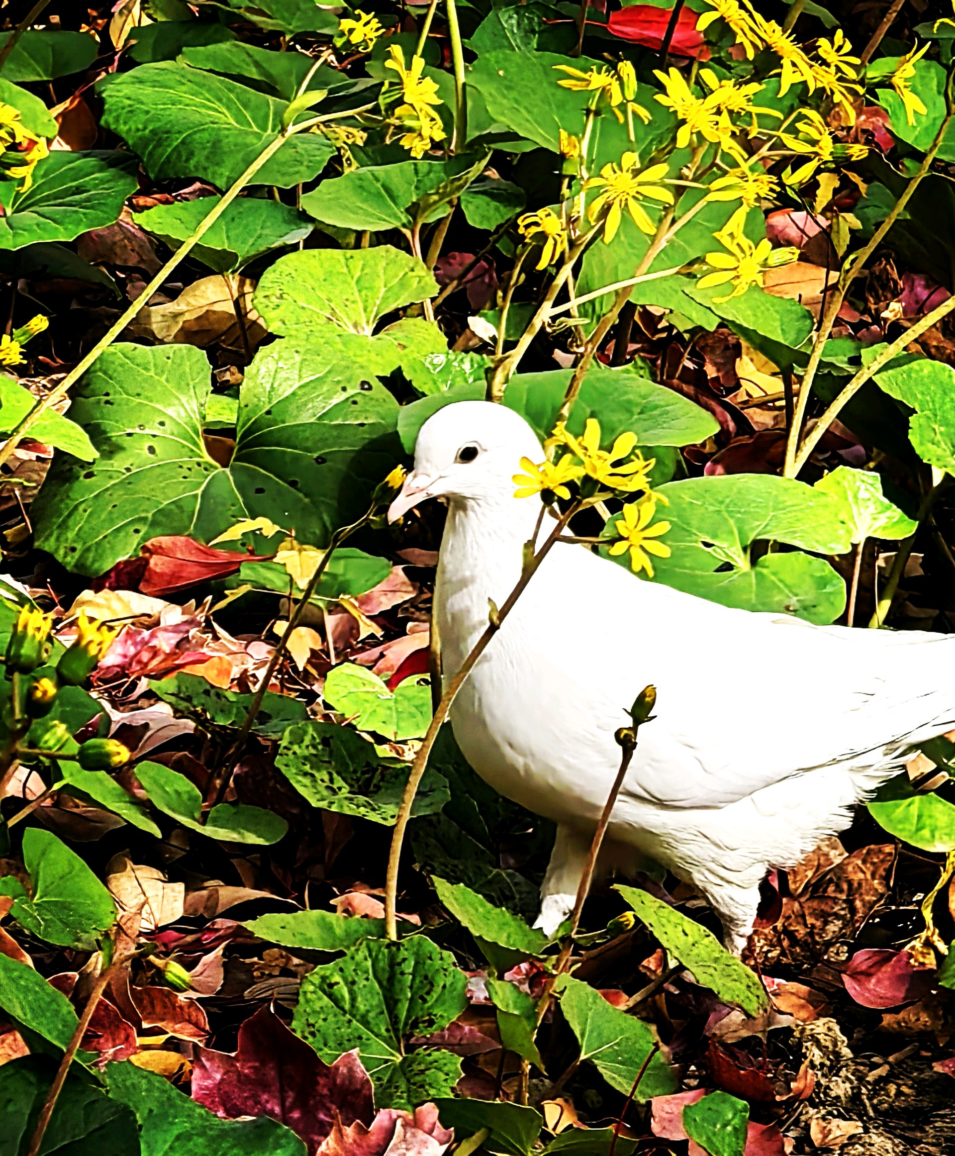 天气逐渐寒冷了,昨天,带着孙子外出,把车停好,带着一岁半小孙子到泰山边上玩,突然小孙子发现一只白鸽子在觅食,高兴的他指着喊:白白……。我立即掏出手机拍下了这组照片。