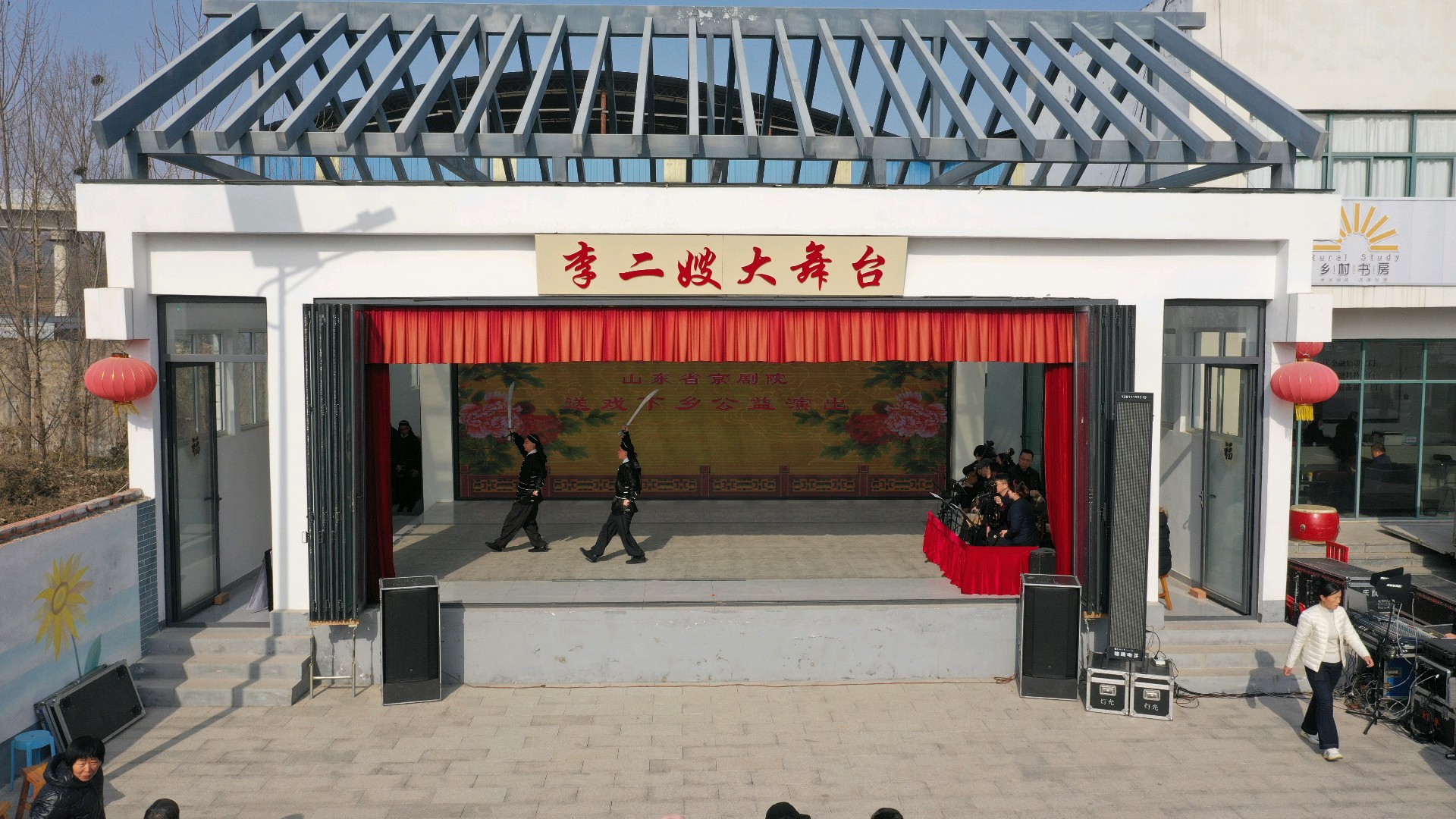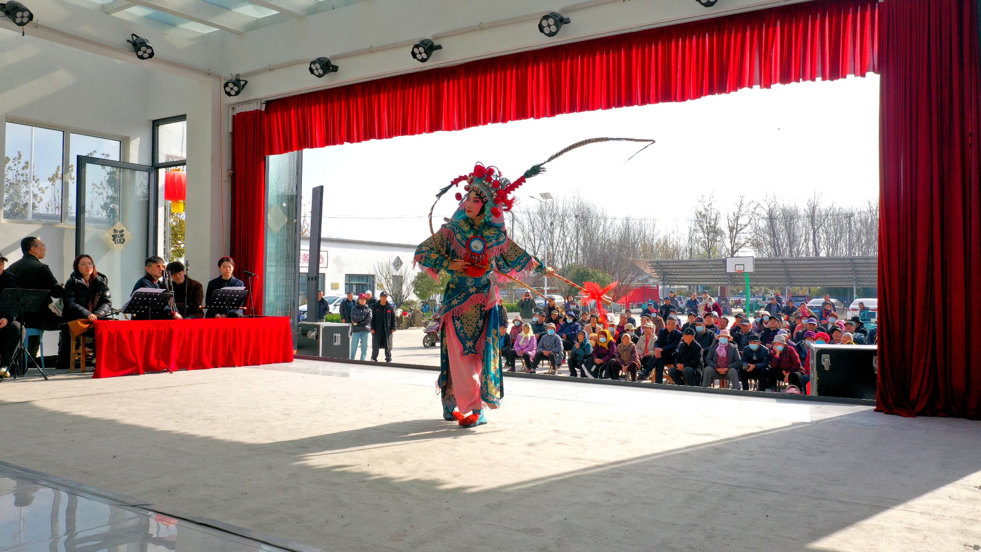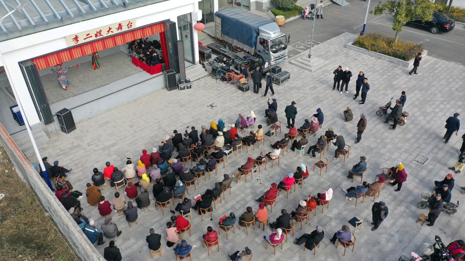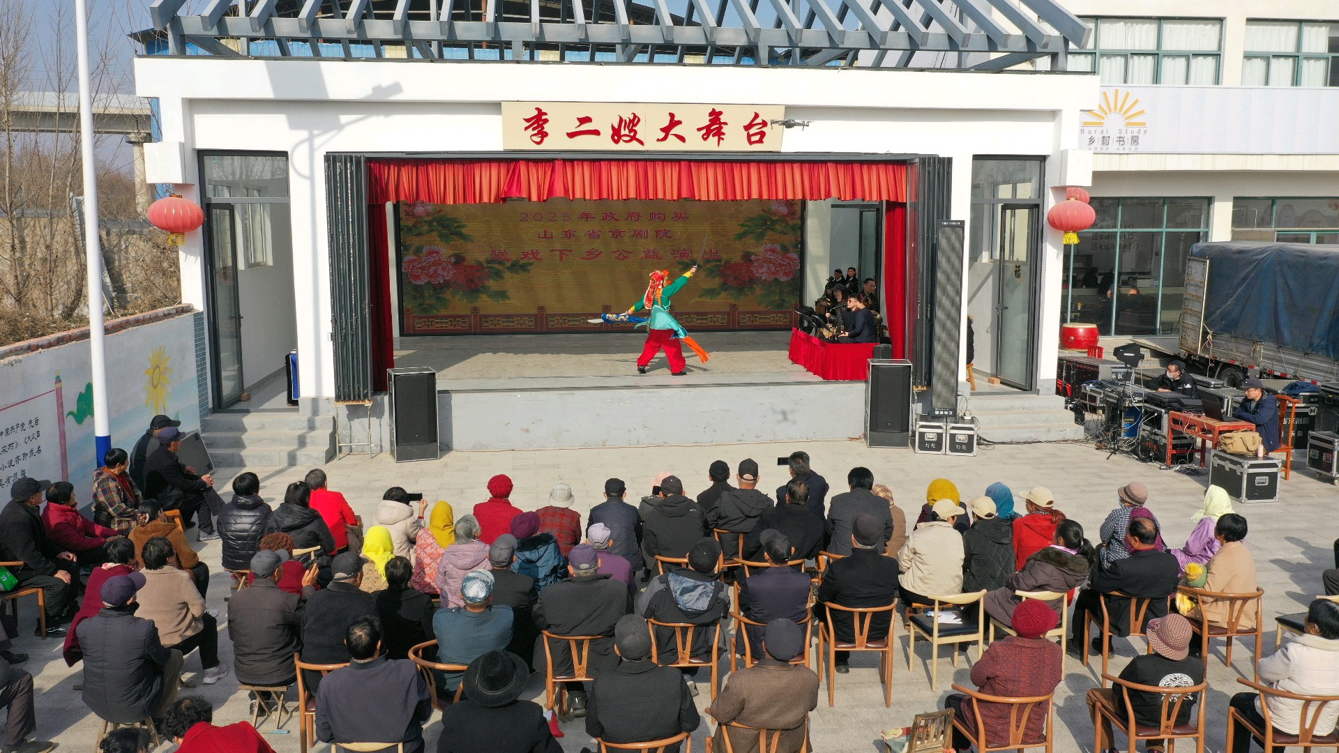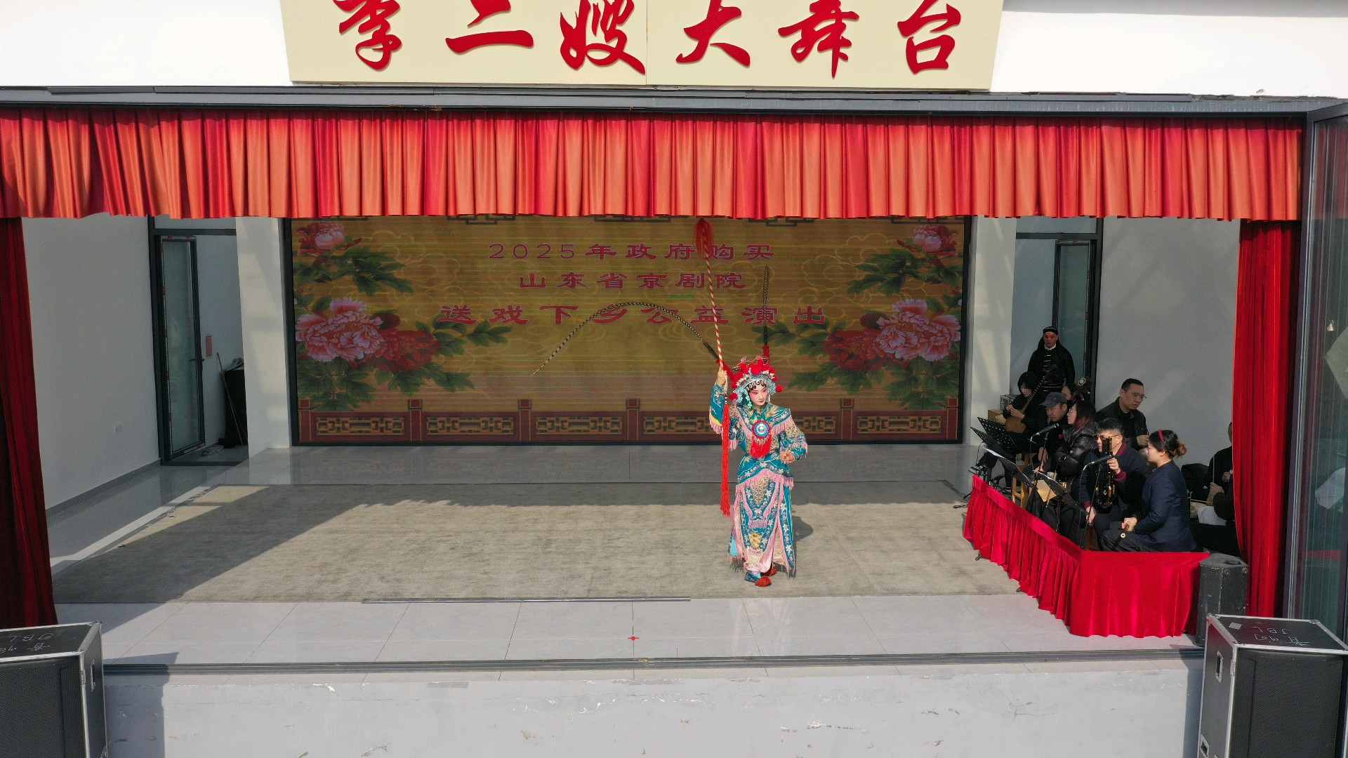 2025年12月1日,山东省日照市岚山区高兴镇向阳村李二嫂大舞台上,来自山东省京剧院的演员们送戏下乡文化惠民,为当地老百姓送上一场精彩的戏曲演出。