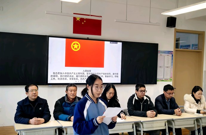 全体团员齐唱《光荣啊,中国共青团》,嘹亮的歌声回荡在现场。仪式最后,团支部书记高娜为团员们上了一堂生动的主题团课。整场活动流程严谨、氛围庄重热烈,阵阵掌声展现了团员们昂扬向上的精神风貌。