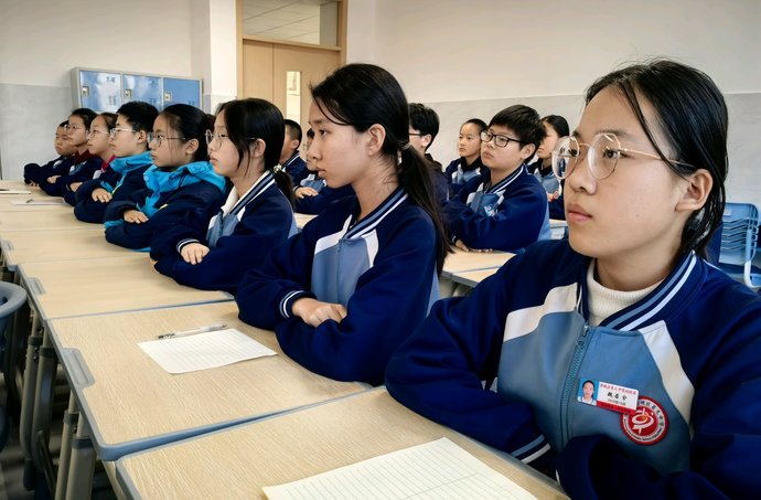 仪式在庄严的国歌声中拉开序幕。随后,大会宣布新团员名单,老团员代表郑重为新团员佩戴团徽。闪亮的团徽胸前闪耀,象征着荣誉,更意味着责任。新、老团员代表先后发言,表达了坚定信念、砥砺前行、共同进步的决心。学校专职副书记曹颖颖在讲话中勉励全体团员树立远大理想,勤奋学习,锤炼品德,充分发挥模范带头作用。