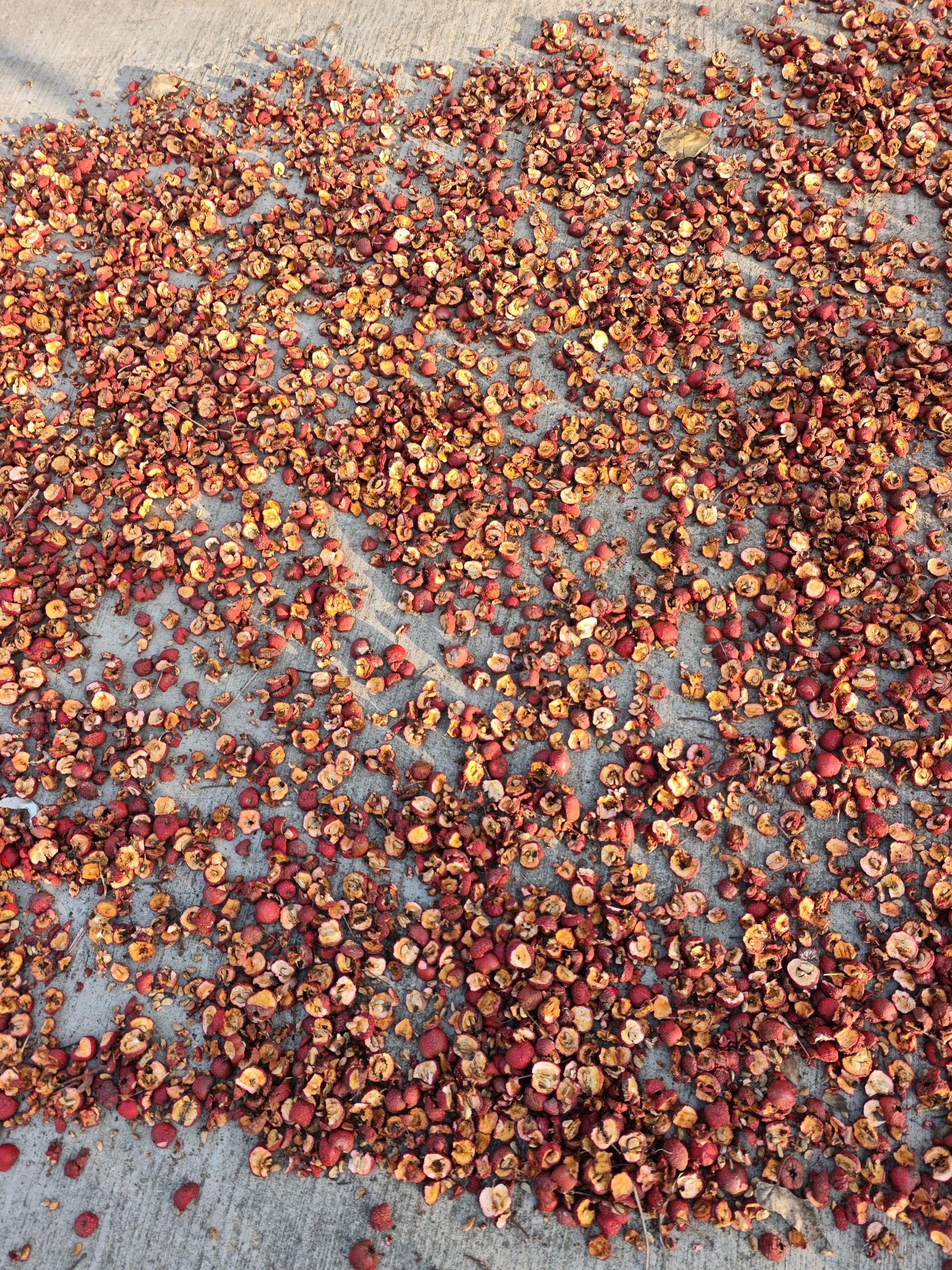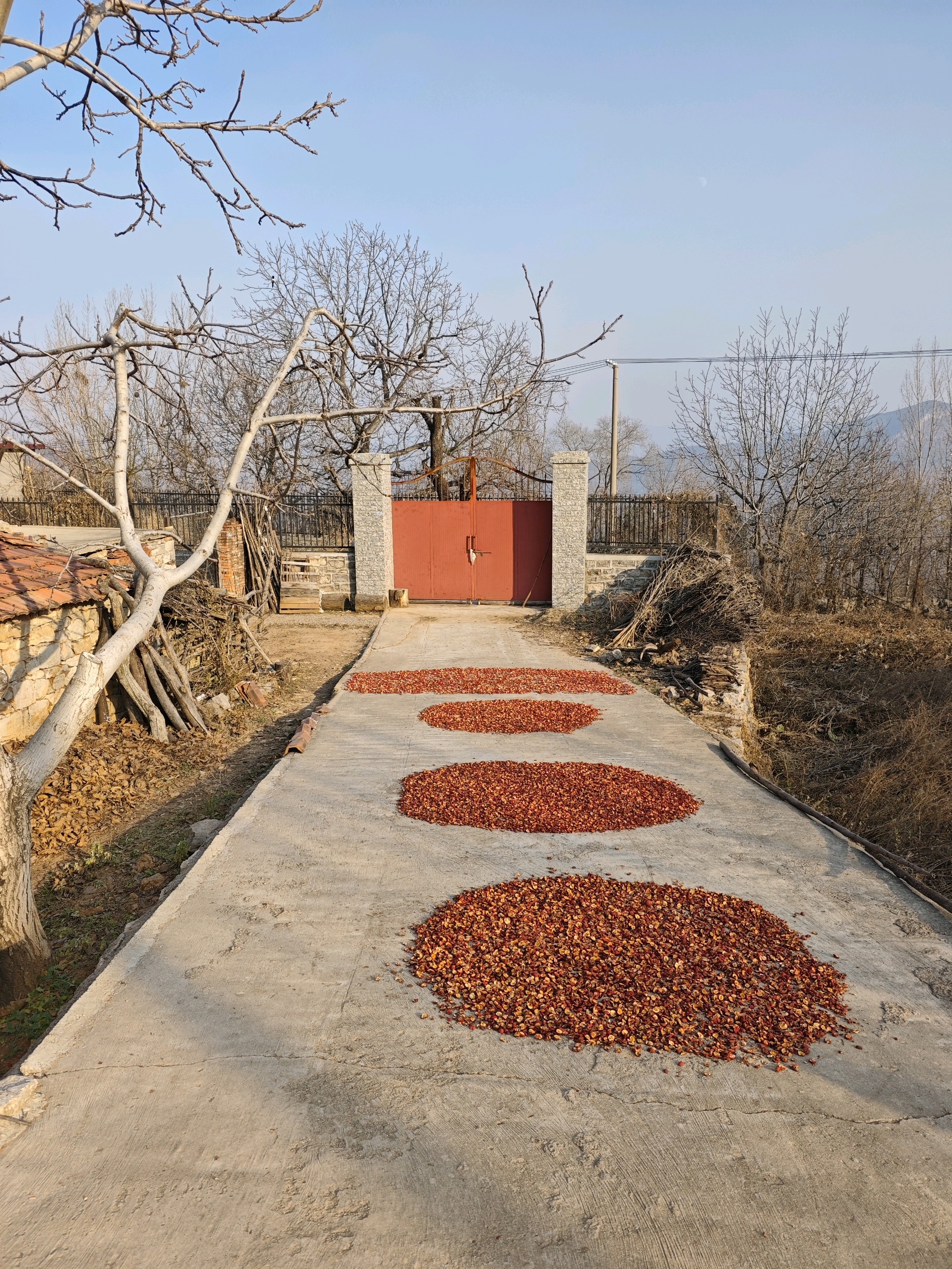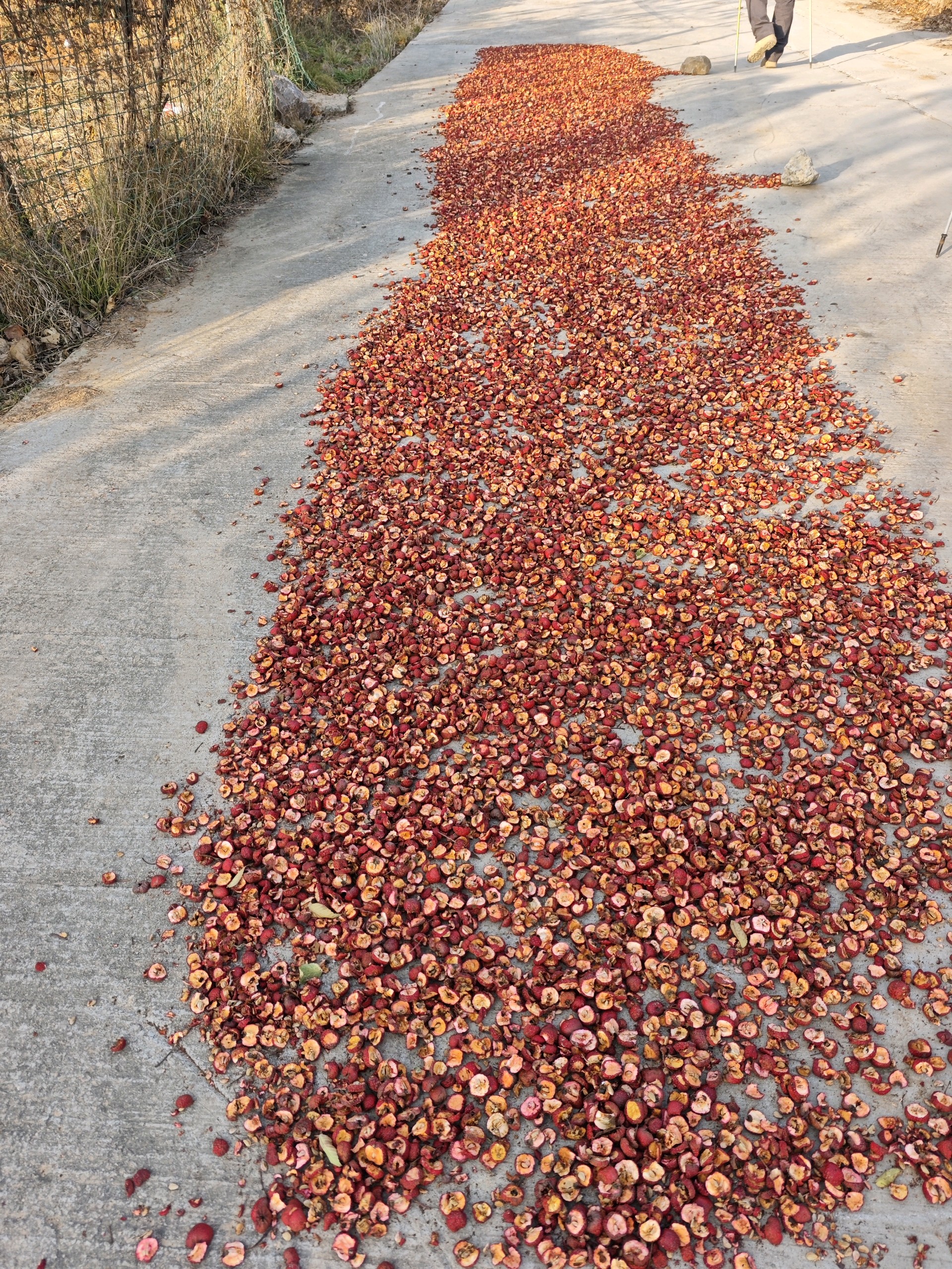 西营李家庄村,晾晒的山楂片享受着冬日的阳光。