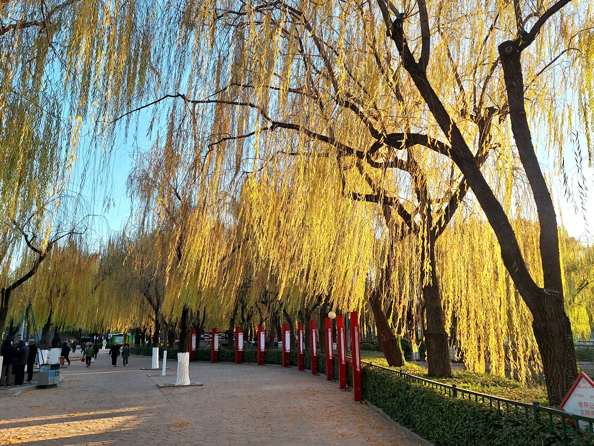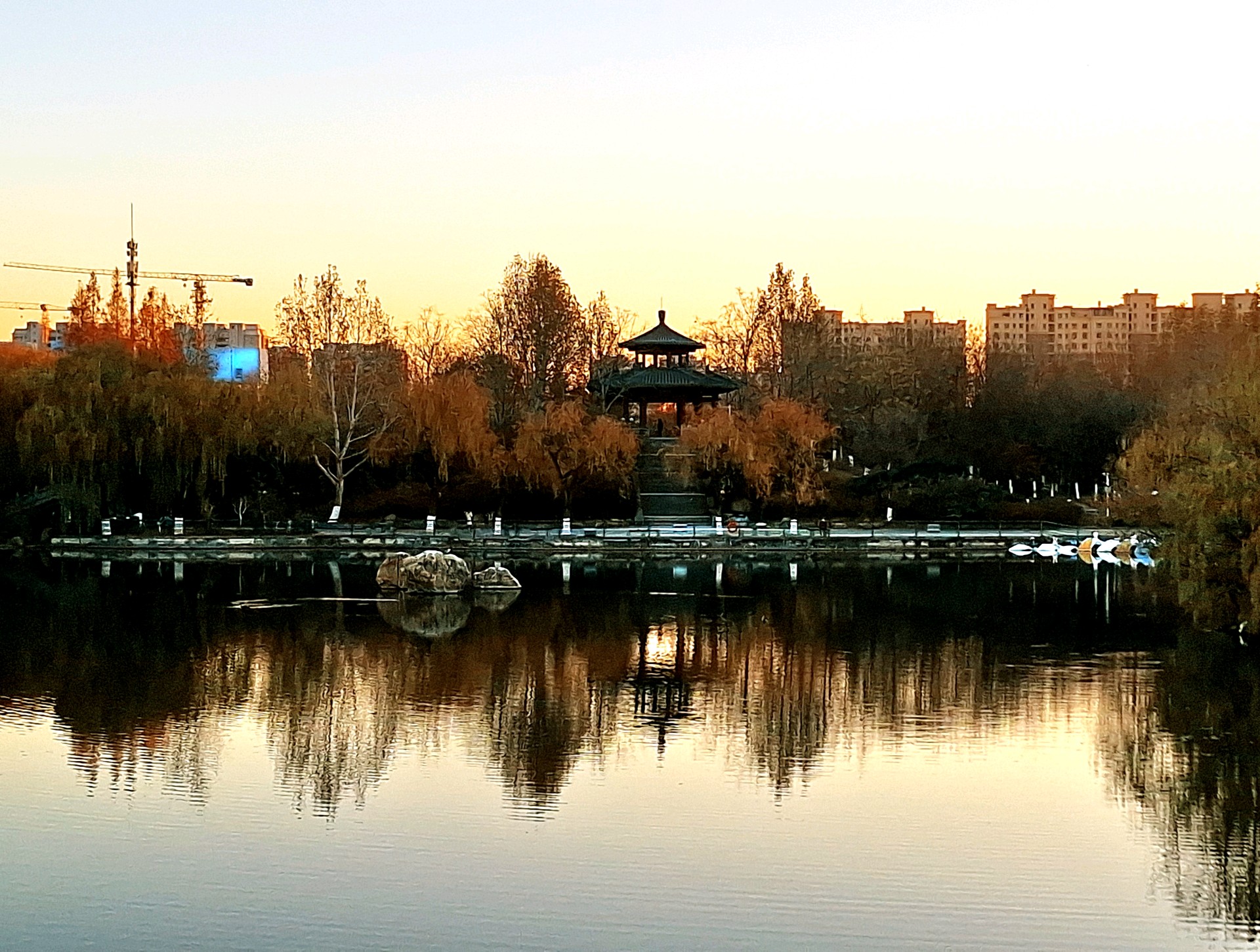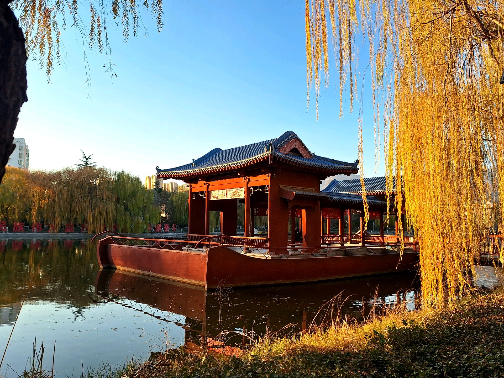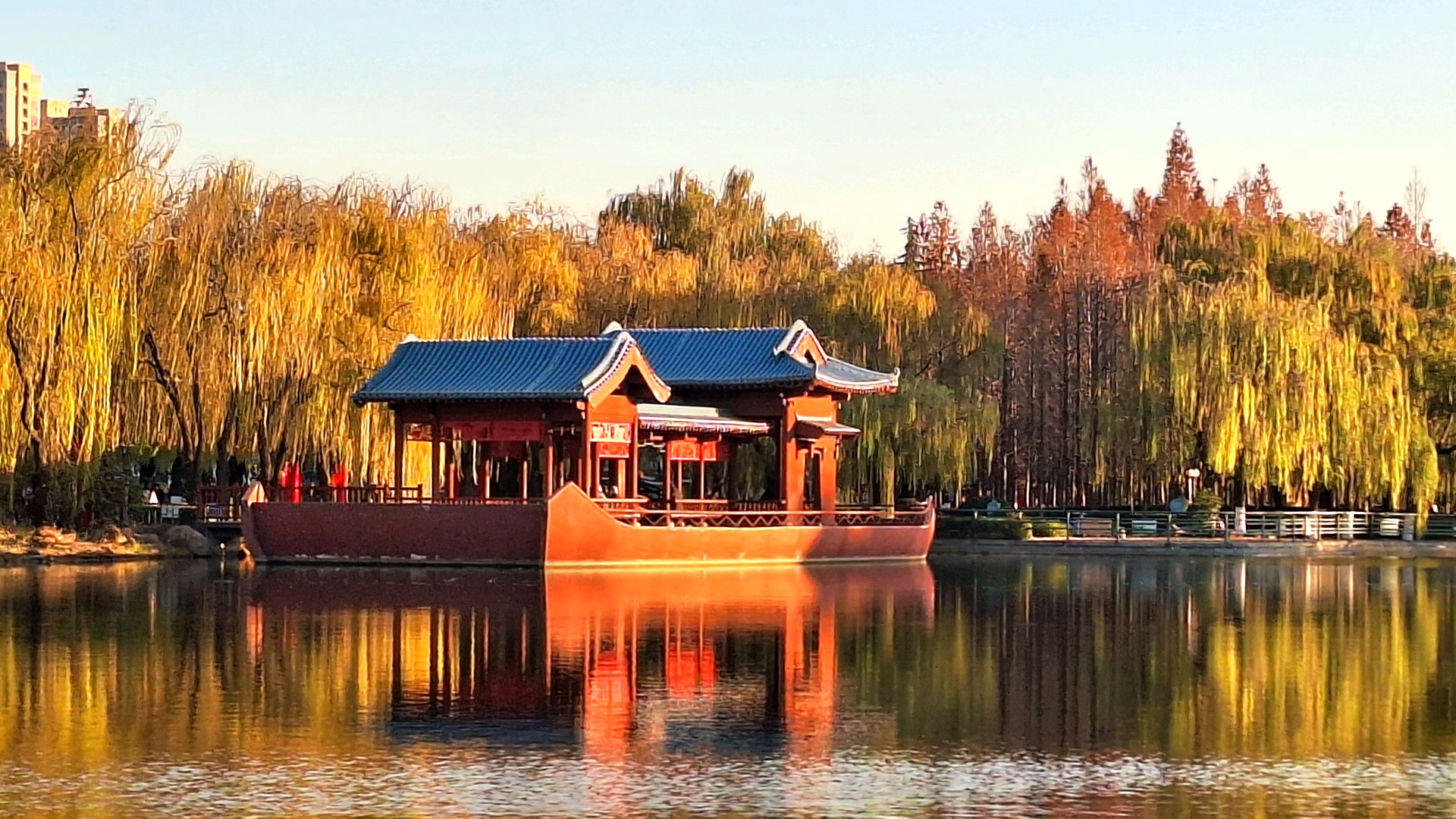 泰安:半湖彩影半湖冬,金柳丹枫映碧空